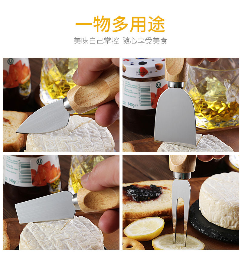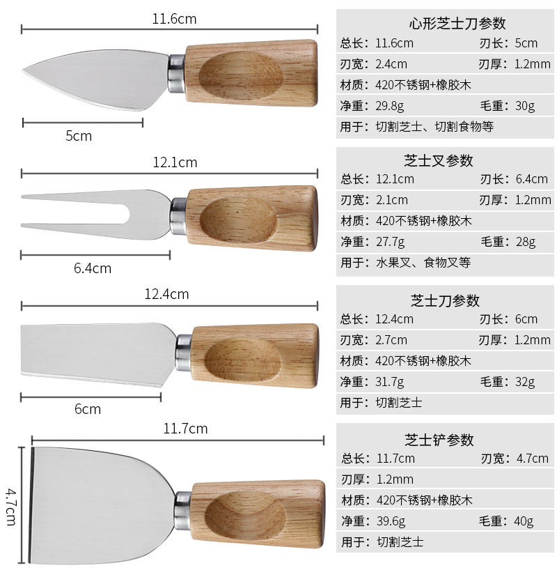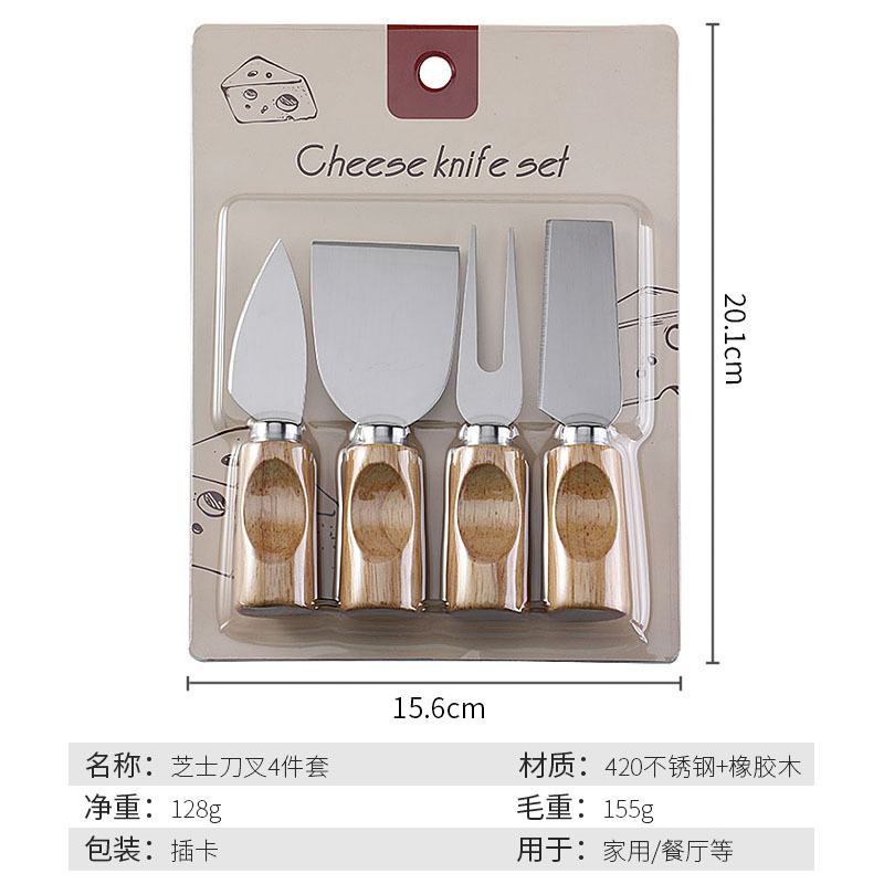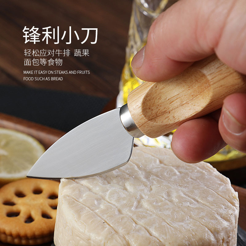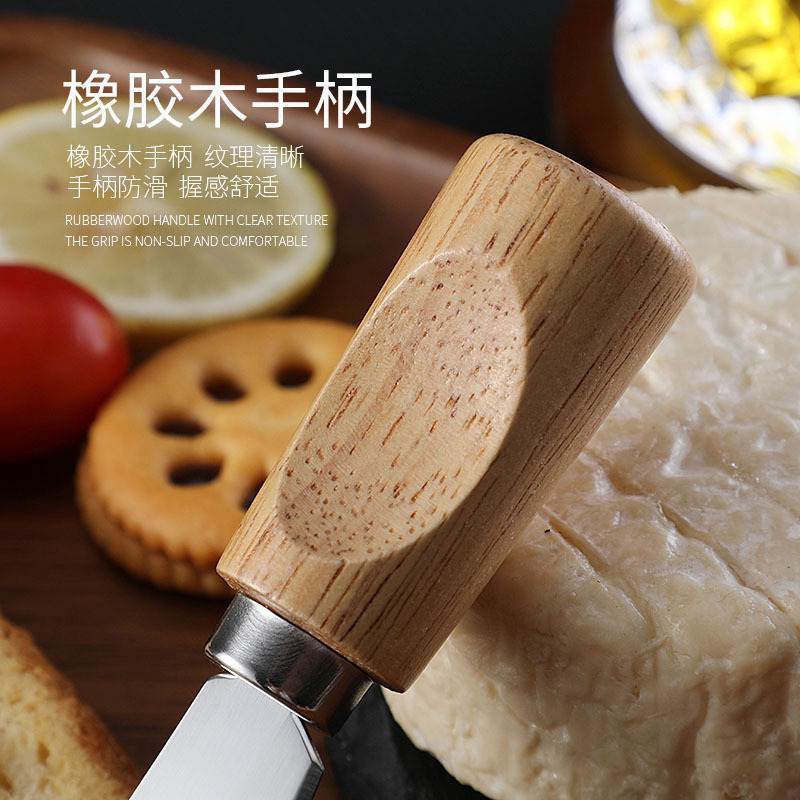 跨境现货不锈钢芝士刀奶酪刀橡胶木柄黄油刀起司刀披萨芝士刀套装