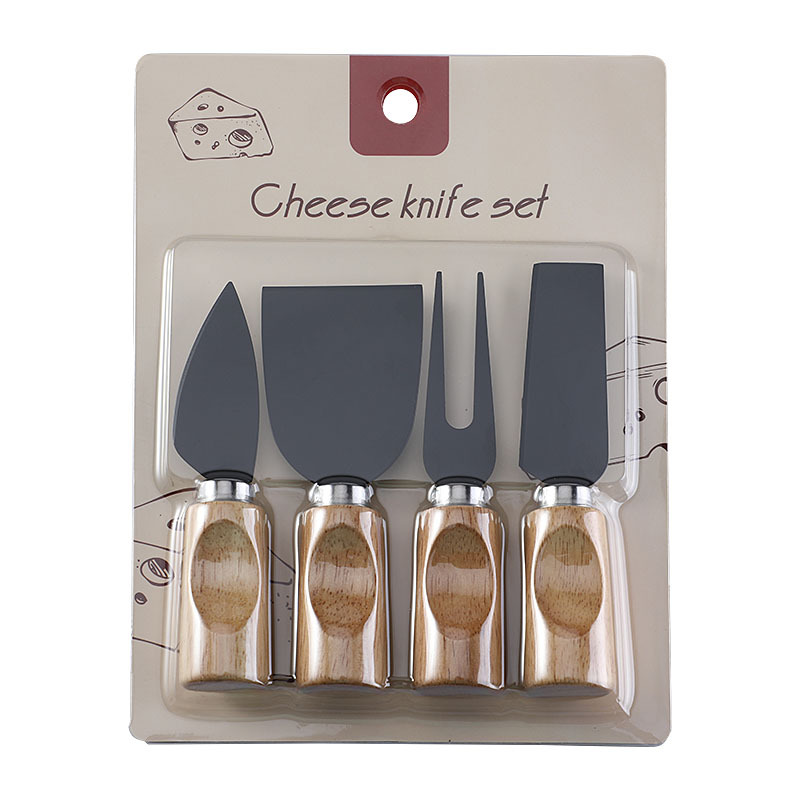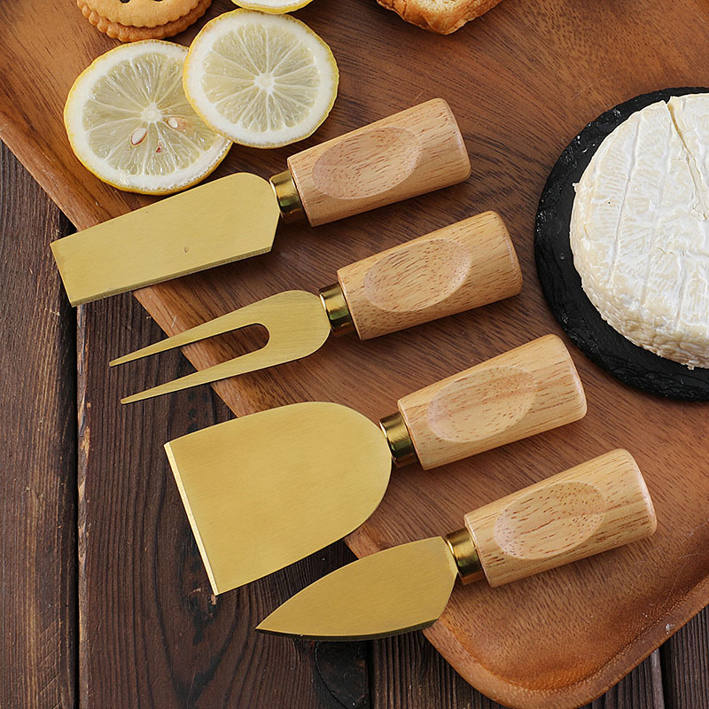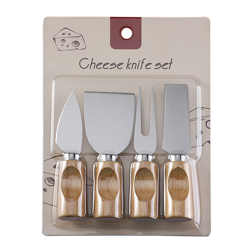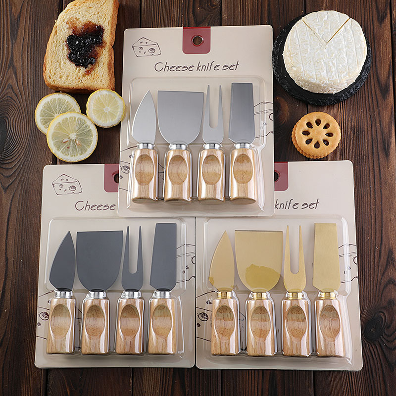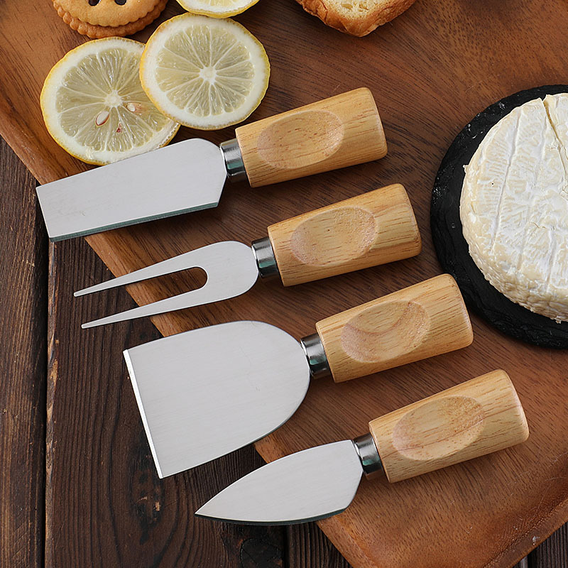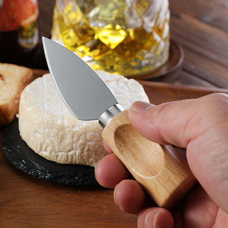 跨境现货不锈钢芝士刀奶酪刀橡胶木柄黄油刀起司刀披萨芝士刀套装