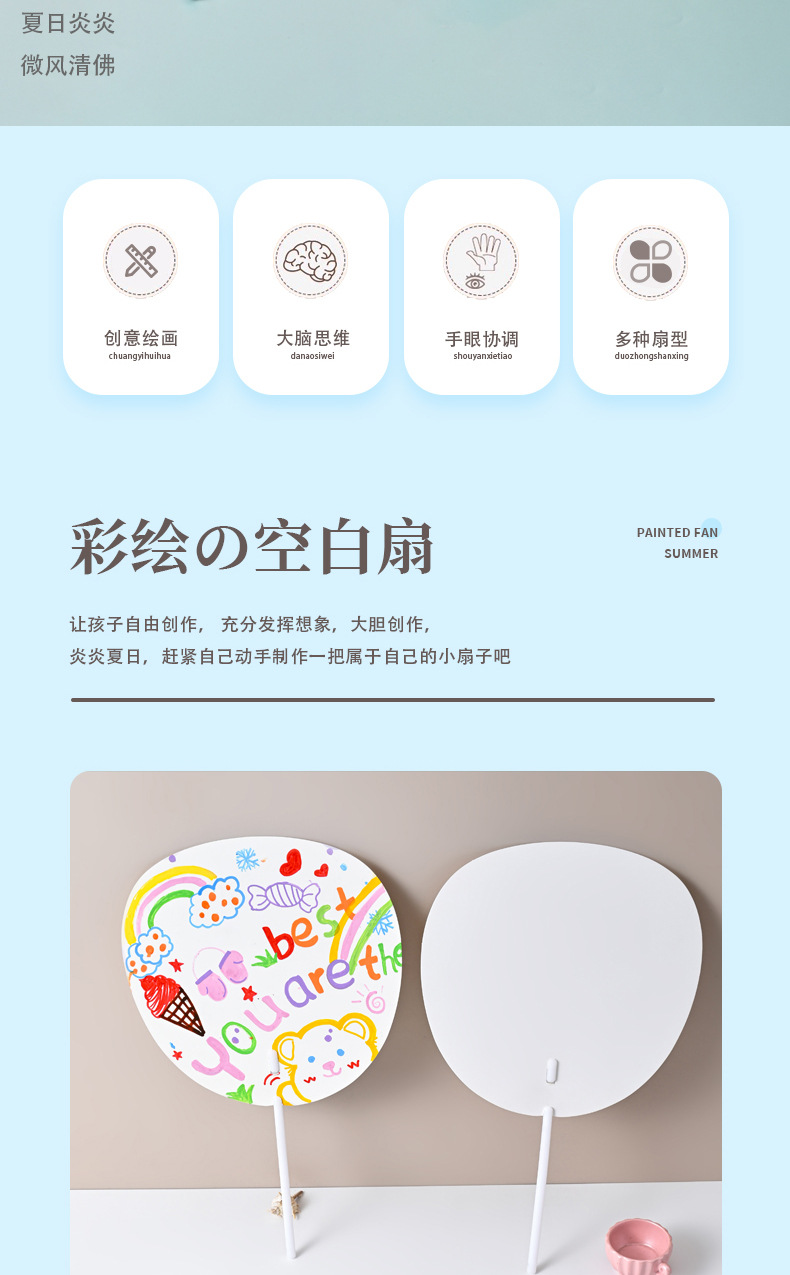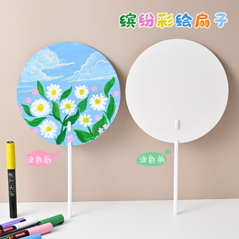 幼儿园diy纸扇子手绘团扇空白扇子儿童手工材料绘画纸扇亲子涂鸦