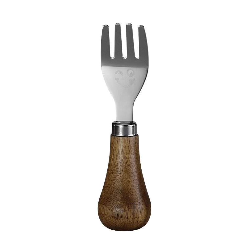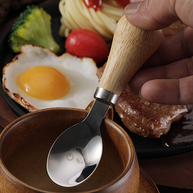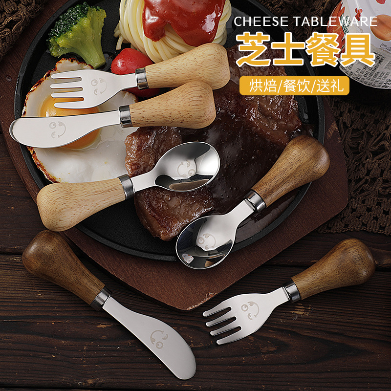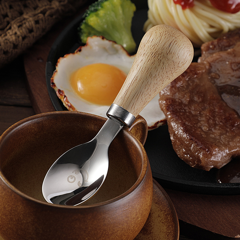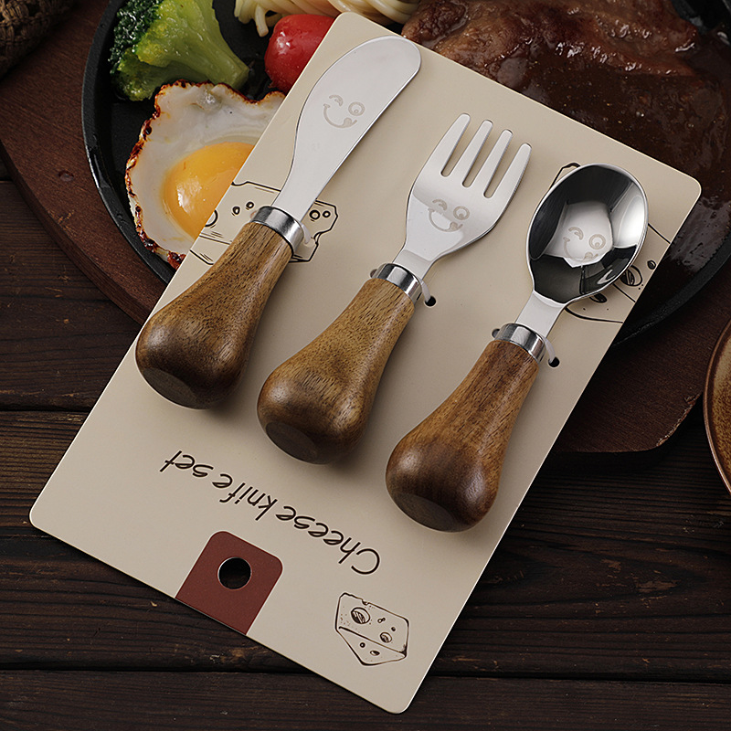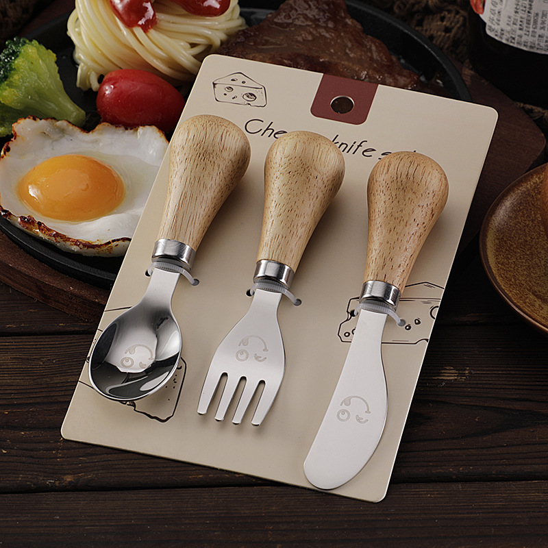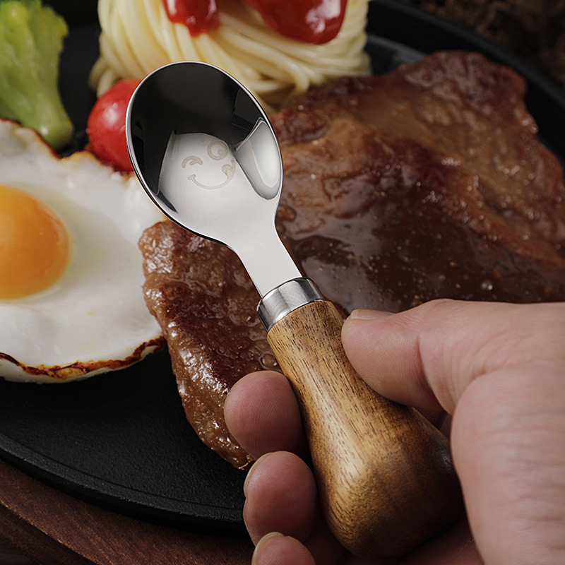 现货西餐甜品勺304不锈钢儿童笑脸餐具套装木柄可立餐勺餐叉餐刀
