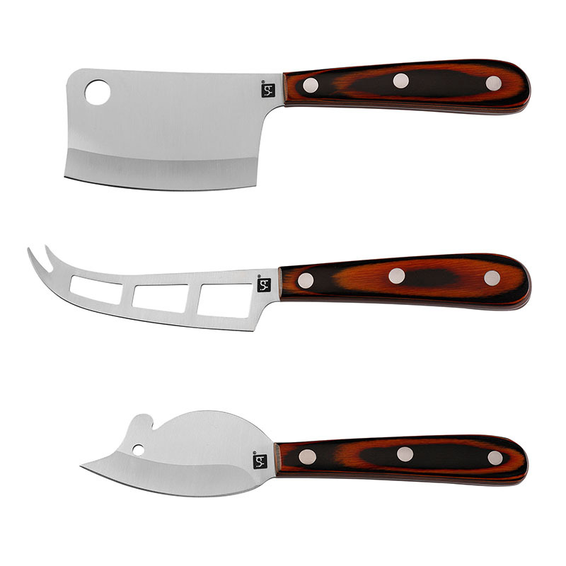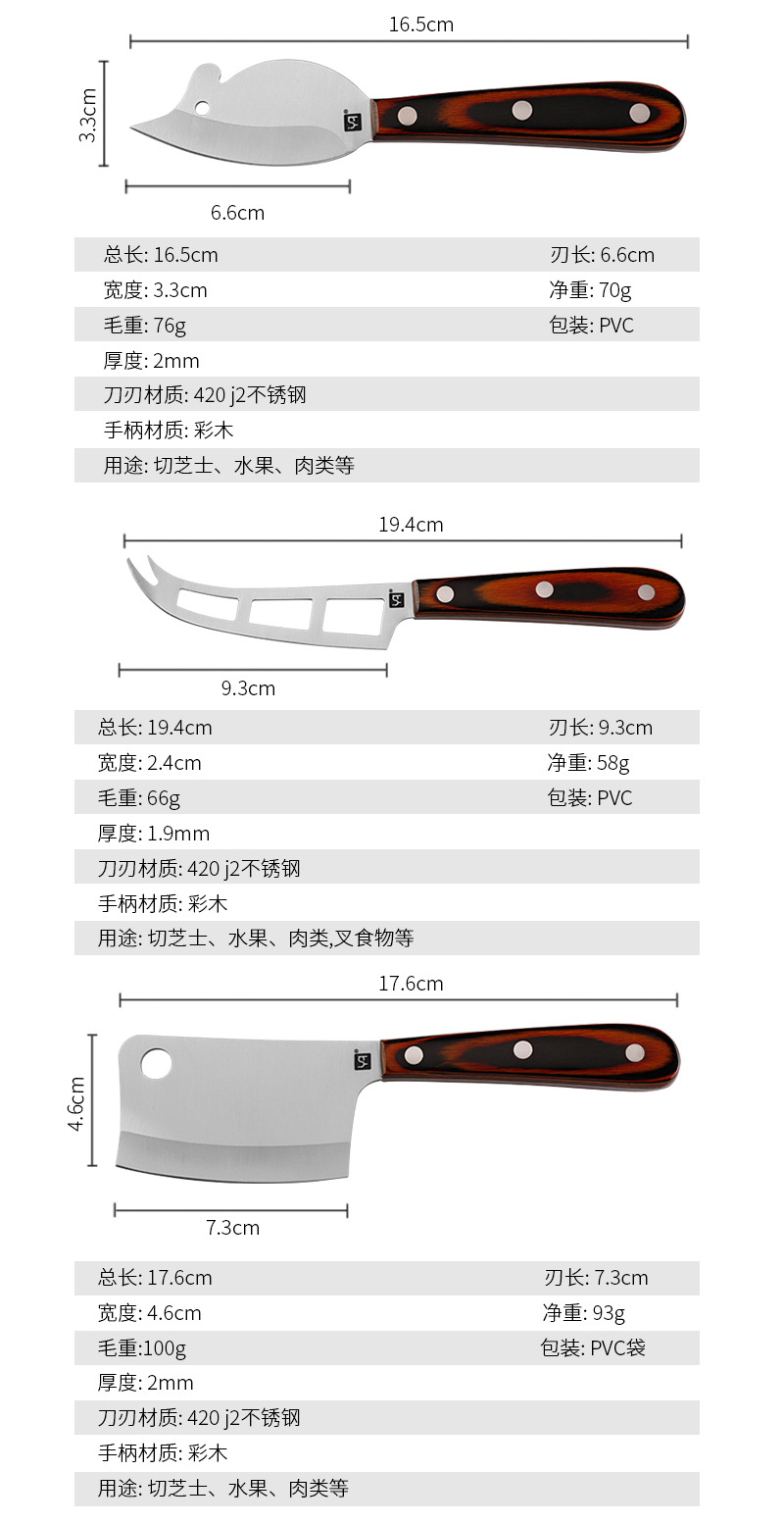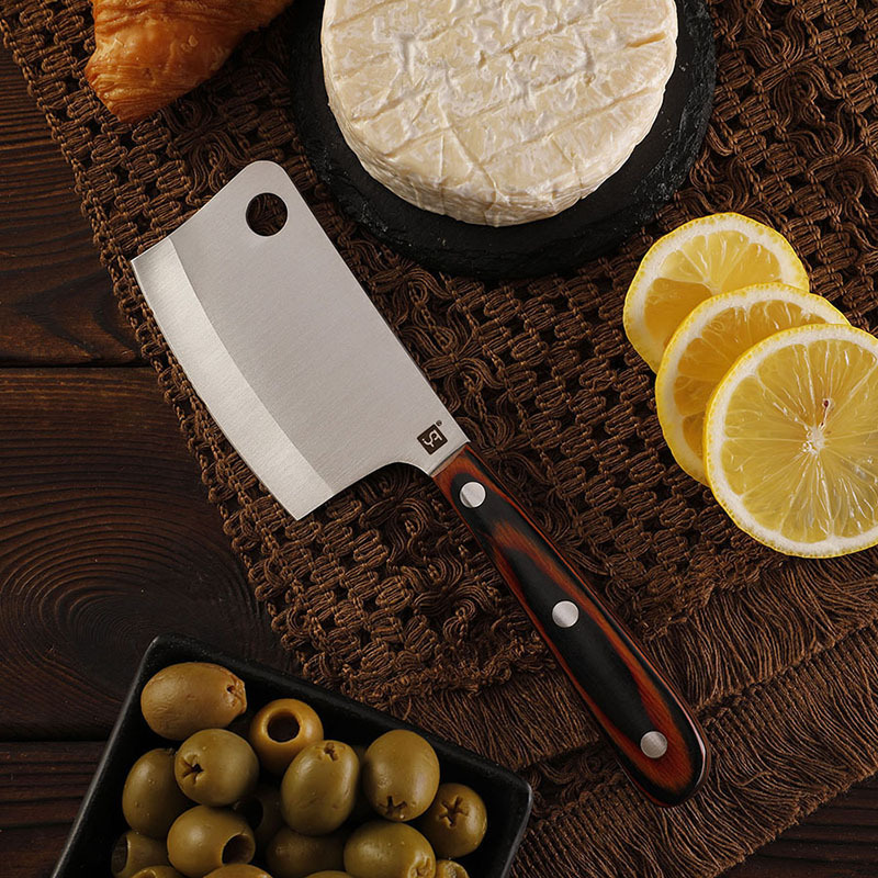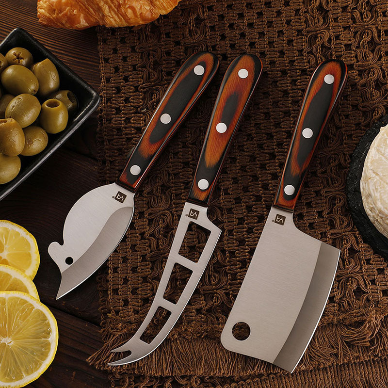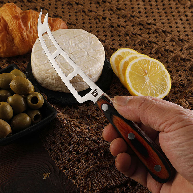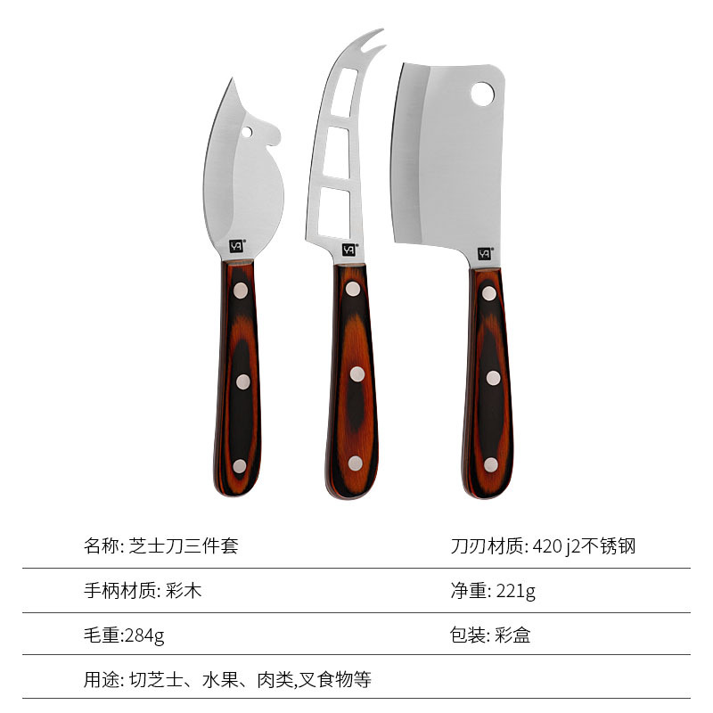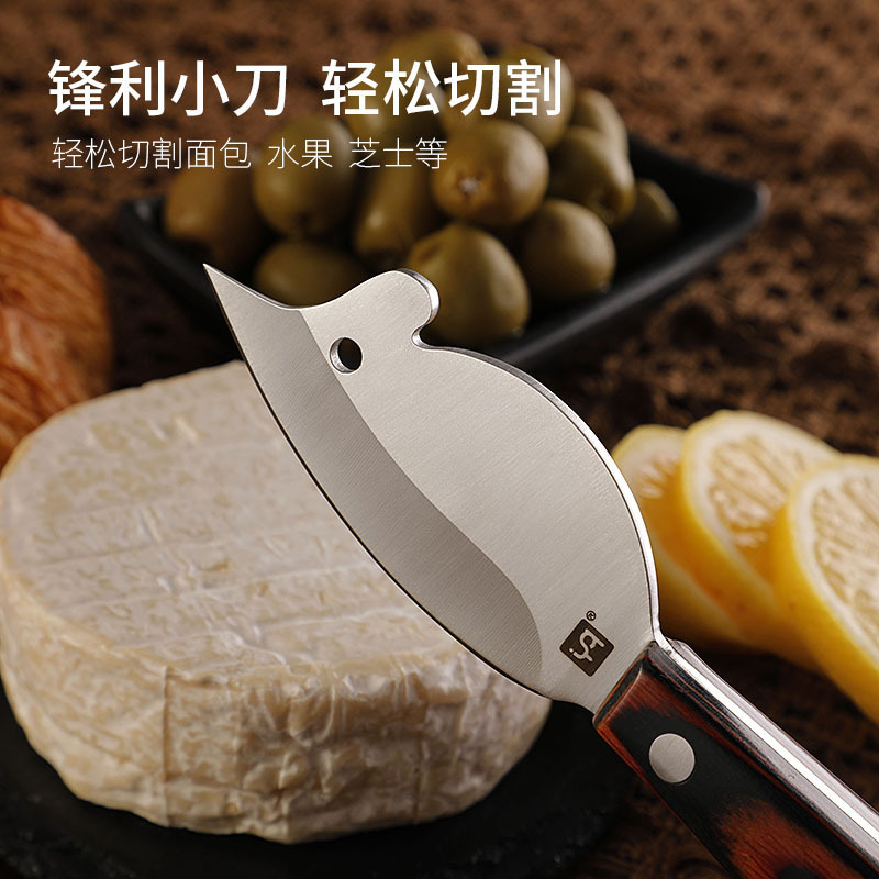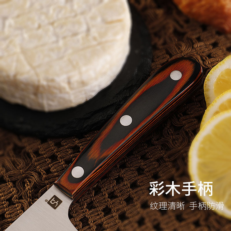 跨境新款彩木柄奶酪芝士刀西餐刀具不锈钢水果刀手抓肉刀小菜刀