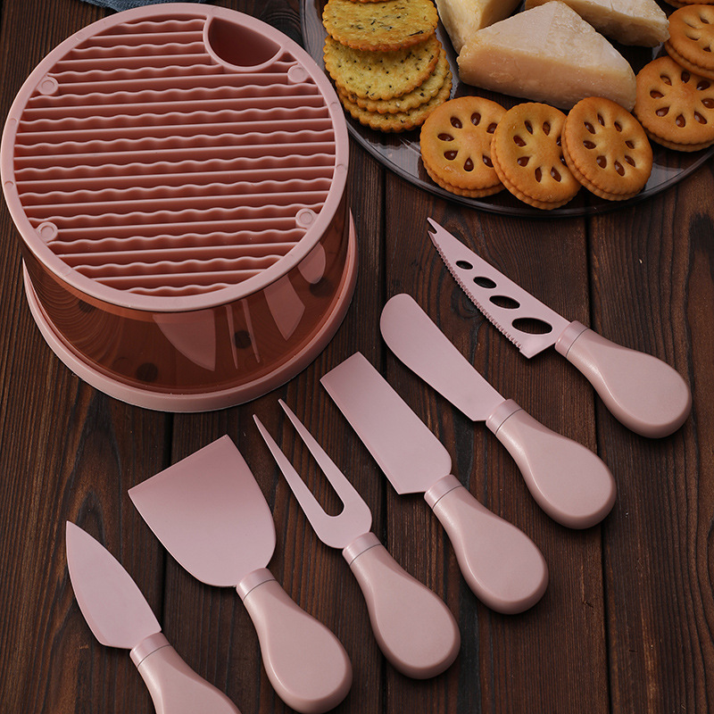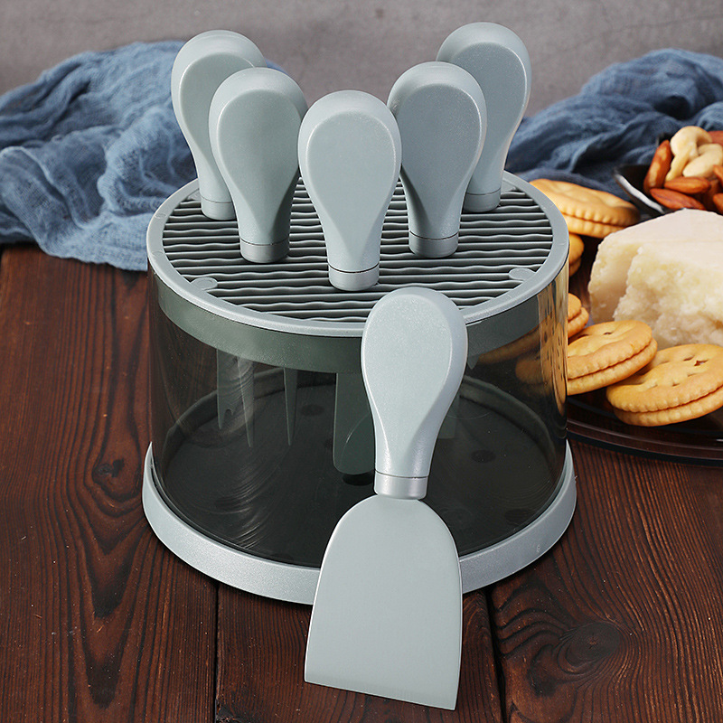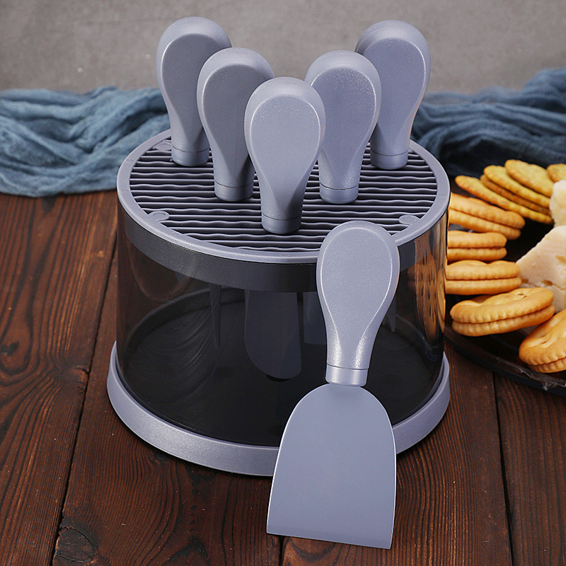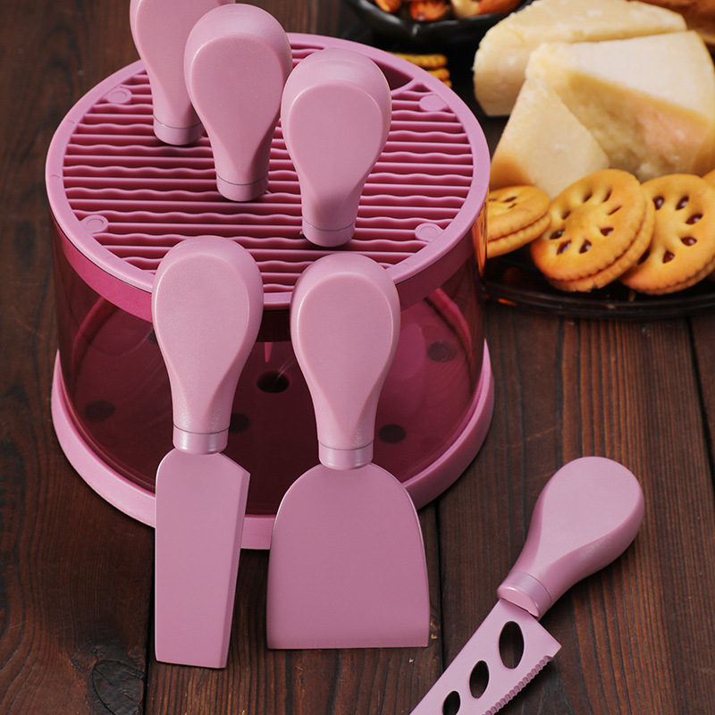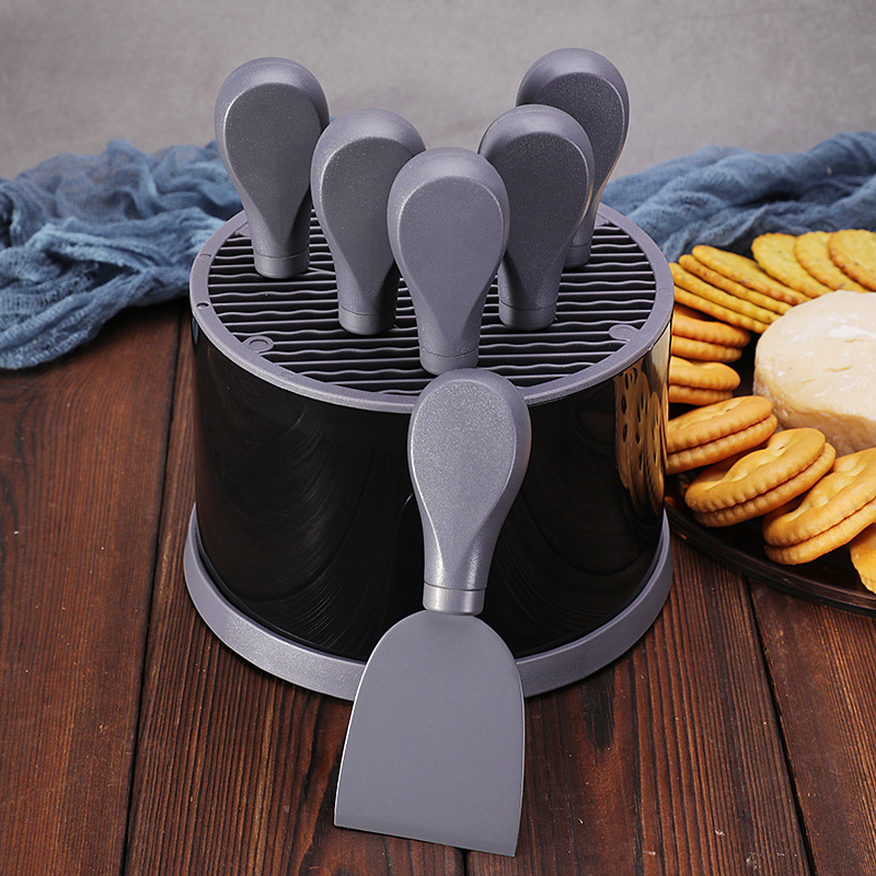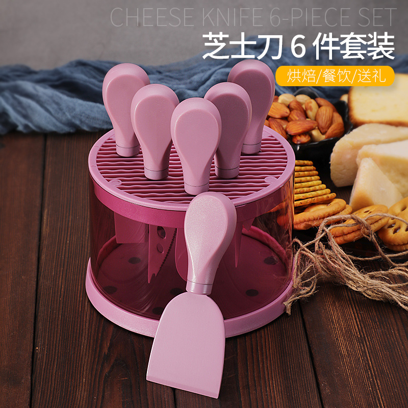 跨境芝士刀座奶酪工具刀叉铲套装不锈钢彩色6件套芝士刀套装现货
