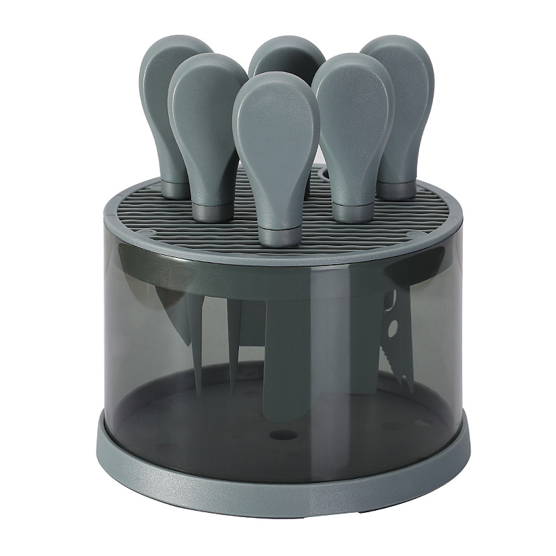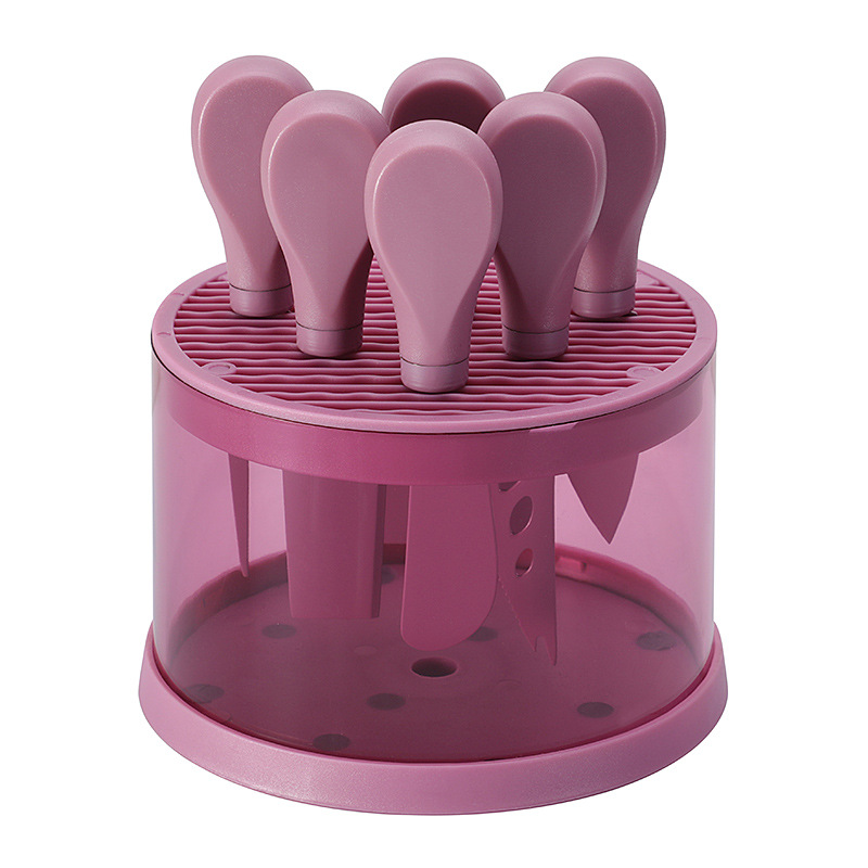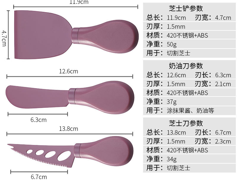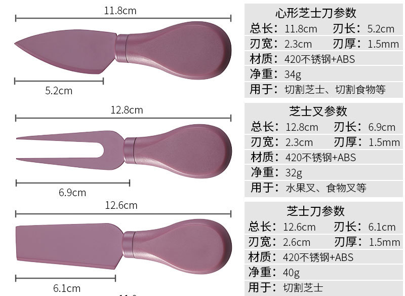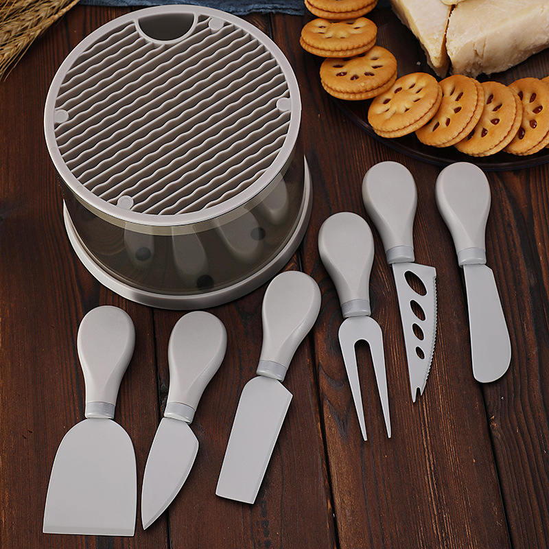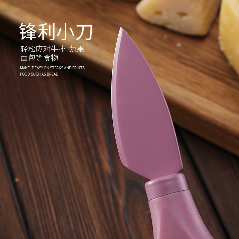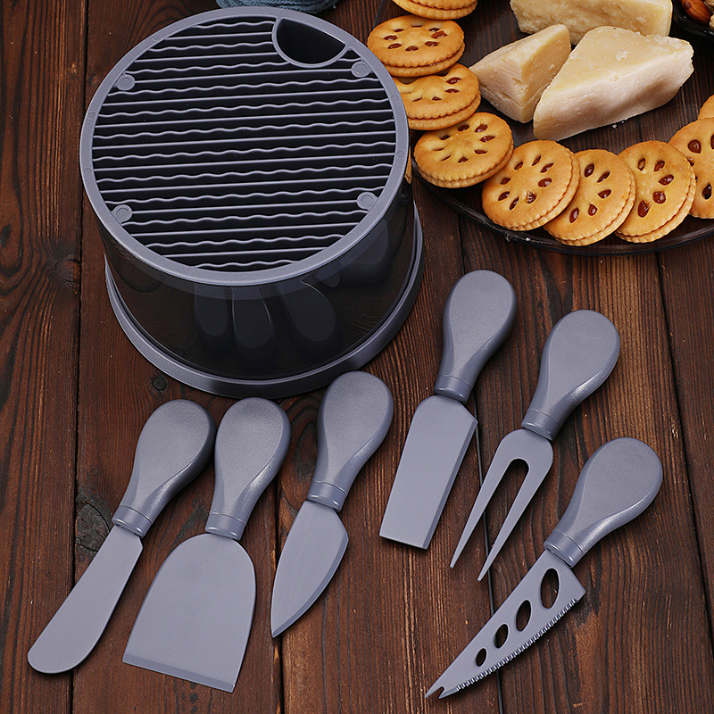 跨境芝士刀座奶酪工具刀叉铲套装不锈钢彩色6件套芝士刀套装现货