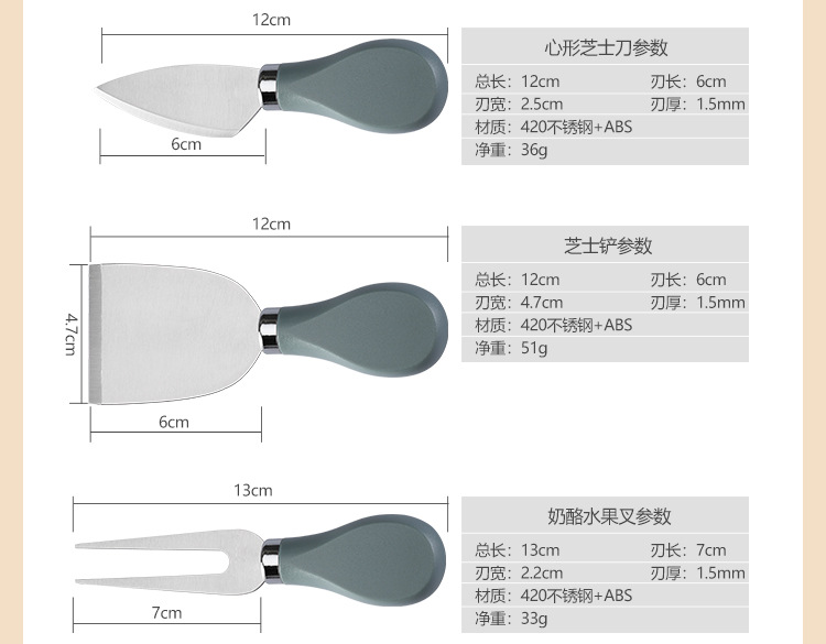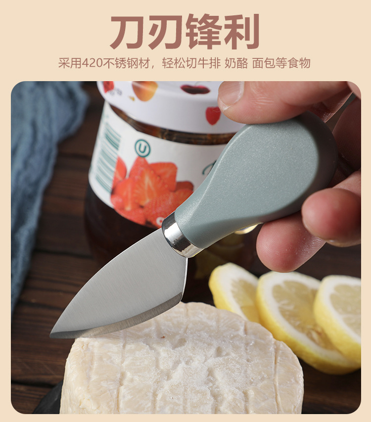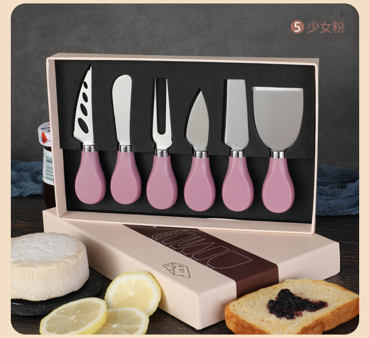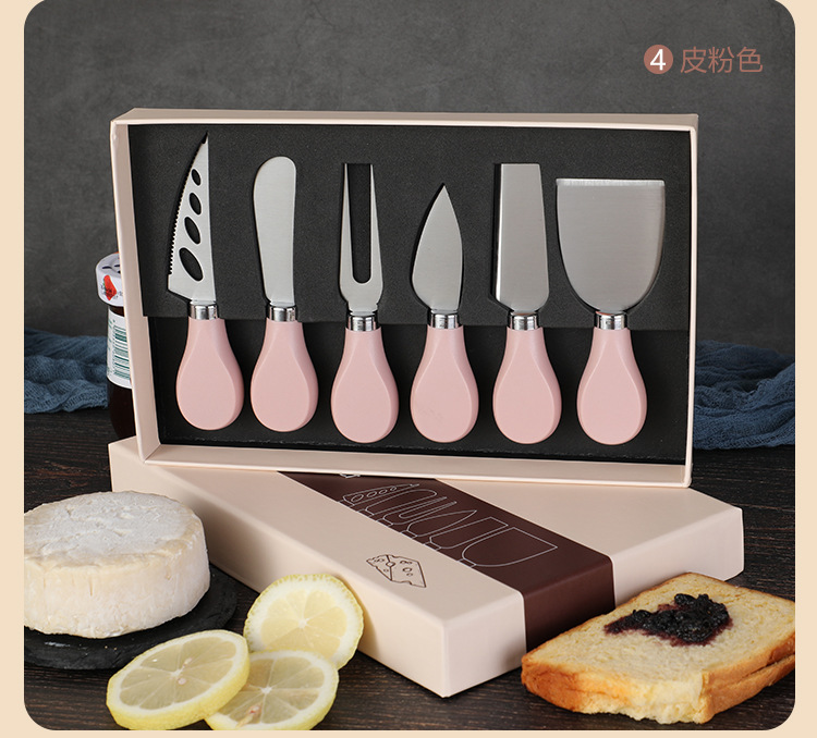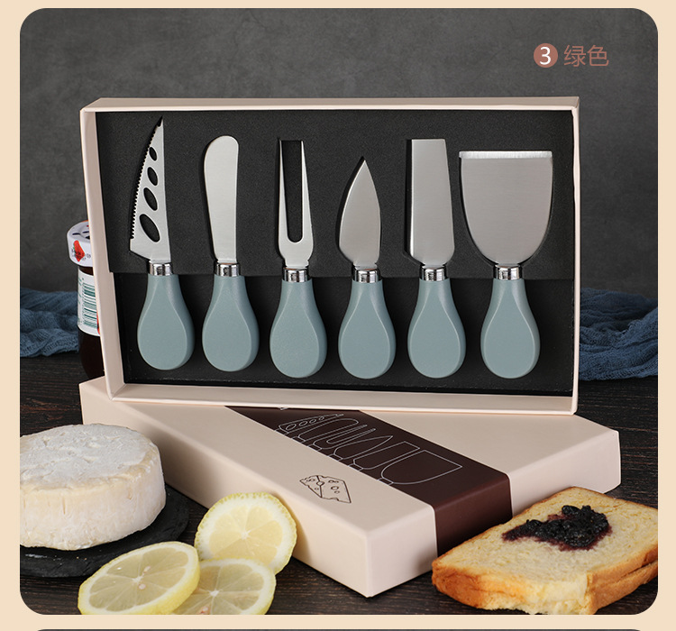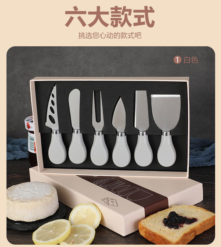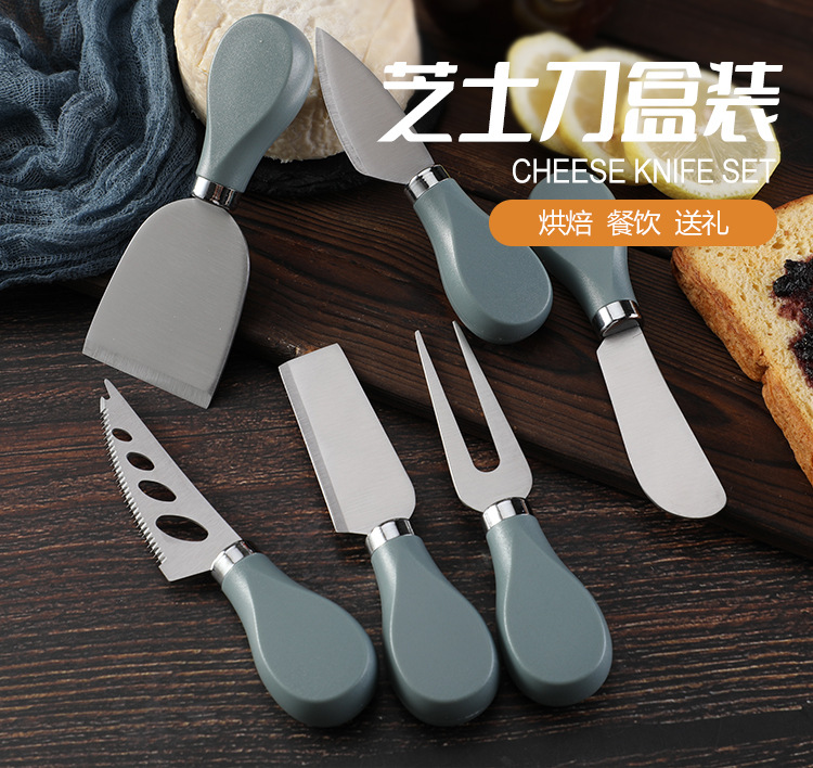 高品质不锈钢奶酪刀叉组合套装西餐芝士刀具礼盒套装6件套芝士刀