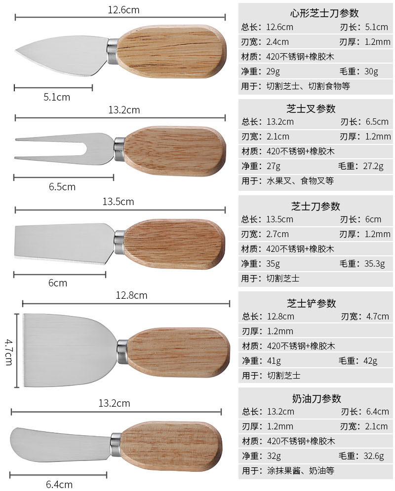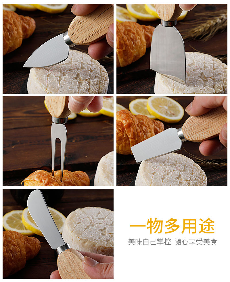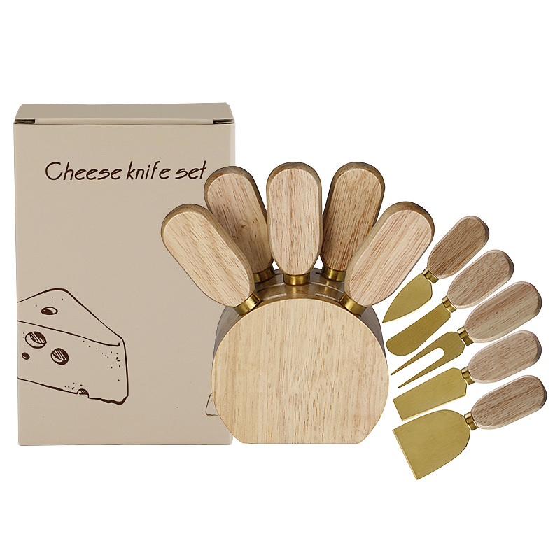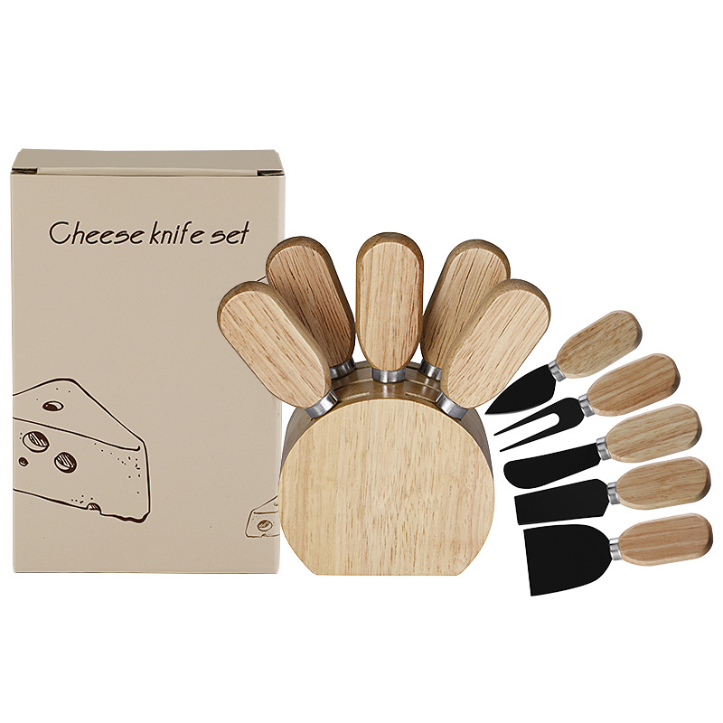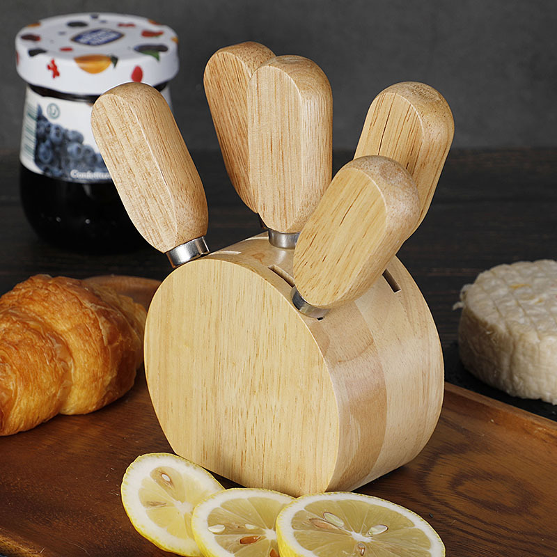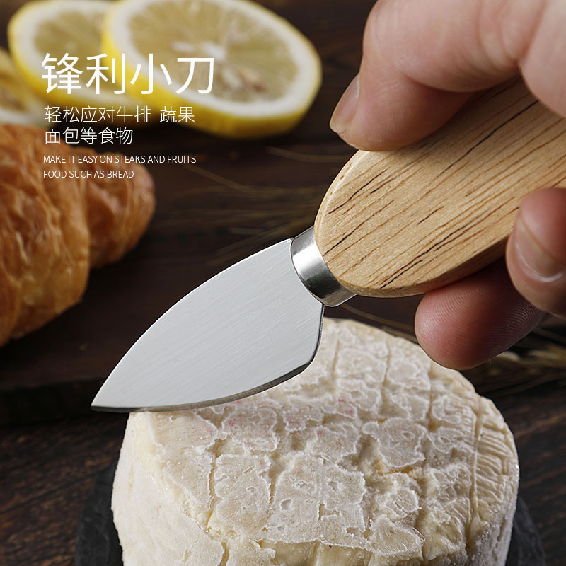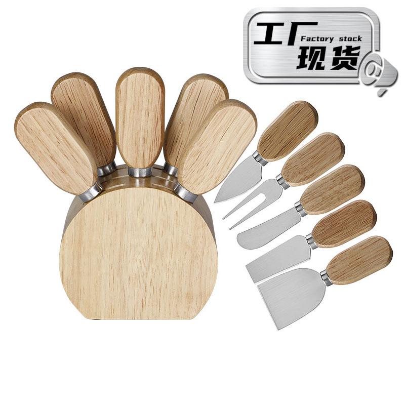 跨境现货橡胶木座芝士刀套装不锈钢芝士工具奶酪刀芝士刀叉套装