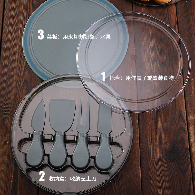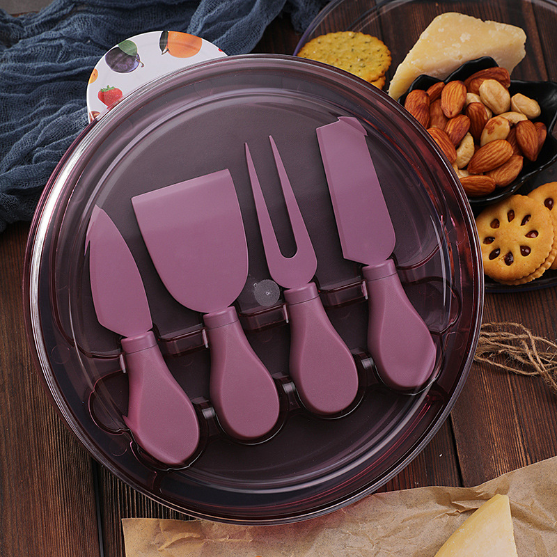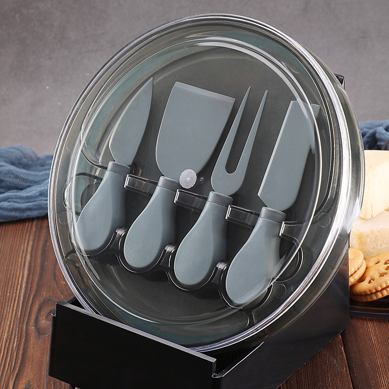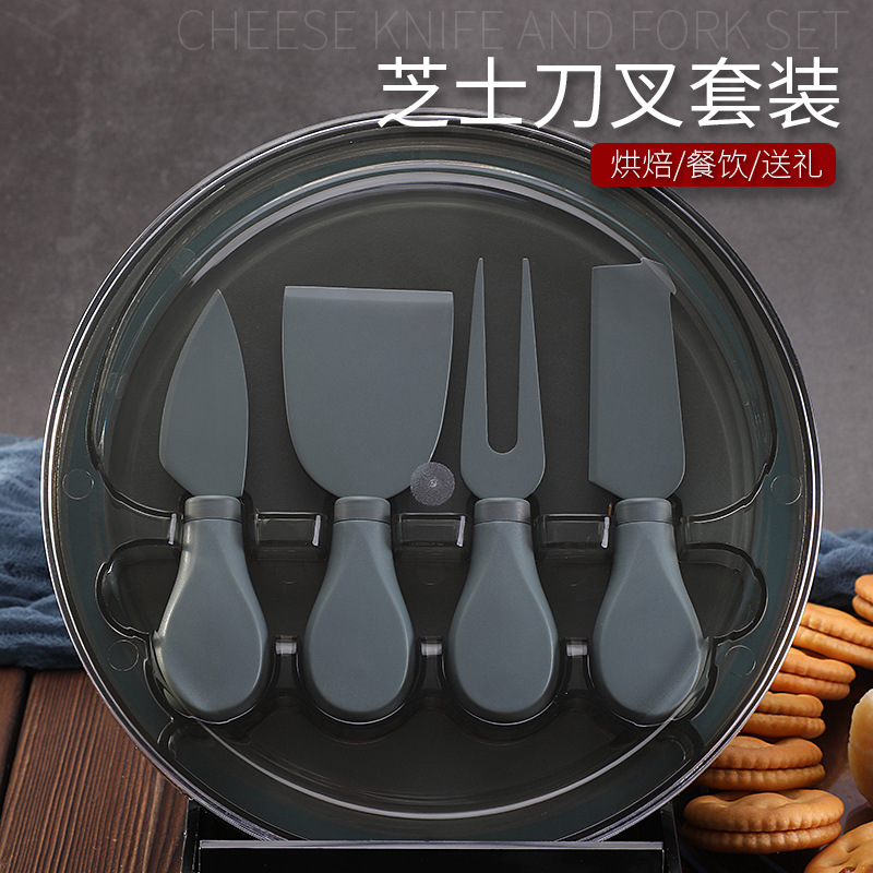 跨境新款芝士刀具餐具刀叉套装家用配收纳盒不锈钢芝士刀四件套