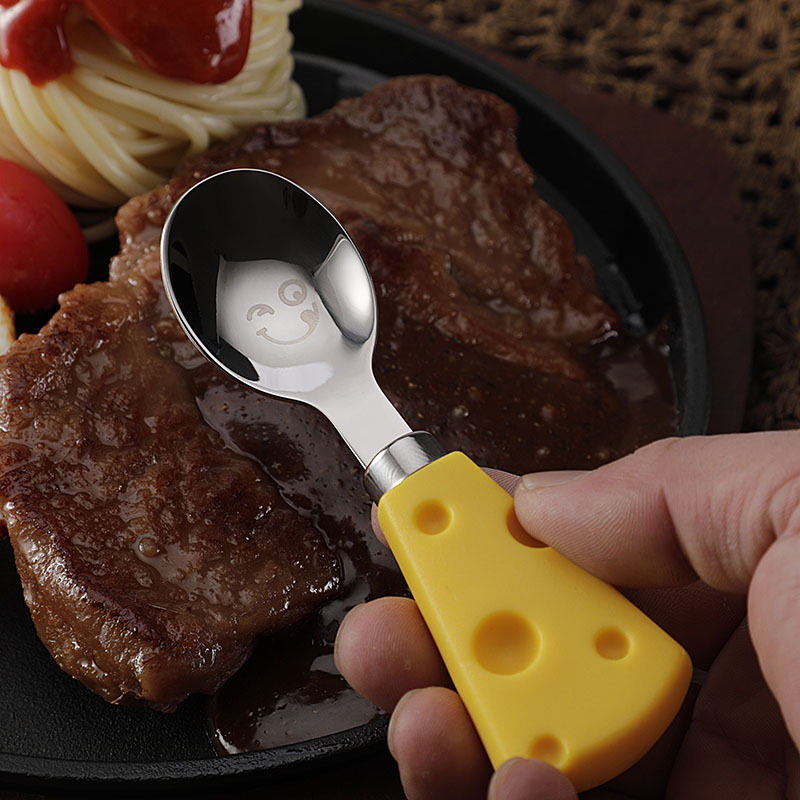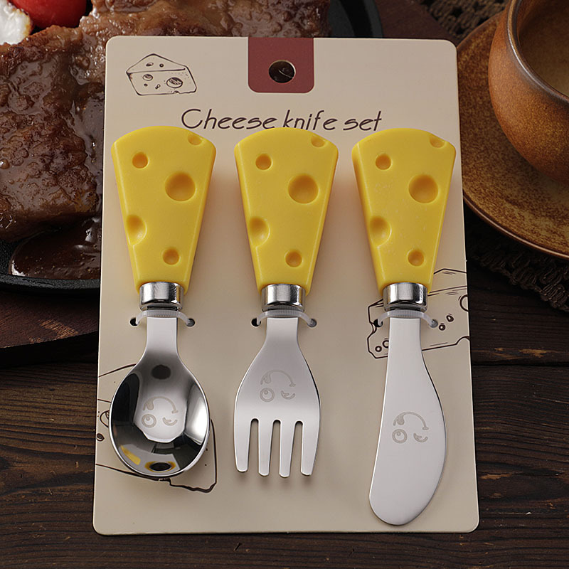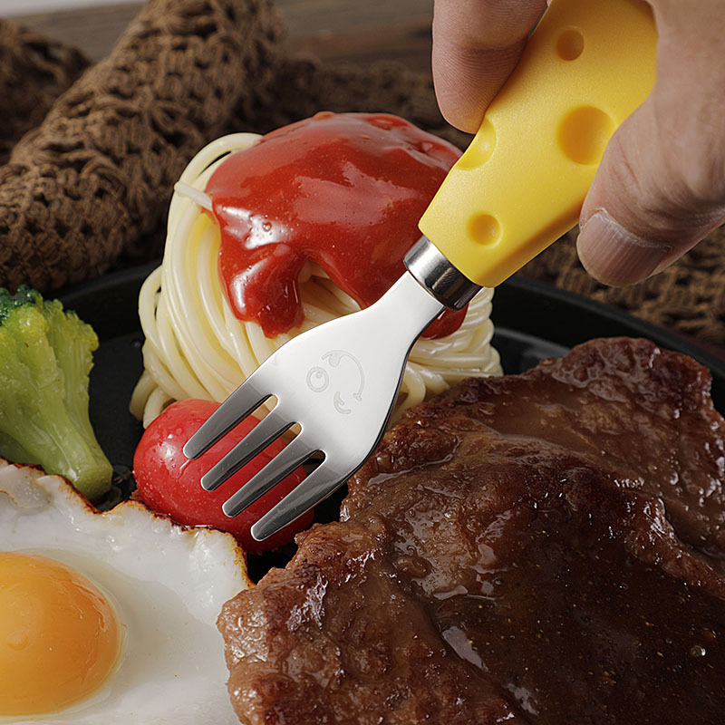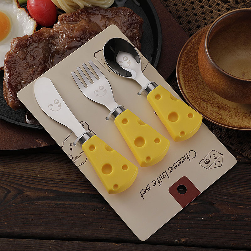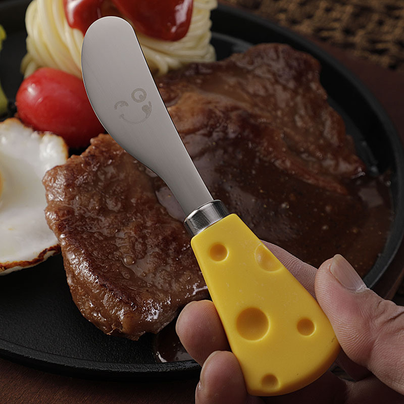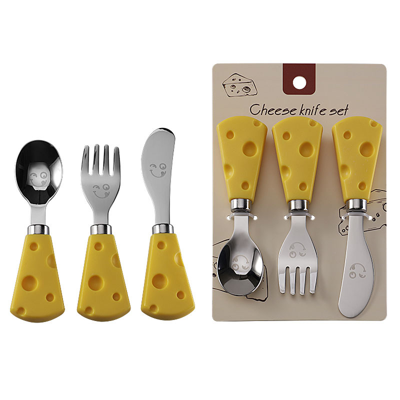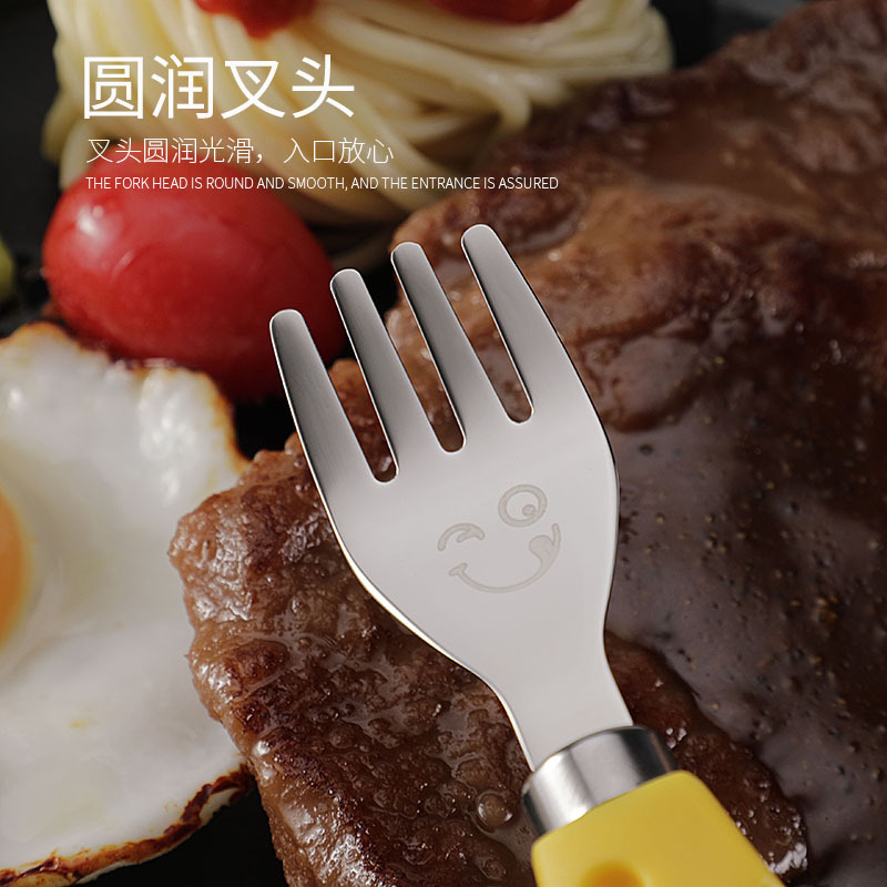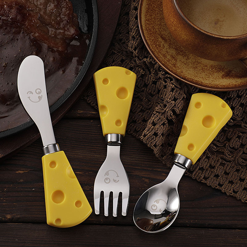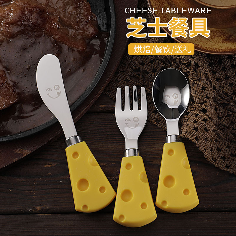 跨境现货304不锈钢笑脸餐具芝士刀儿童刀叉勺便携餐刀餐勺抹酱刀