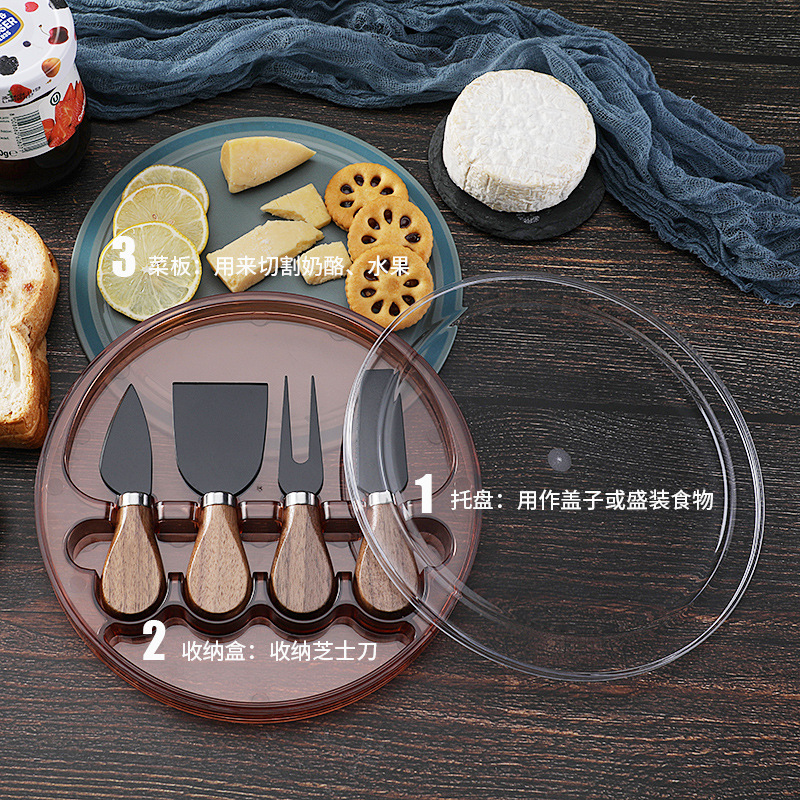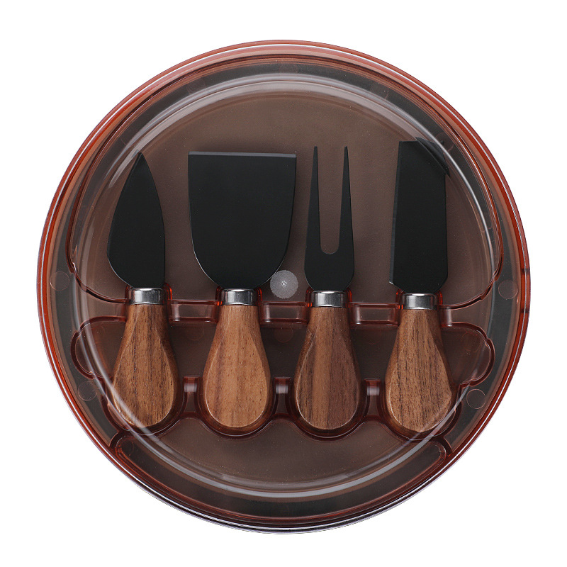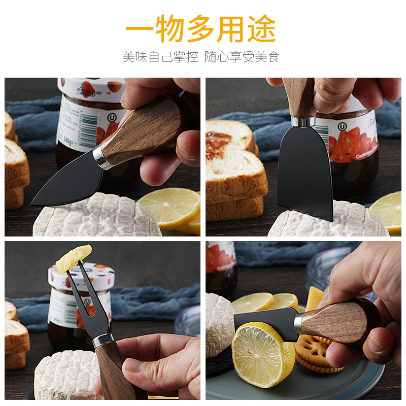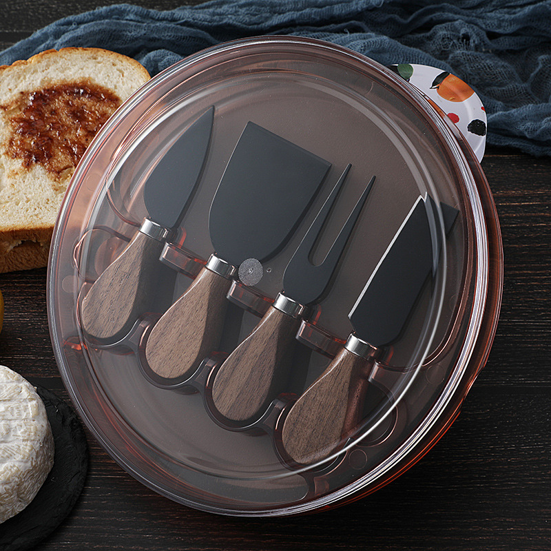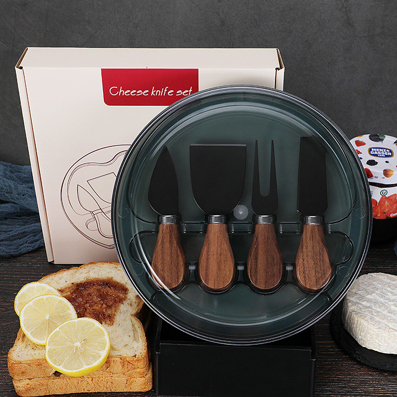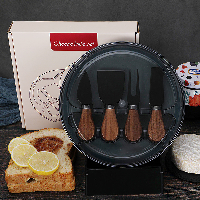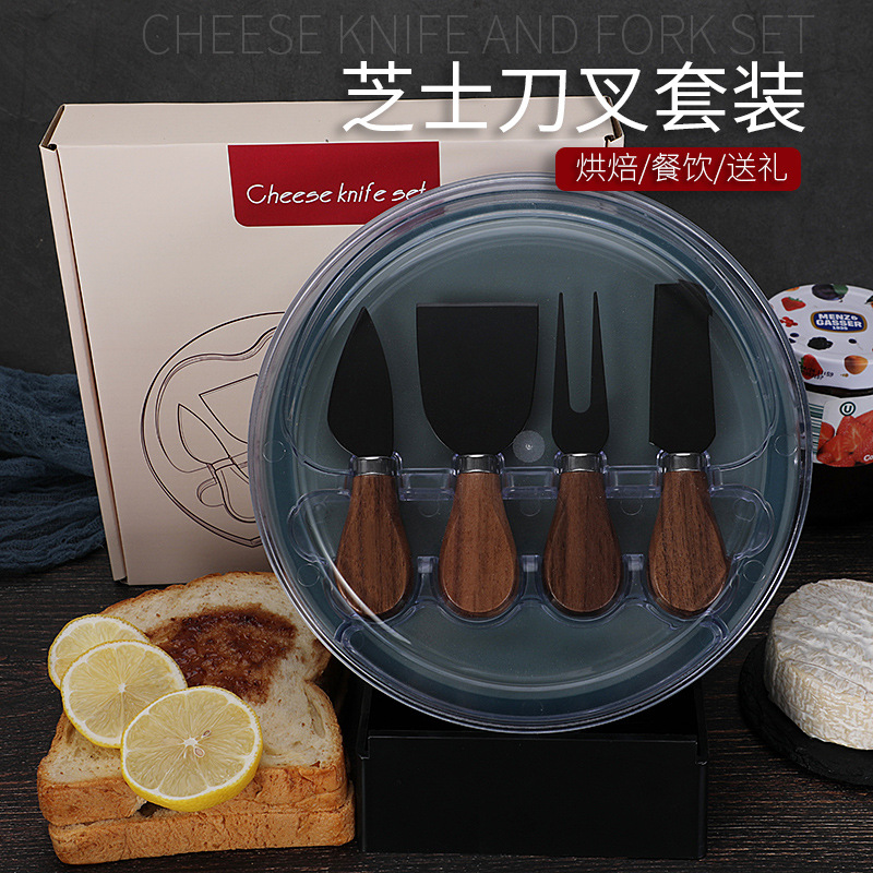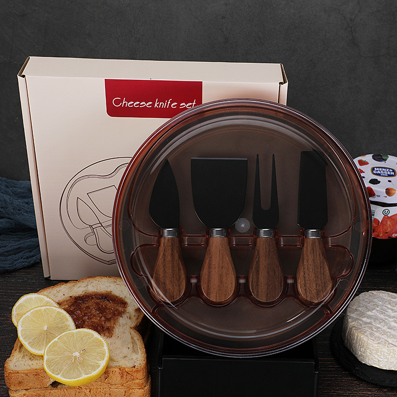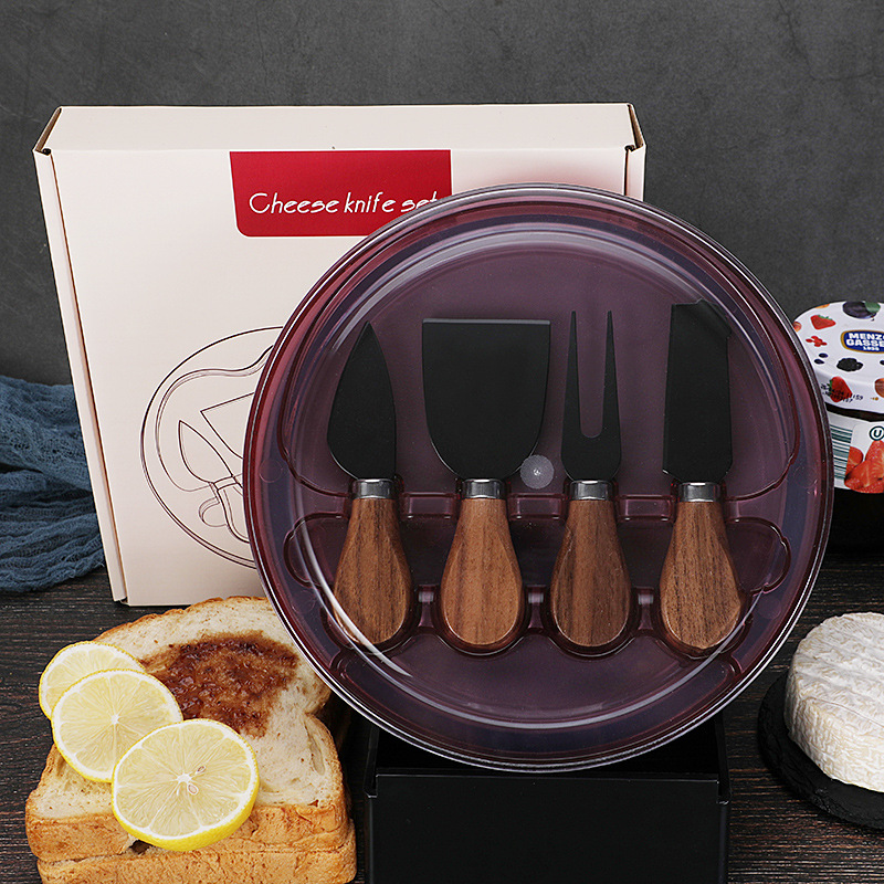 跨境不锈钢芝士工具木柄芝士刀黄油刀ABS盒装4件套奶酪刀套装礼盒