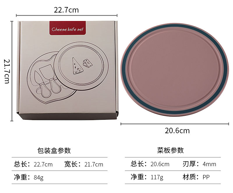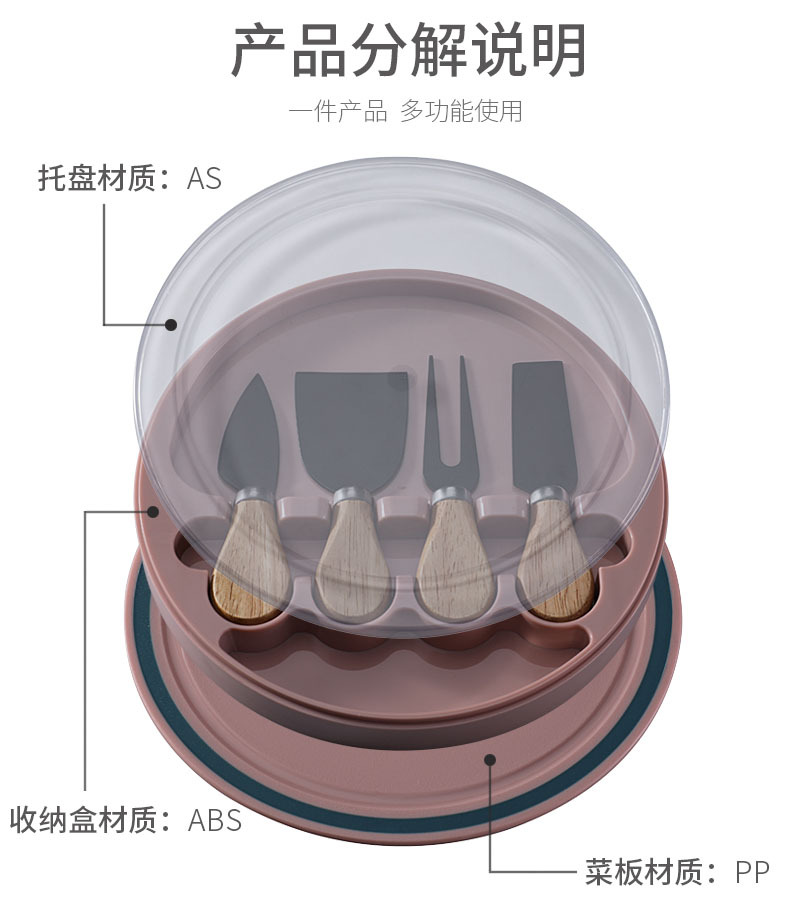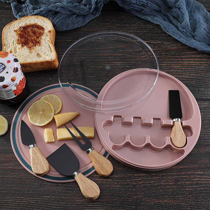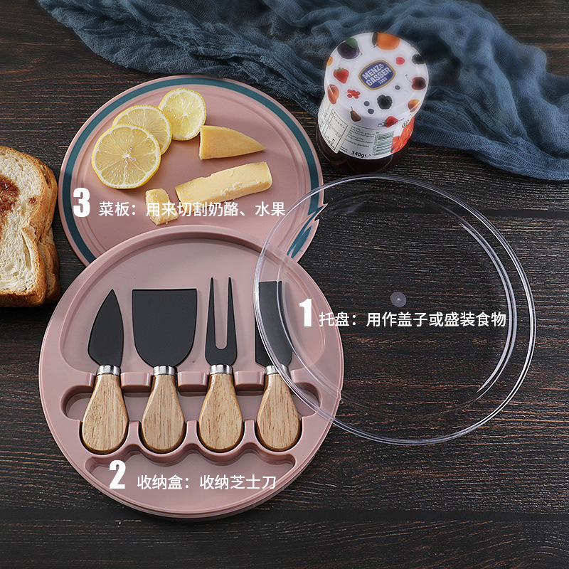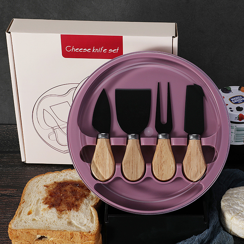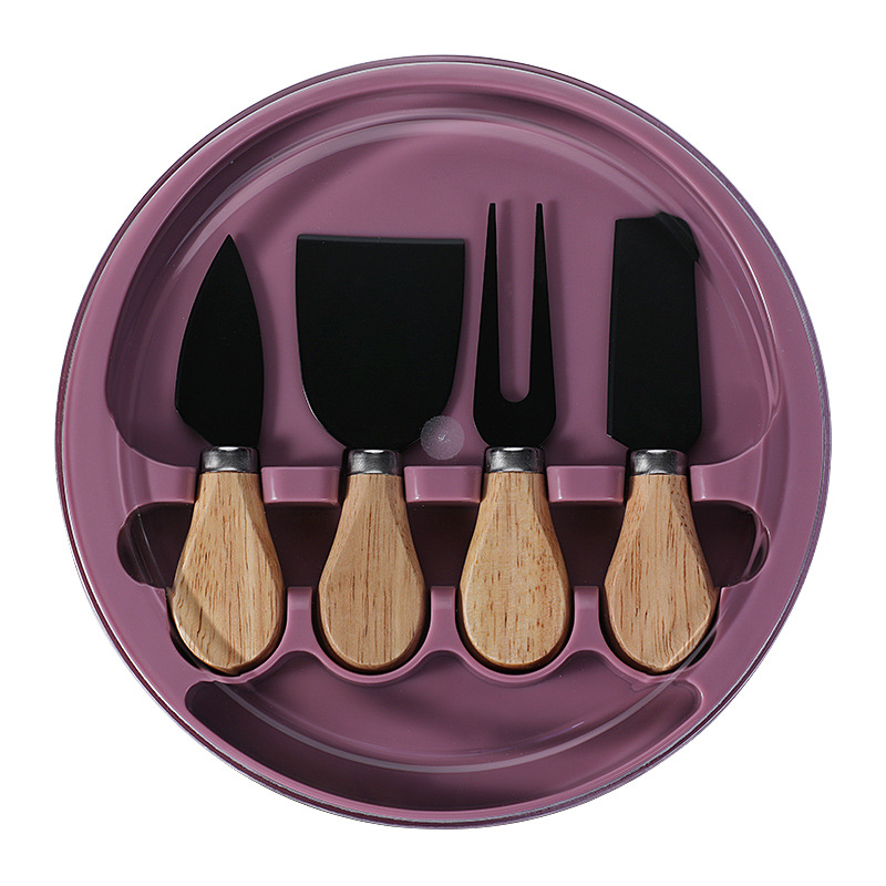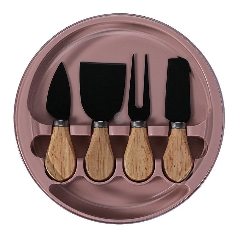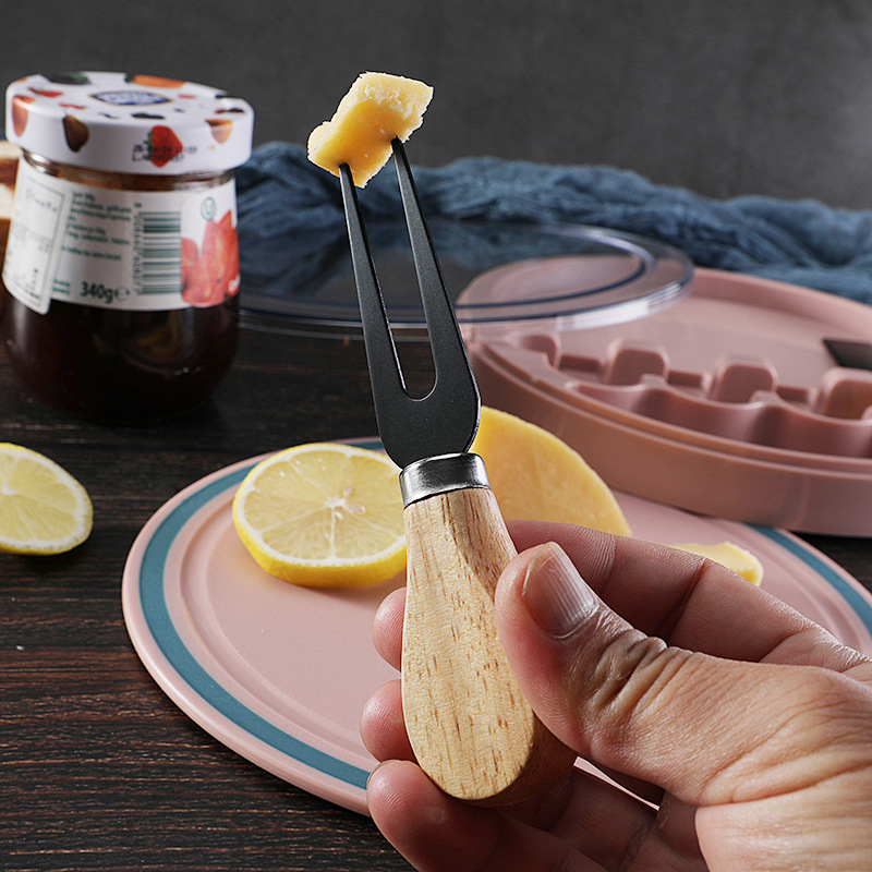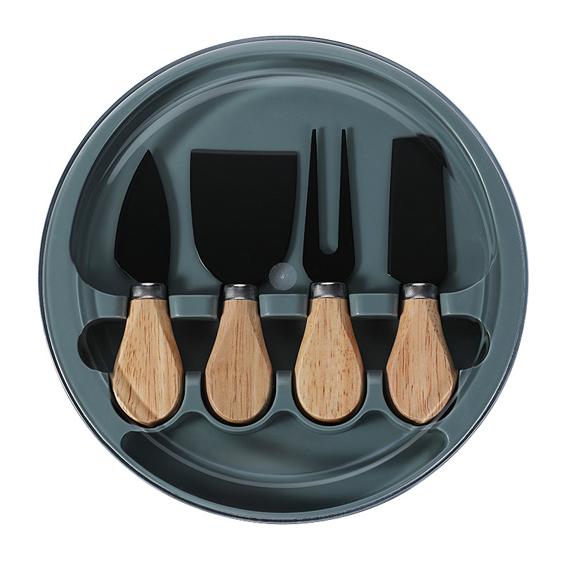 创意配橡木柄奶酪刀黄油黑色不锈钢盒装4件套芝士刀套装蛋糕