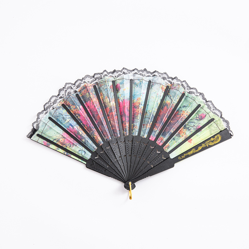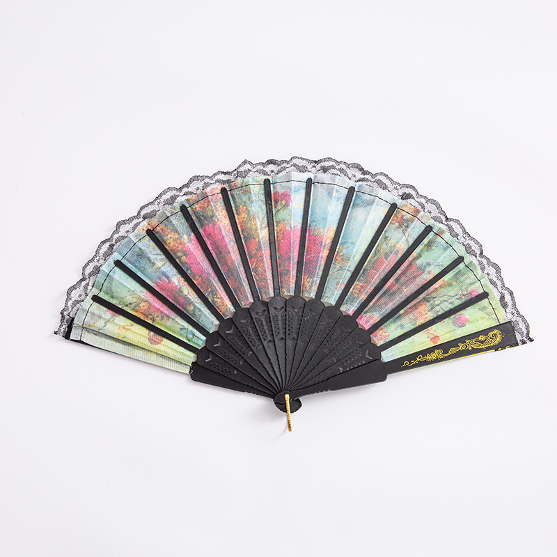 西班牙黑花边蕾丝扇烫金工艺折扇夏季中国风舞蹈拍照批发自产自销