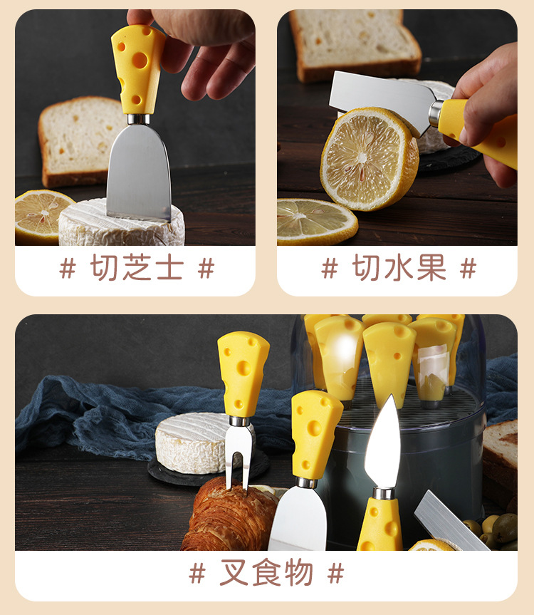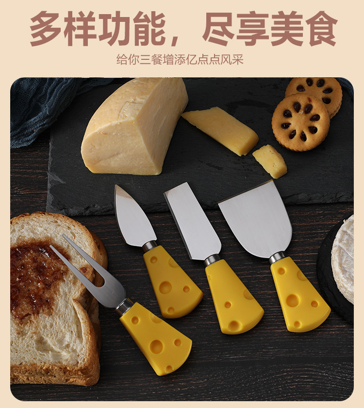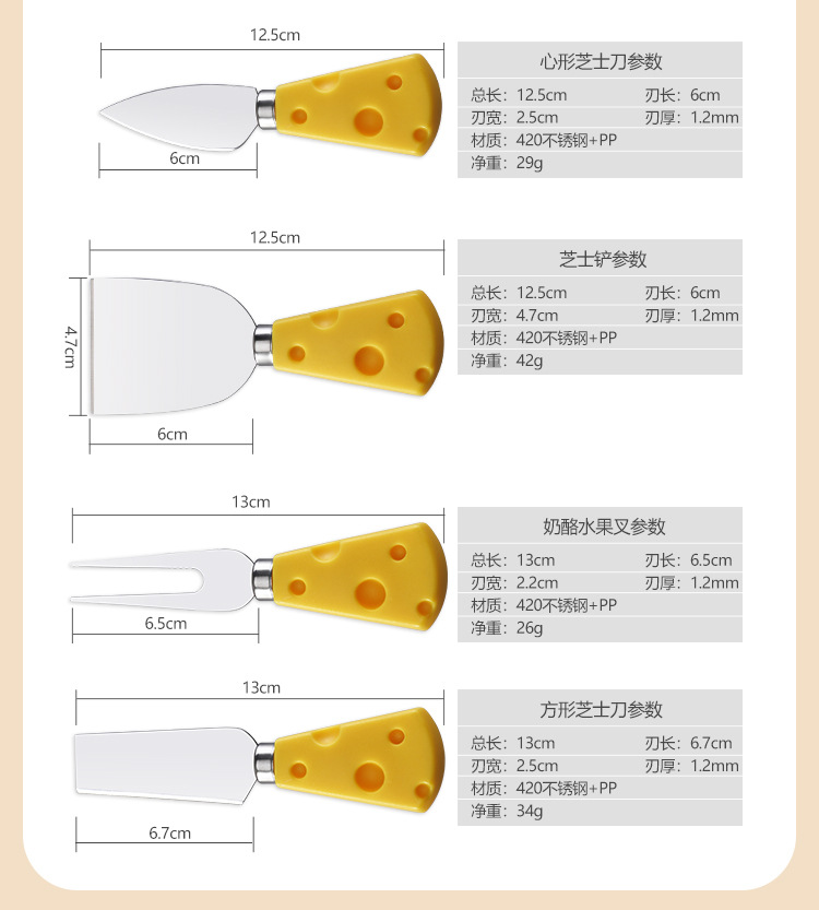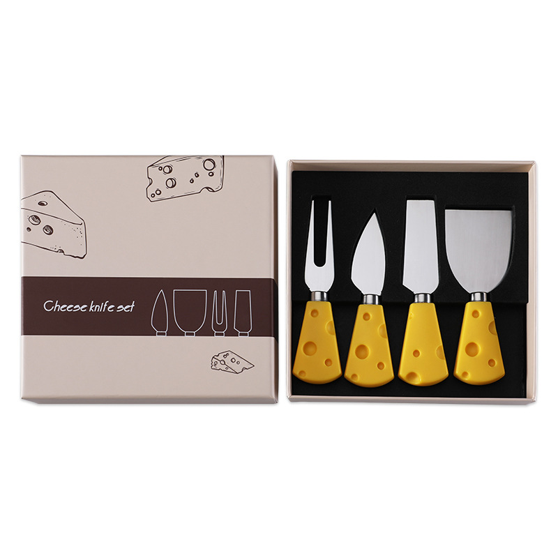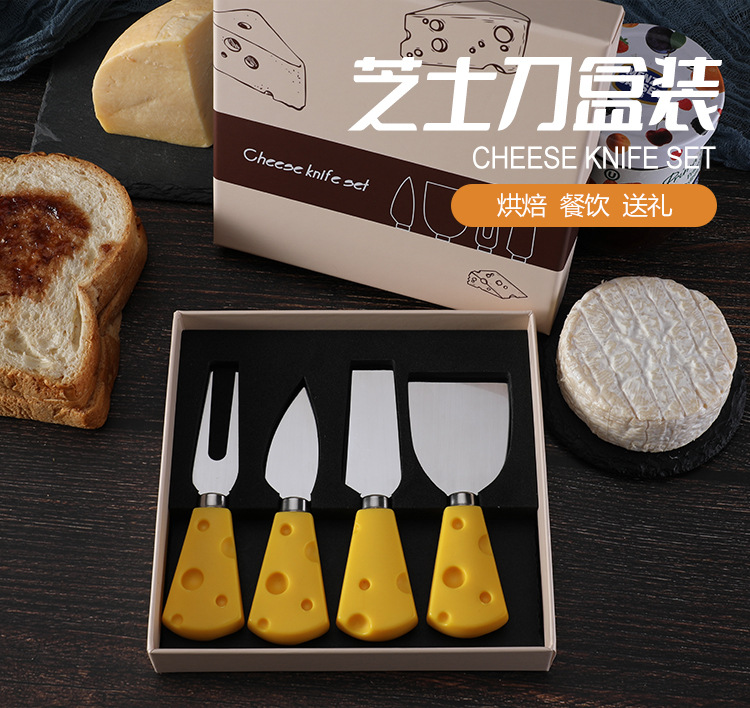黄芝士柄奶酪工具黄油刀西餐餐具刀叉不锈钢芝士刀4件套礼盒套装
