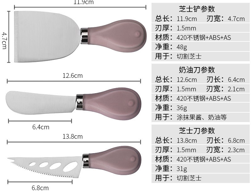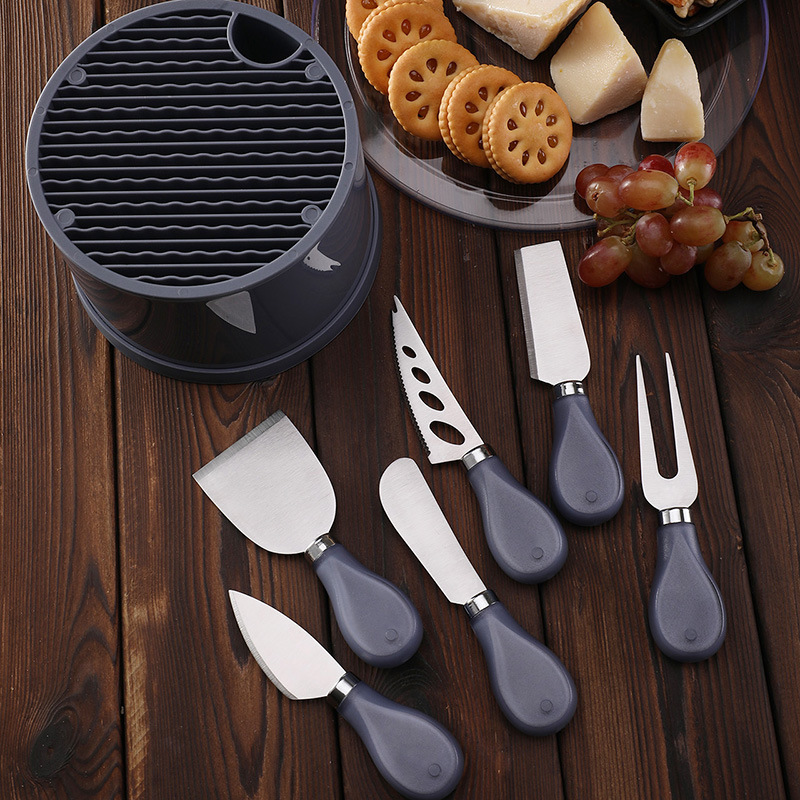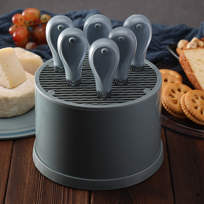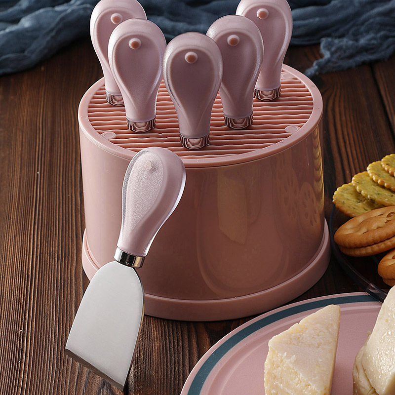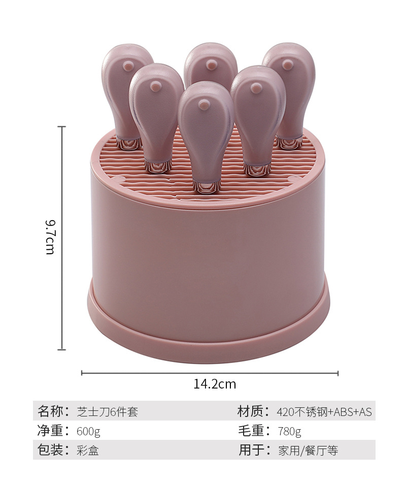 芝士刀具不锈钢芝士刀套装塑料柄含刀座厨房餐具刀叉芝士刀套装