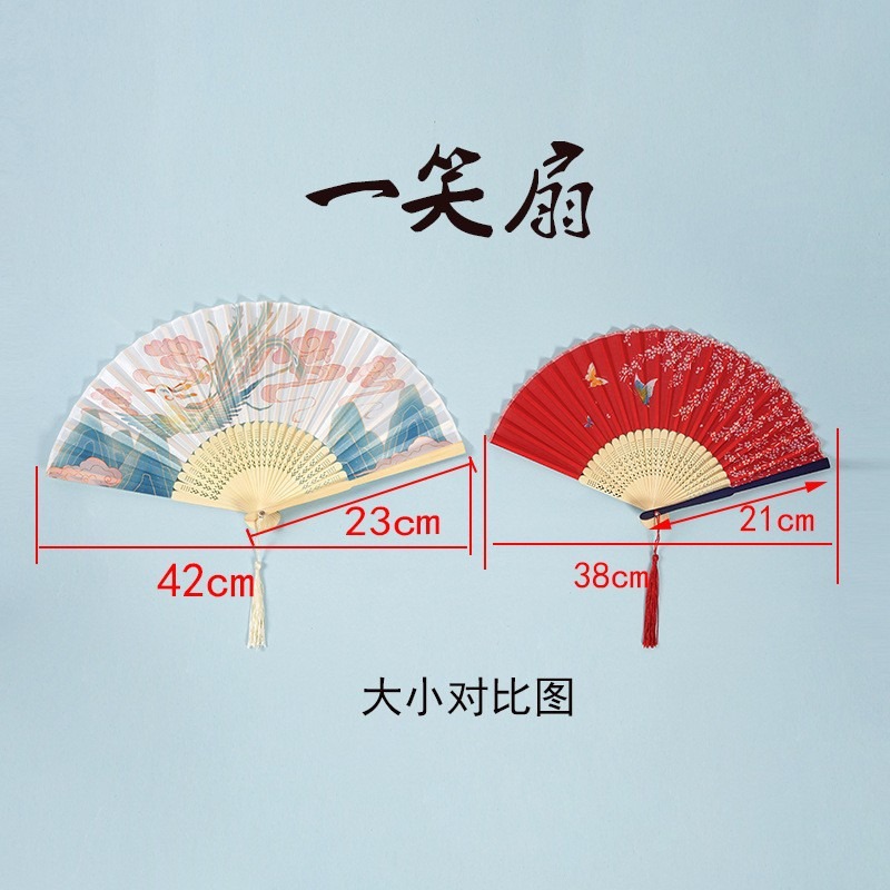厂家批发古风一笑扇中国风夏季折扇随身扇景区纪念竹制工艺扇子