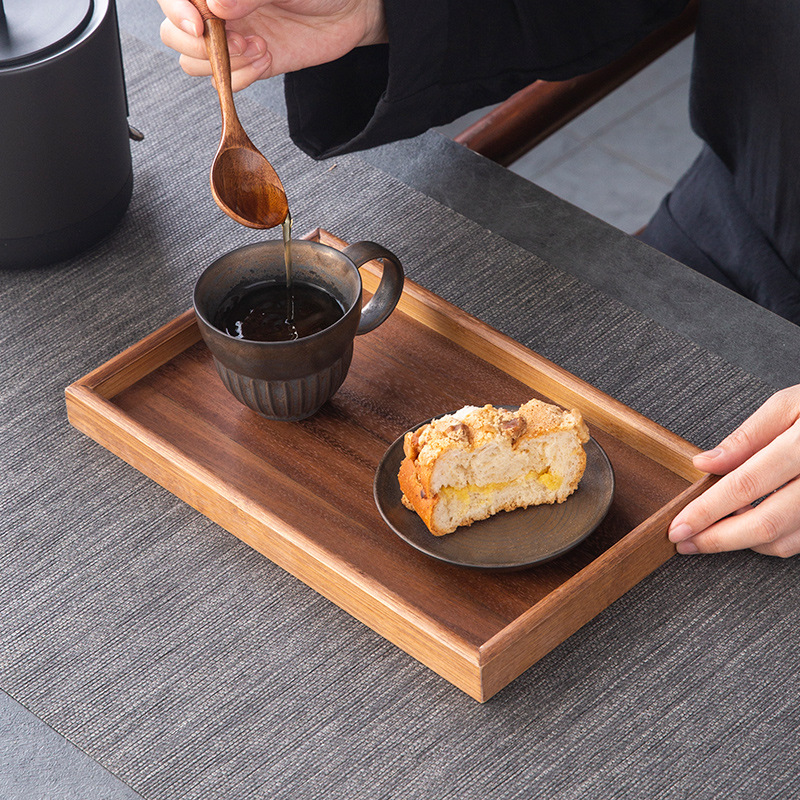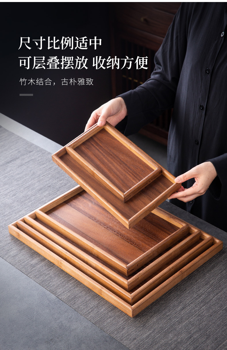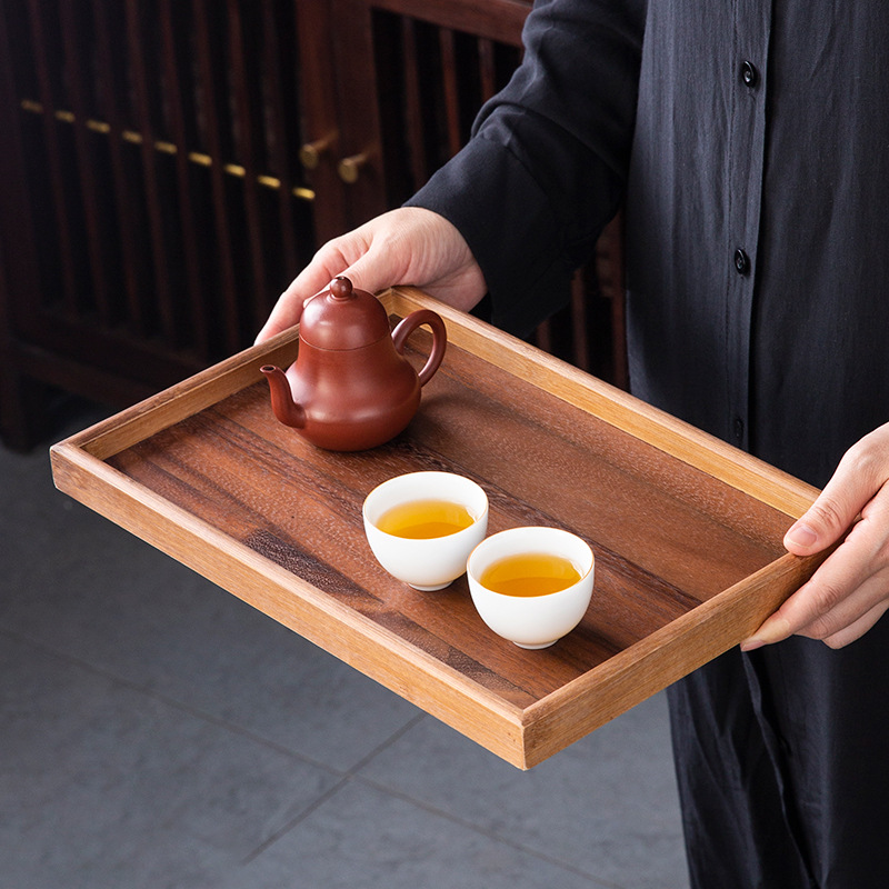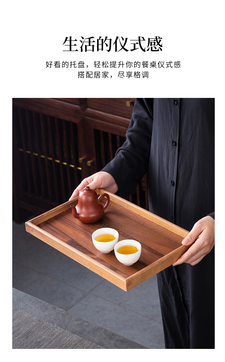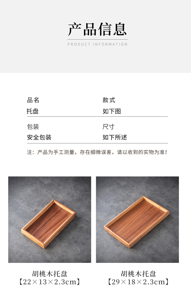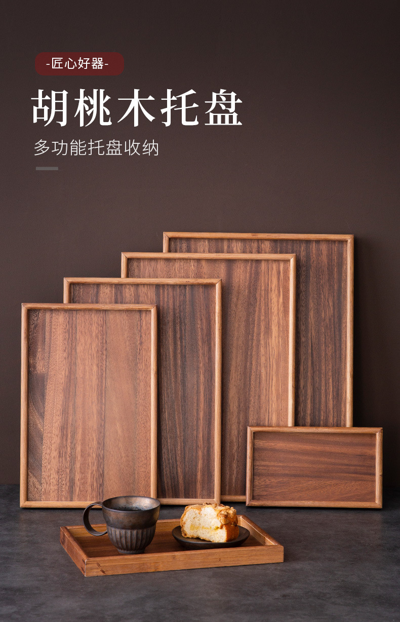 胡桃木托盘下午茶咖啡收纳盘实木点心盘子长方形木质茶盘水杯托盘
