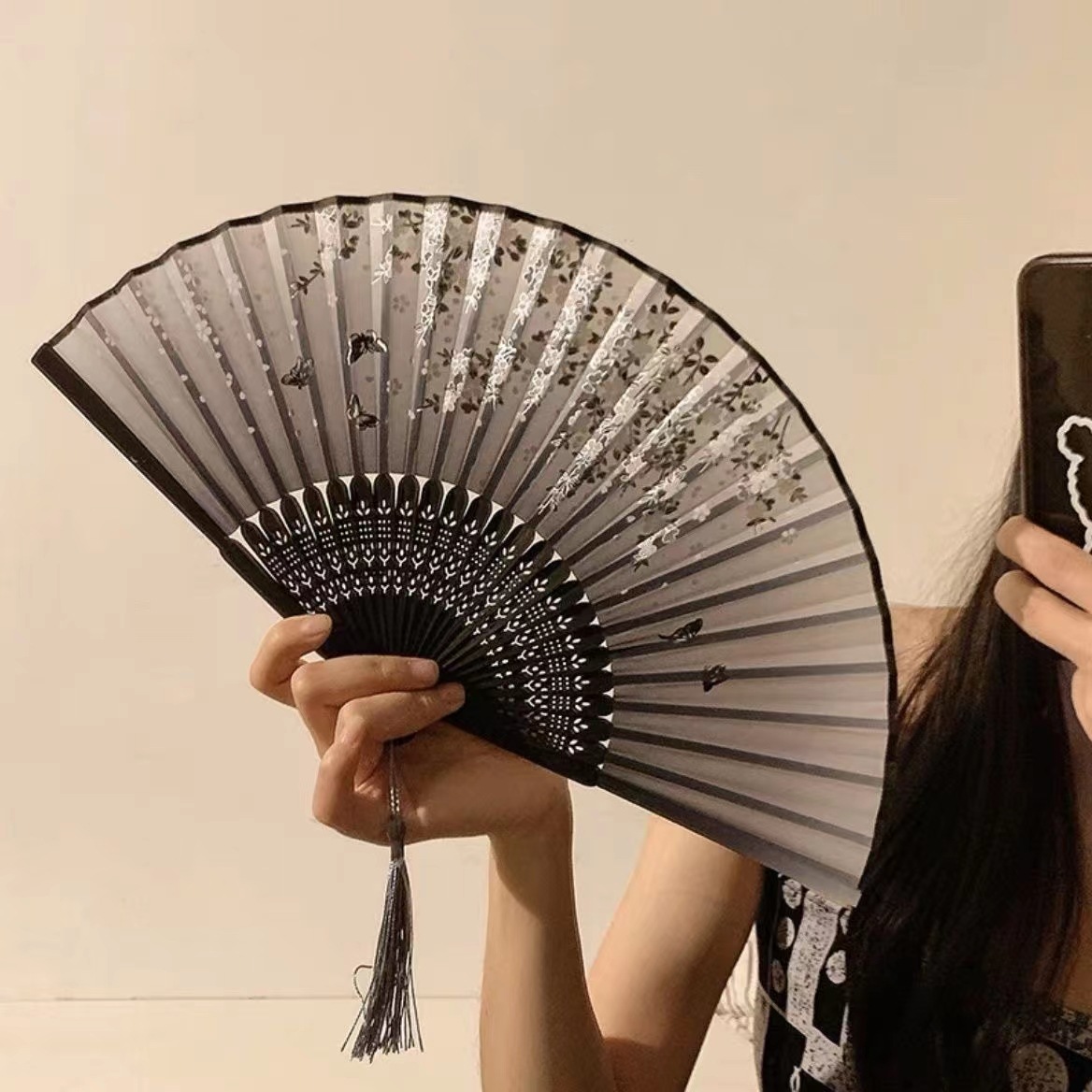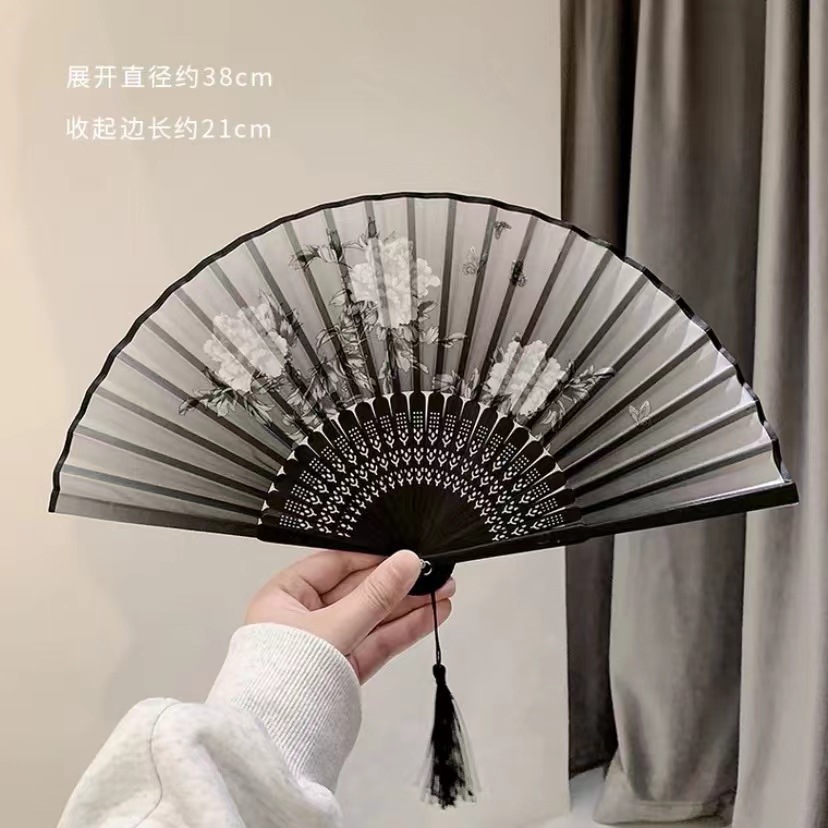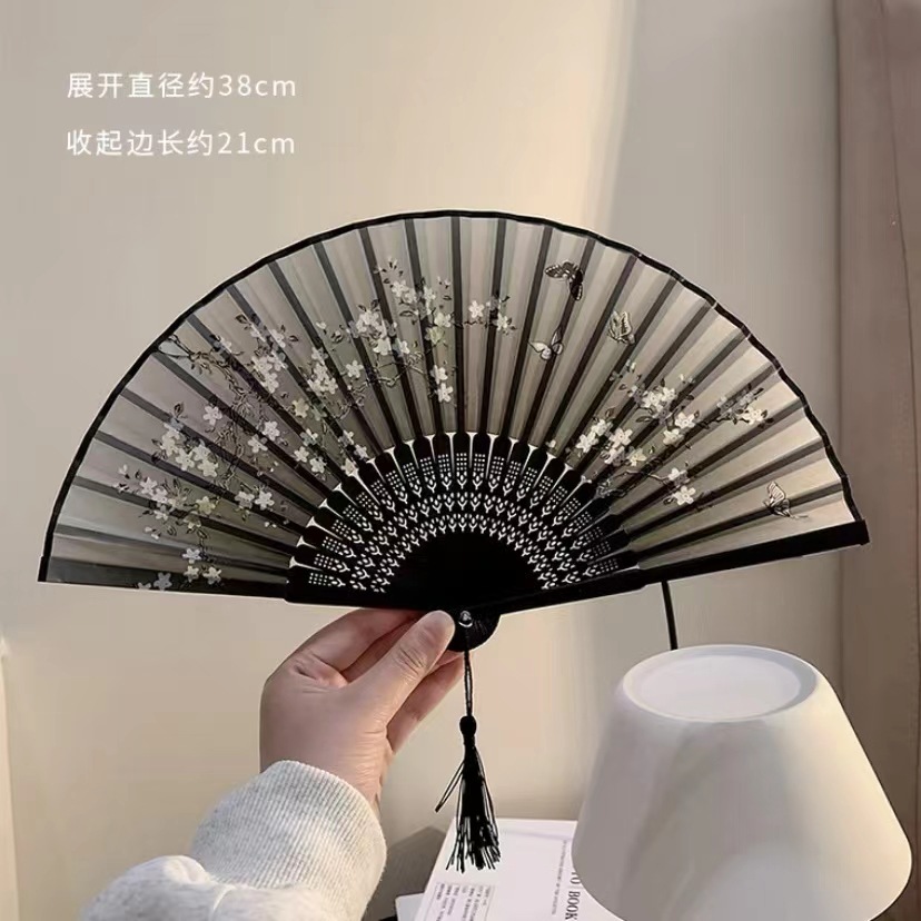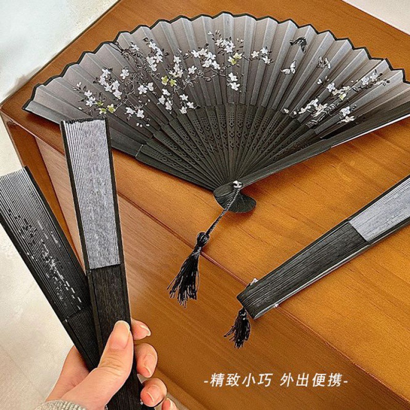 中国风折叠小扇子随身携带古风汉服古装舞蹈新中式夏天黑色竹扇赐