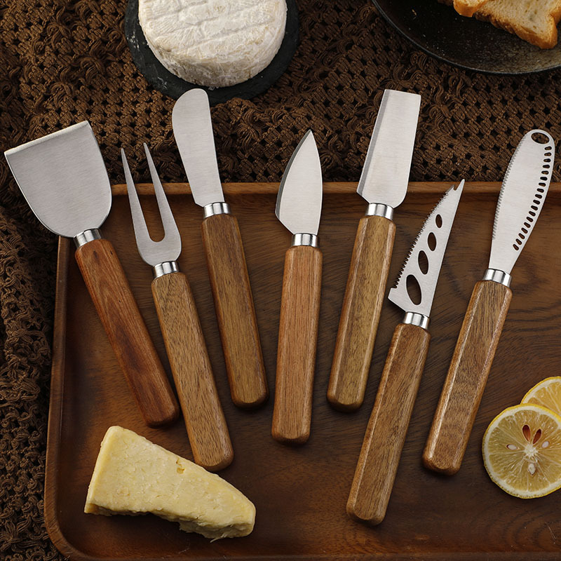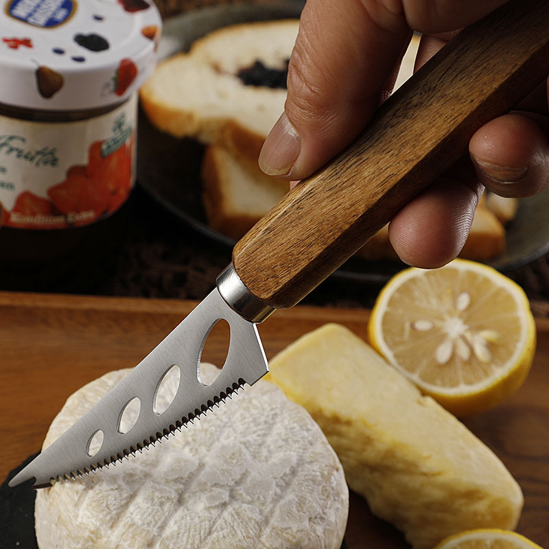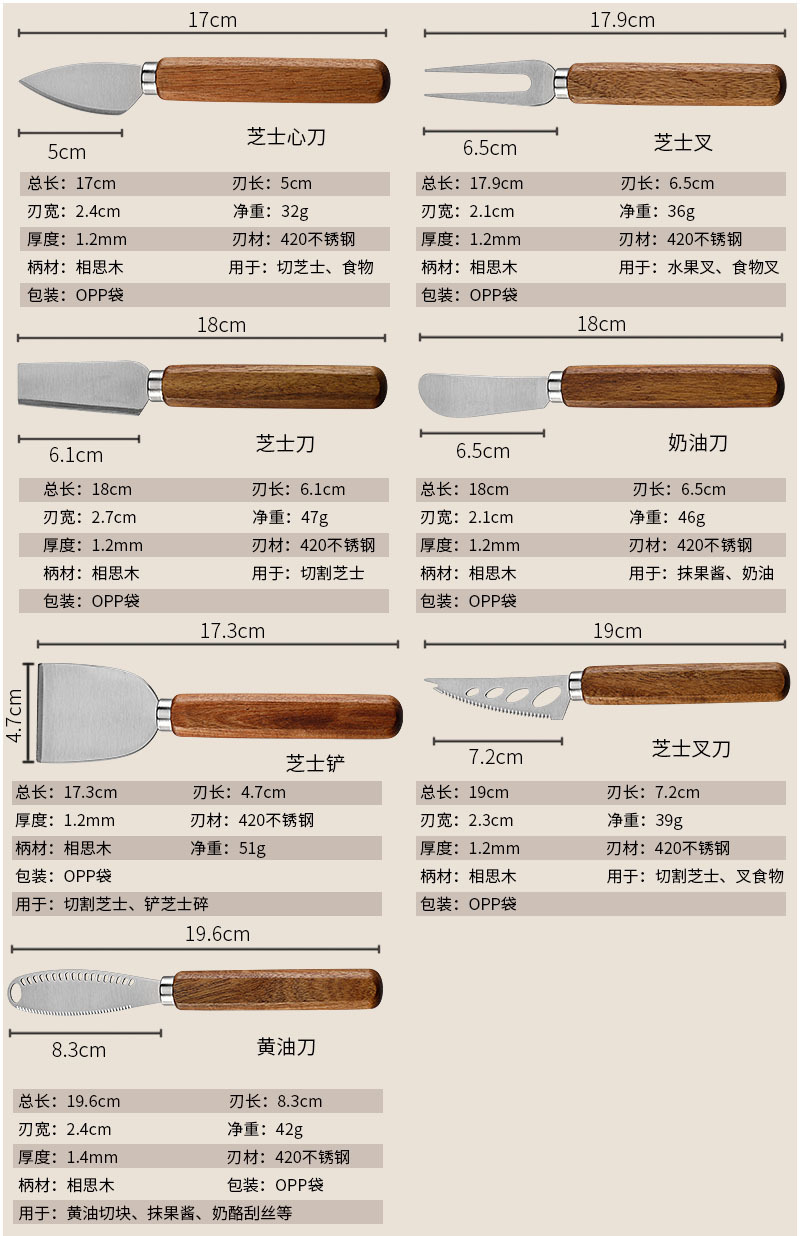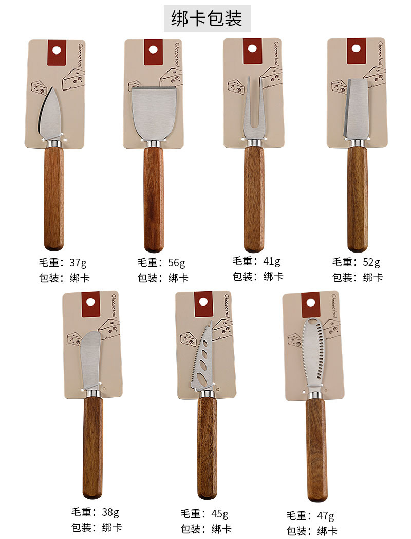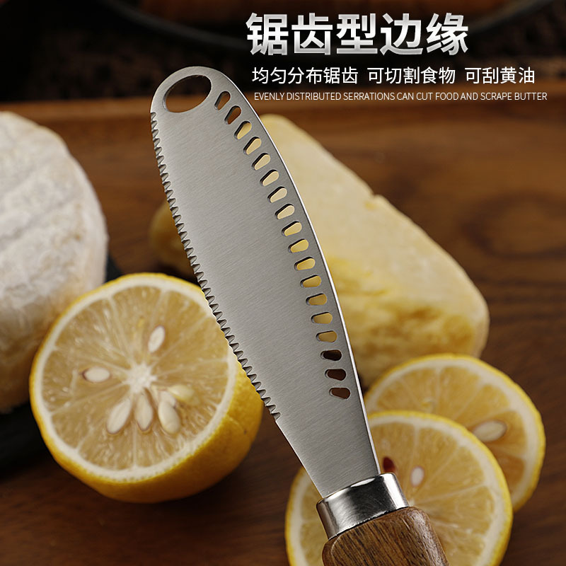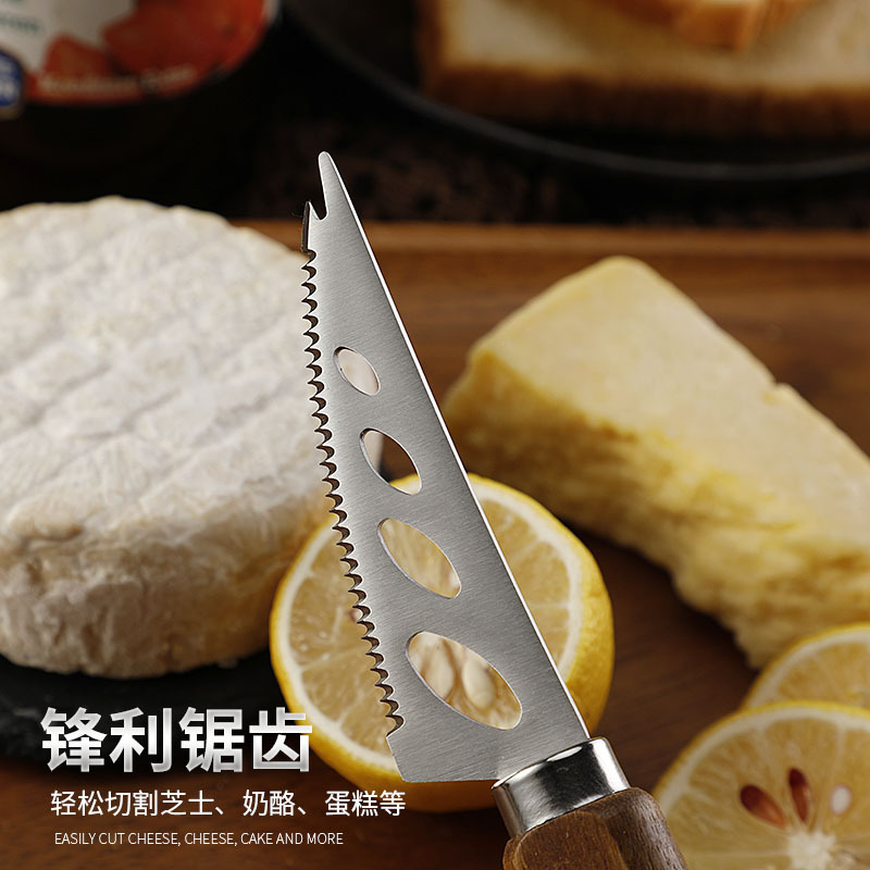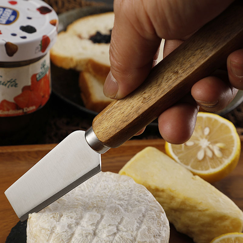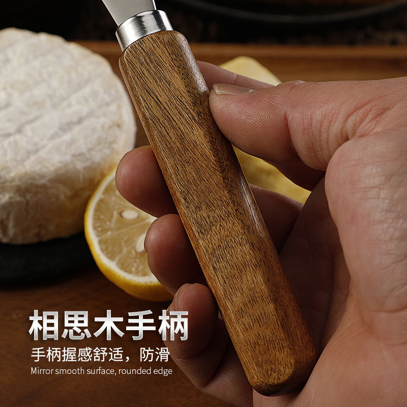 工厂现货沙光不锈钢奶酪刀叉相思木柄芝士刀黄油刮刀奶油涂抺刀