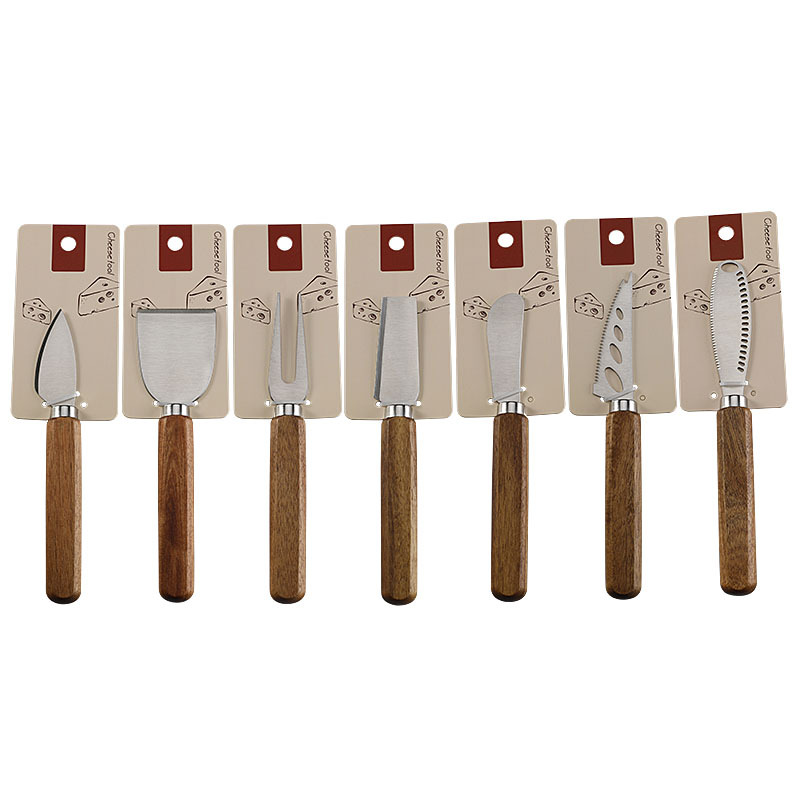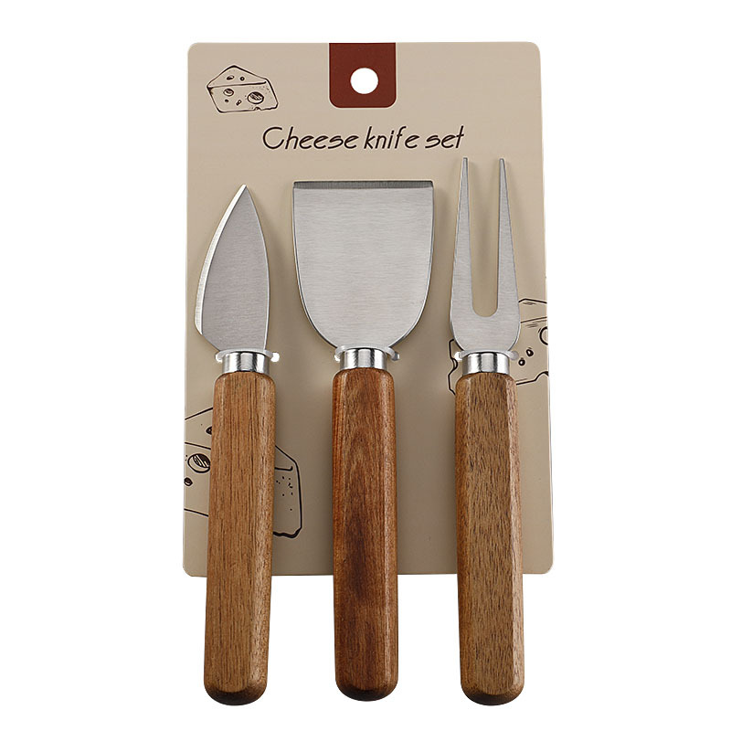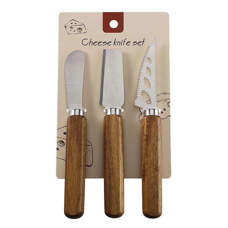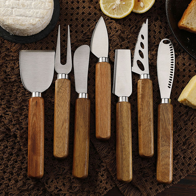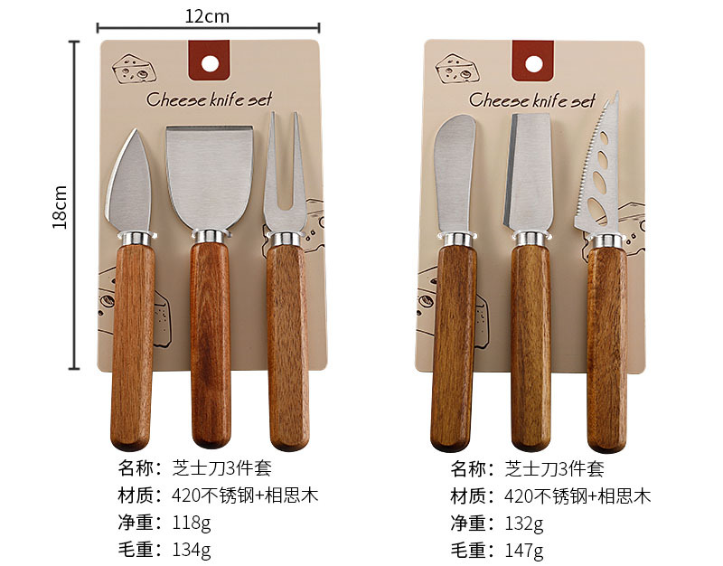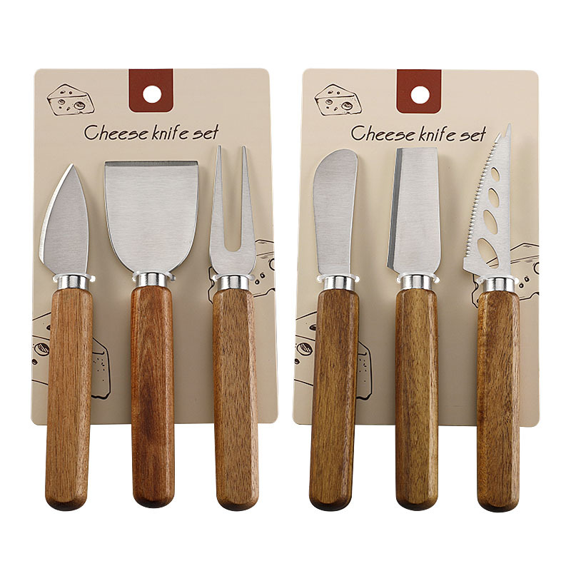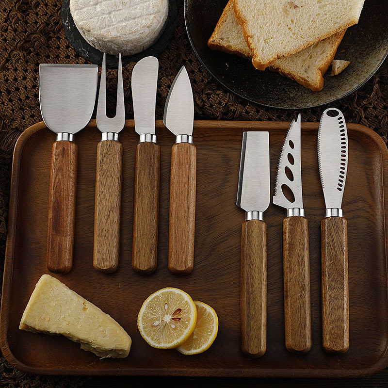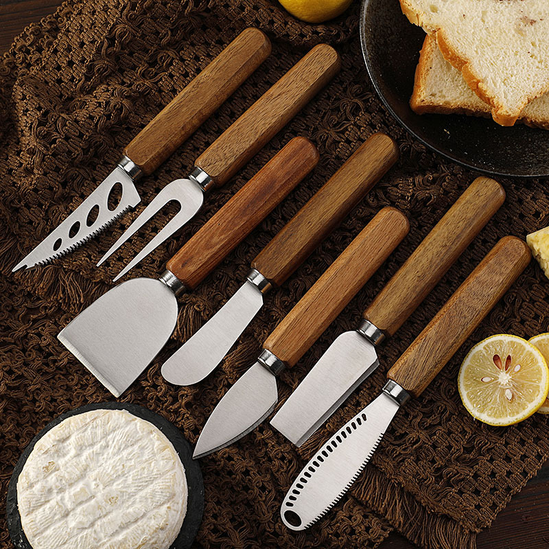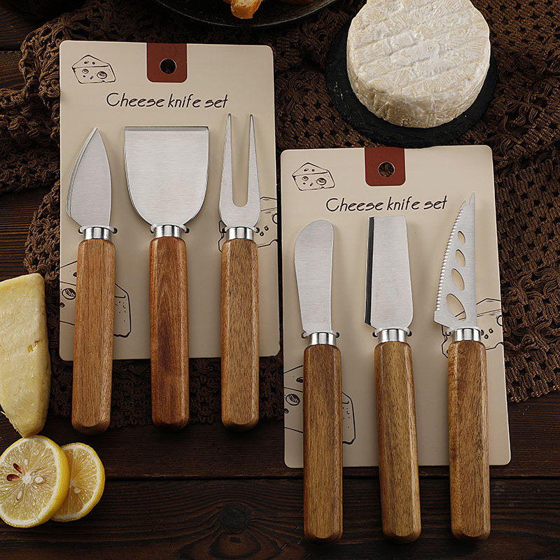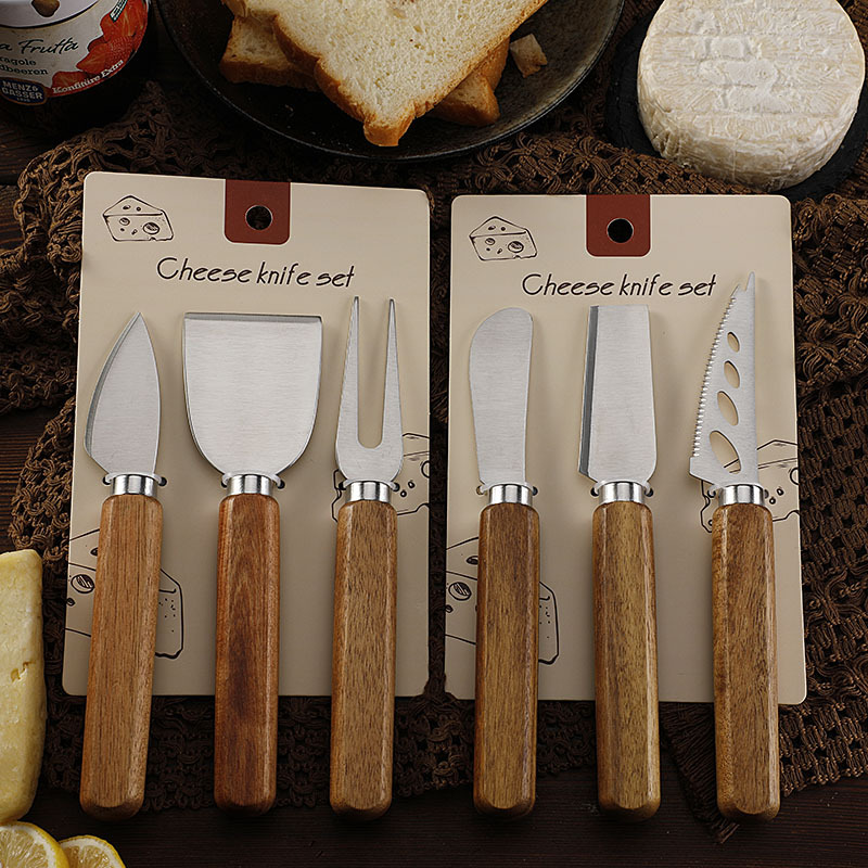工厂现货沙光不锈钢奶酪刀叉相思木柄芝士刀黄油刮刀奶油涂抺刀