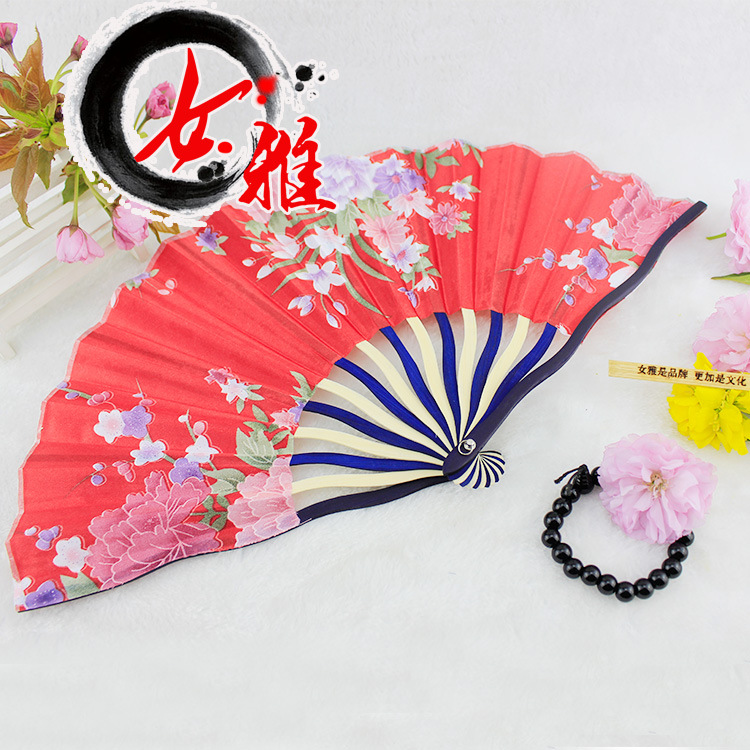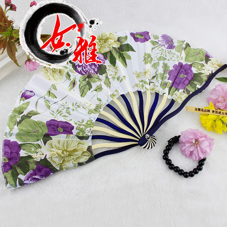 现货日式和风扇女式折扇绝美樱花色丁布扇舞蹈扇龙扇漫展黑色批发