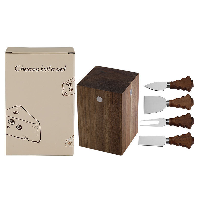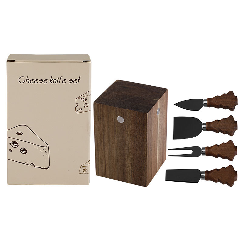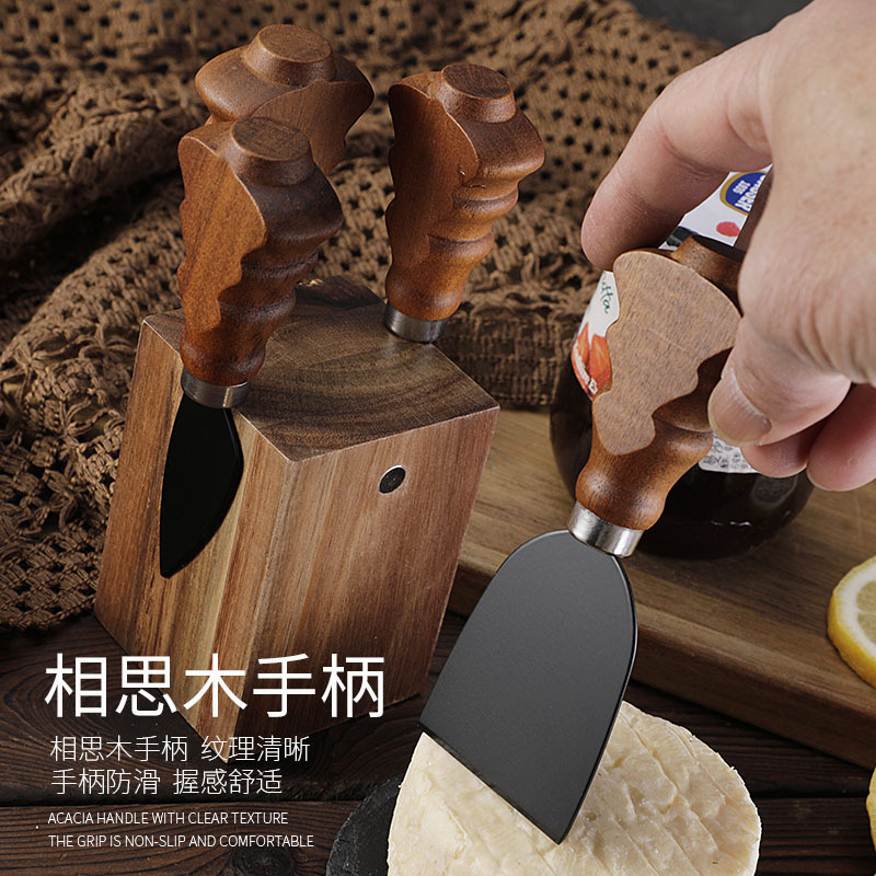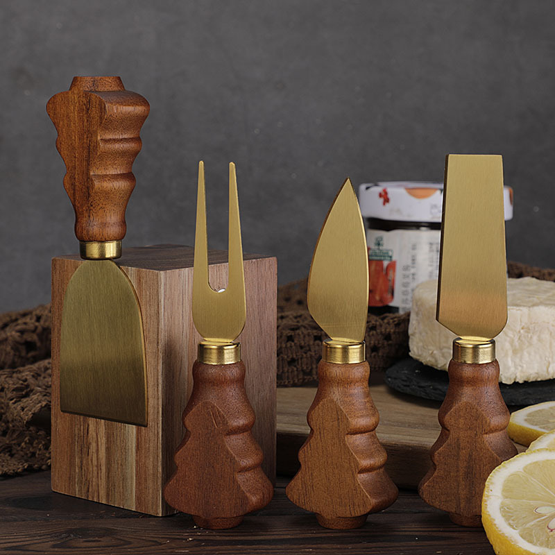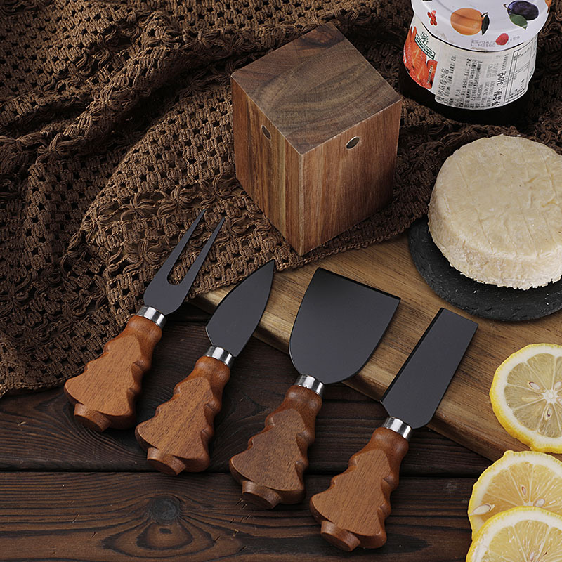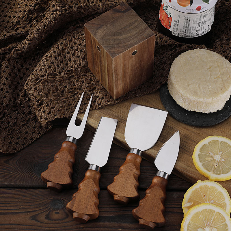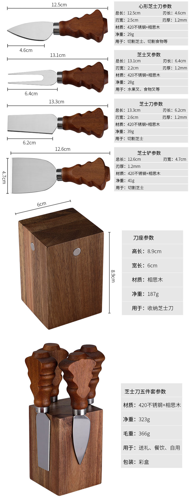 工厂现货相思木带磁吸刀座芝士刀五件套圣诞树奶酪芝士刀黄油刀