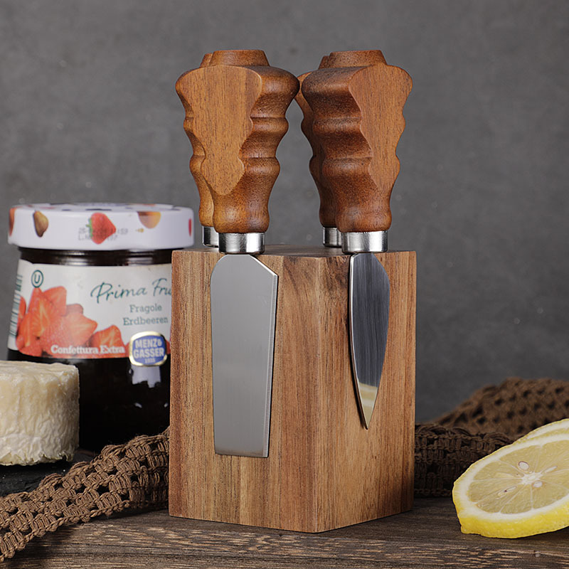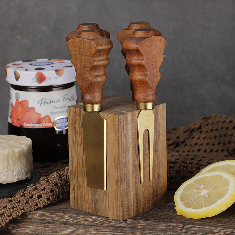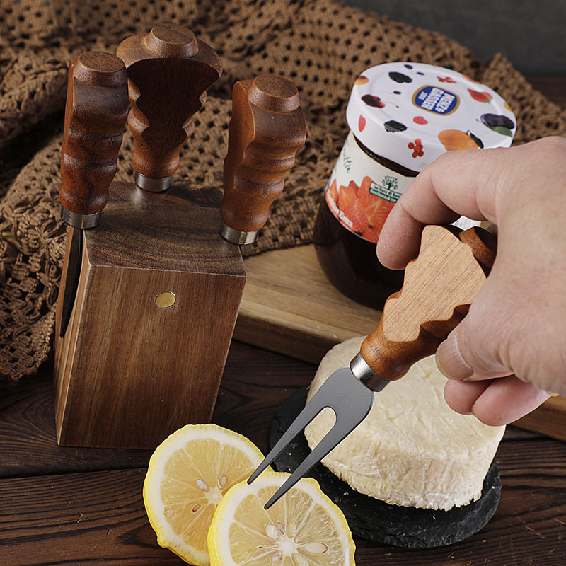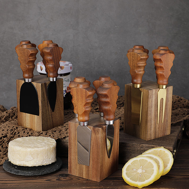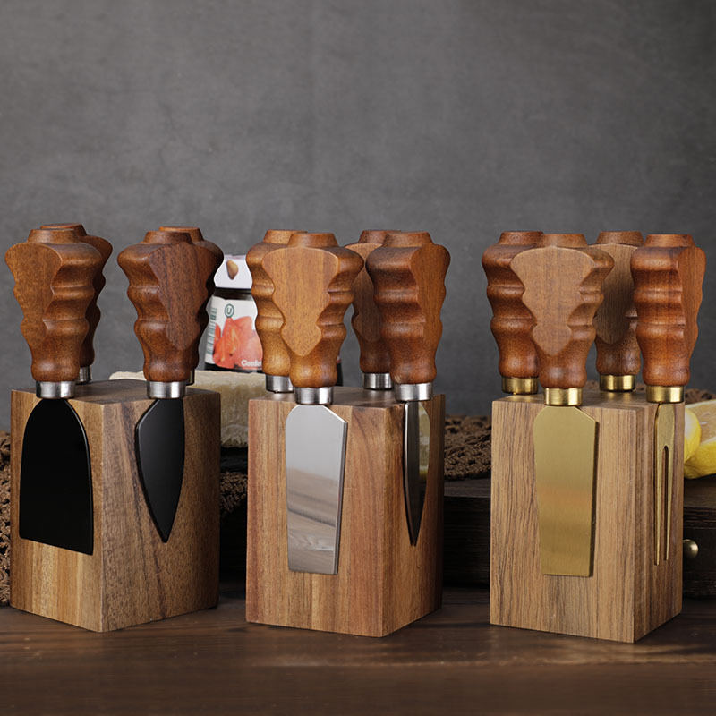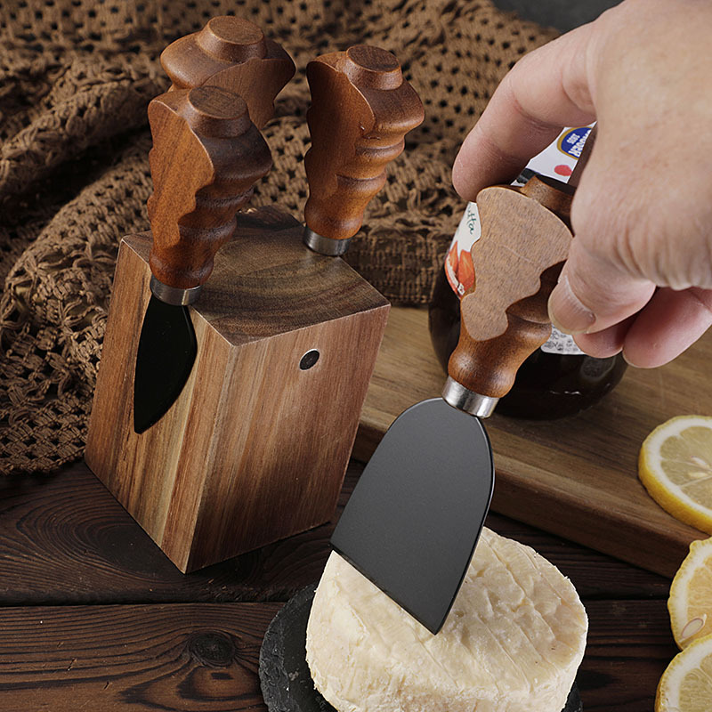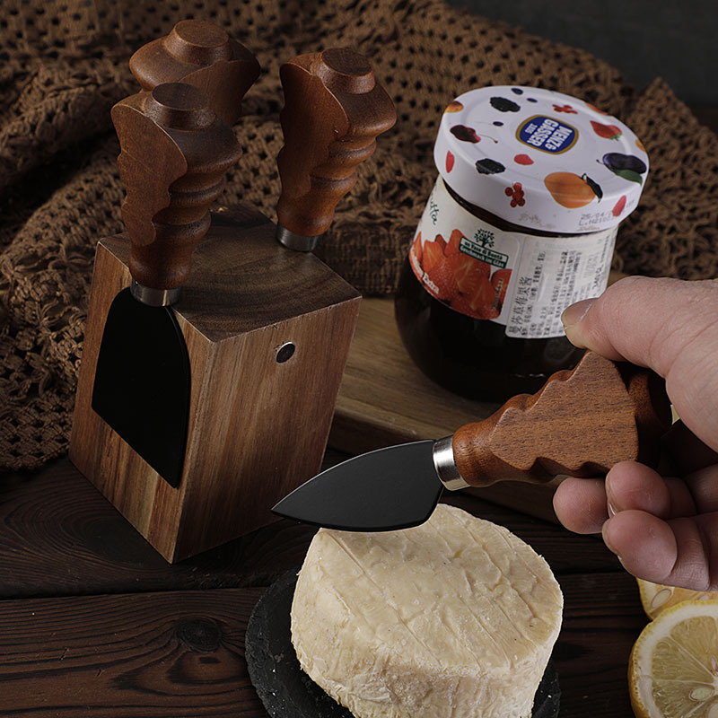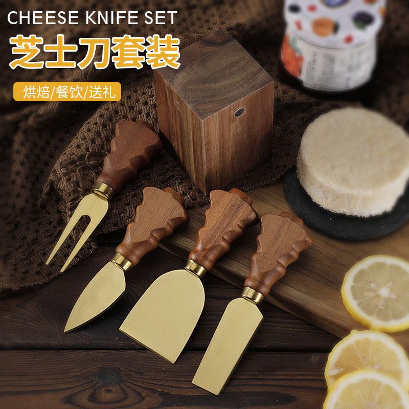 工厂现货相思木带磁吸刀座芝士刀五件套圣诞树奶酪芝士刀黄油刀