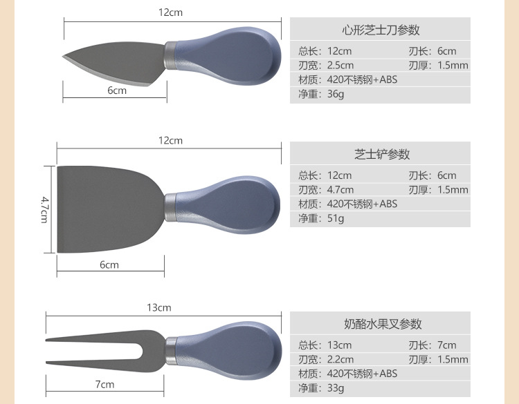 新款芝士工具奶酪奶油刀套装ABS柄西餐刀叉礼盒不锈钢芝士刀