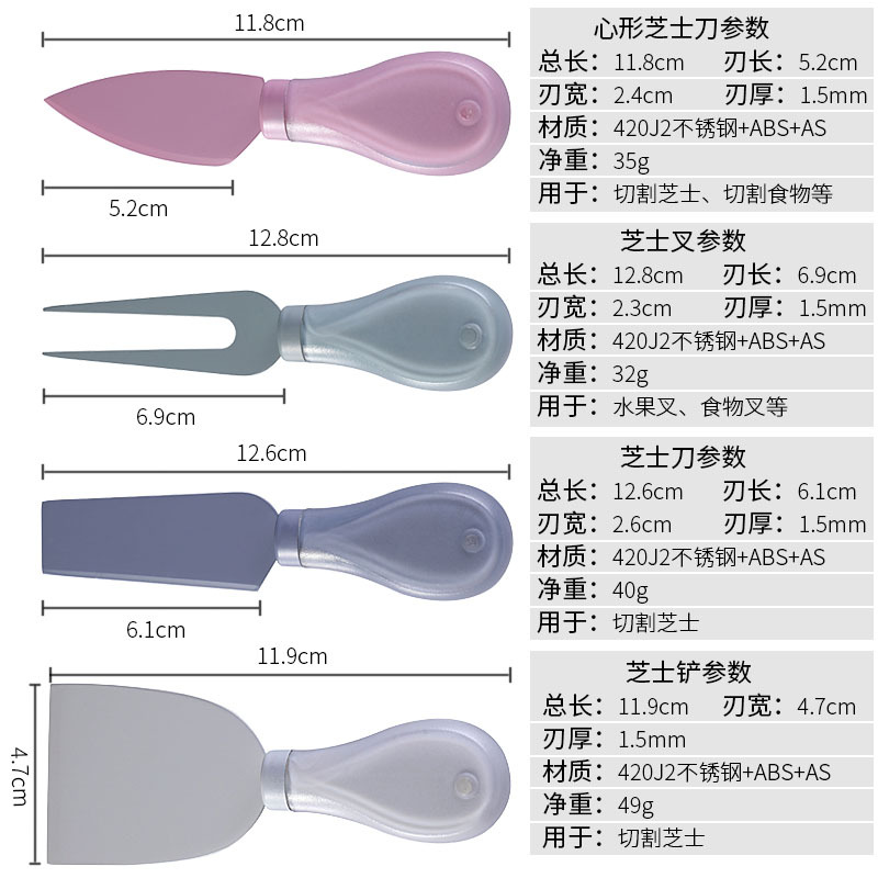 跨境4件套芝士刀奶油套装新款混色奶酪不锈钢工具刀叉蛋糕