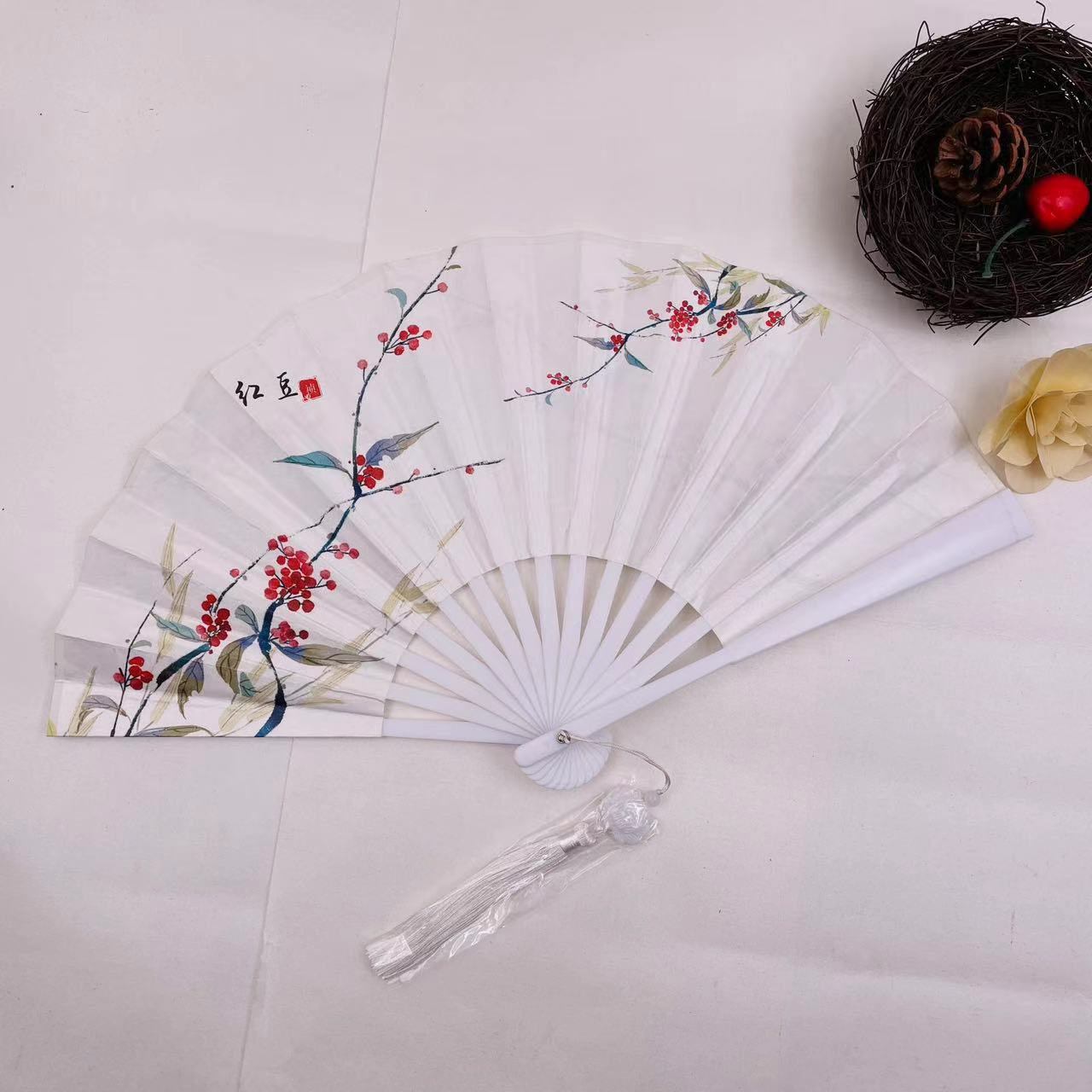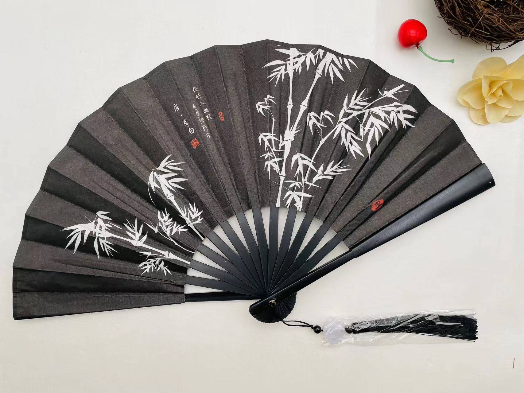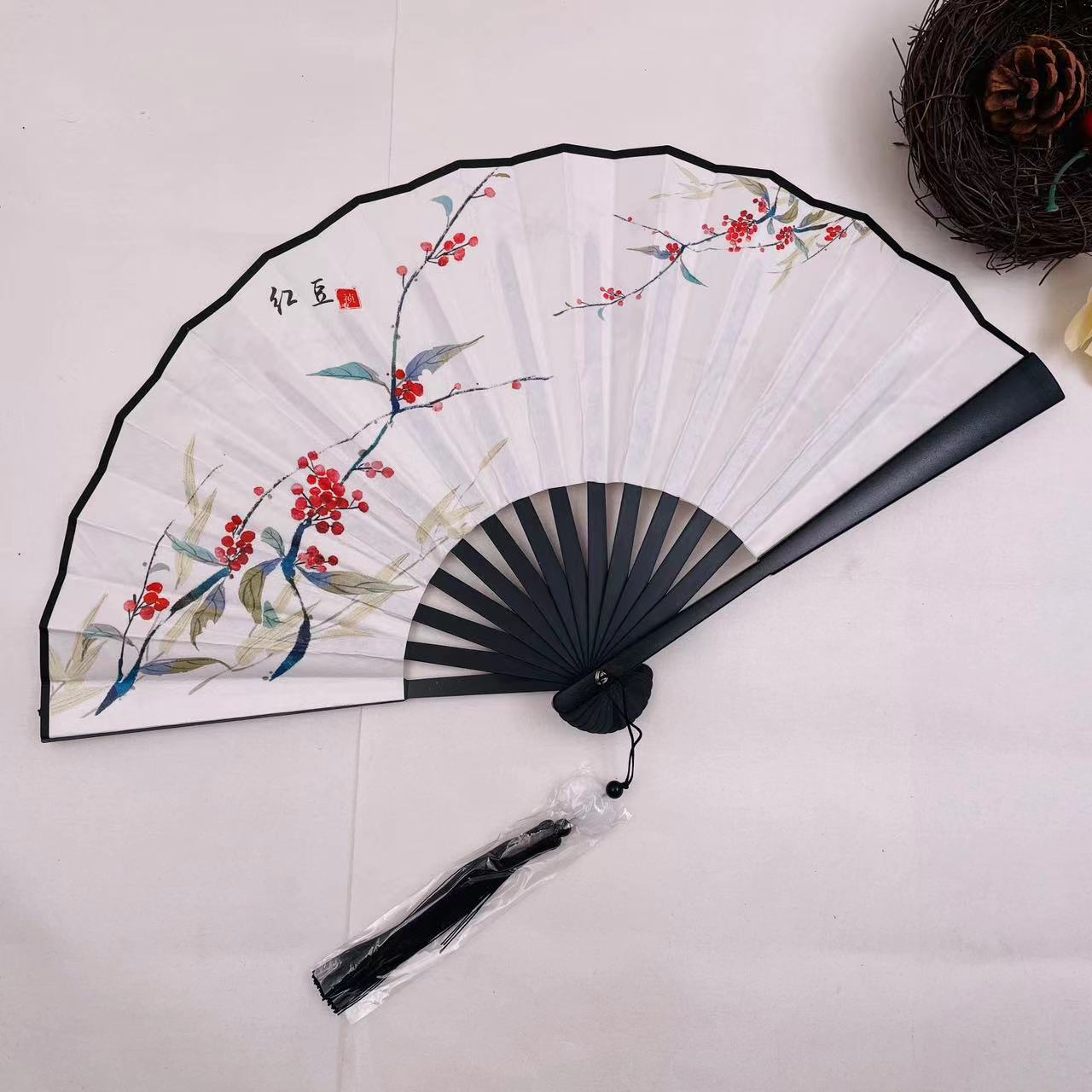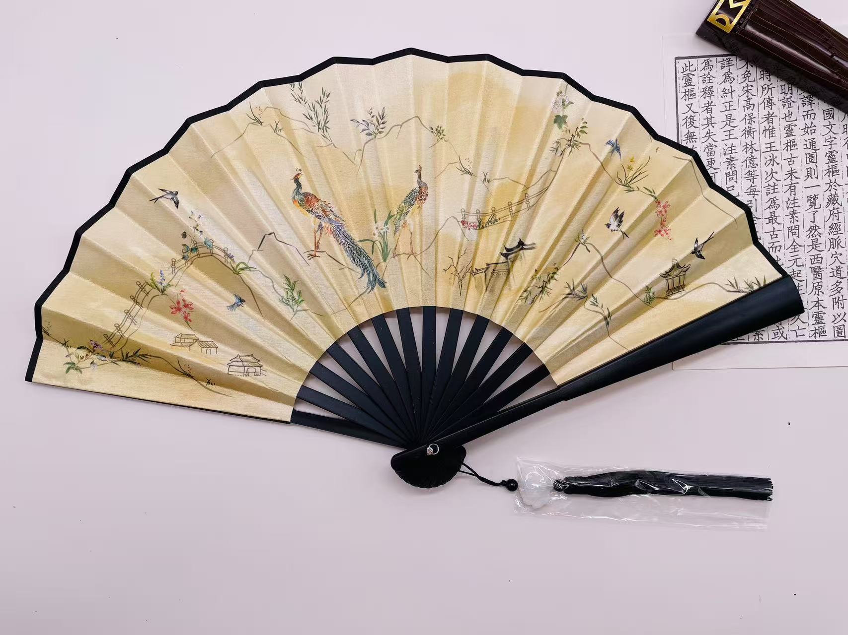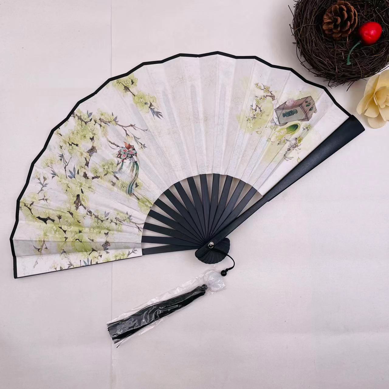 8寸国潮扇国风款中国风扇子双面绢布男扇流苏水墨画扇子古风折扇