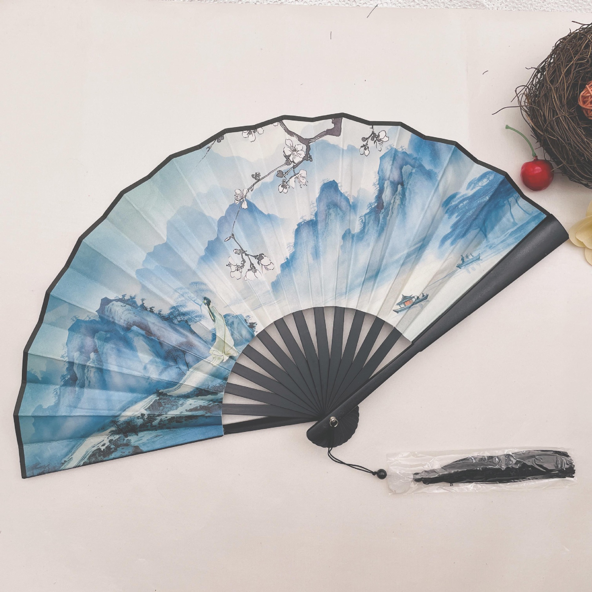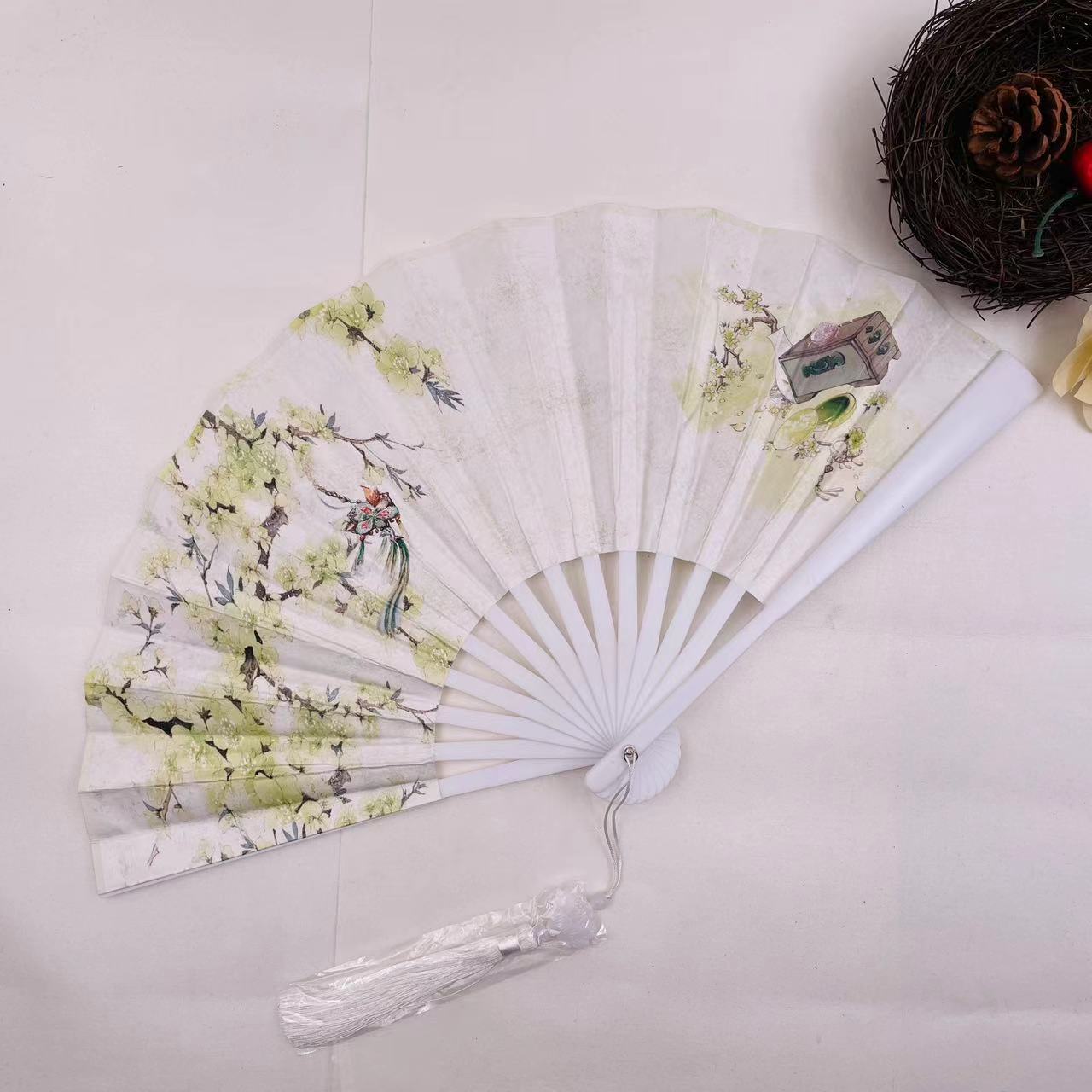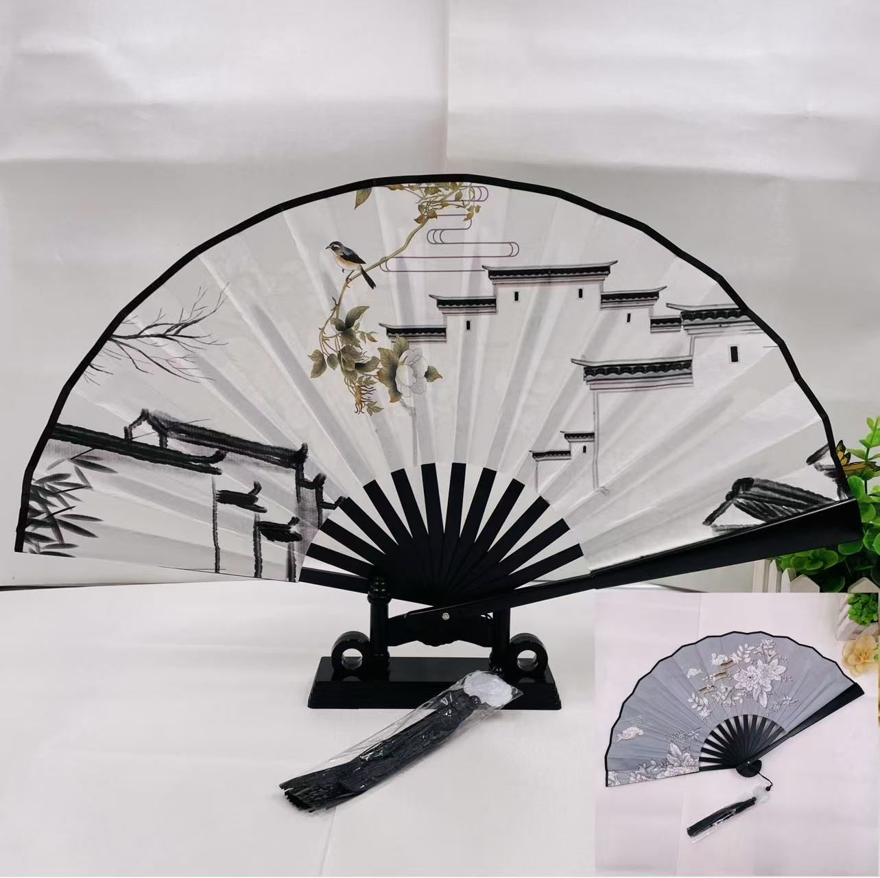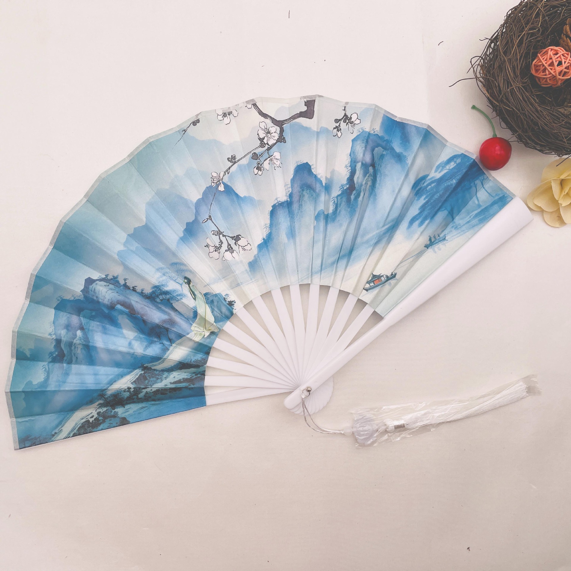 8寸国潮扇国风款中国风扇子双面绢布男扇流苏水墨画扇子古风折扇