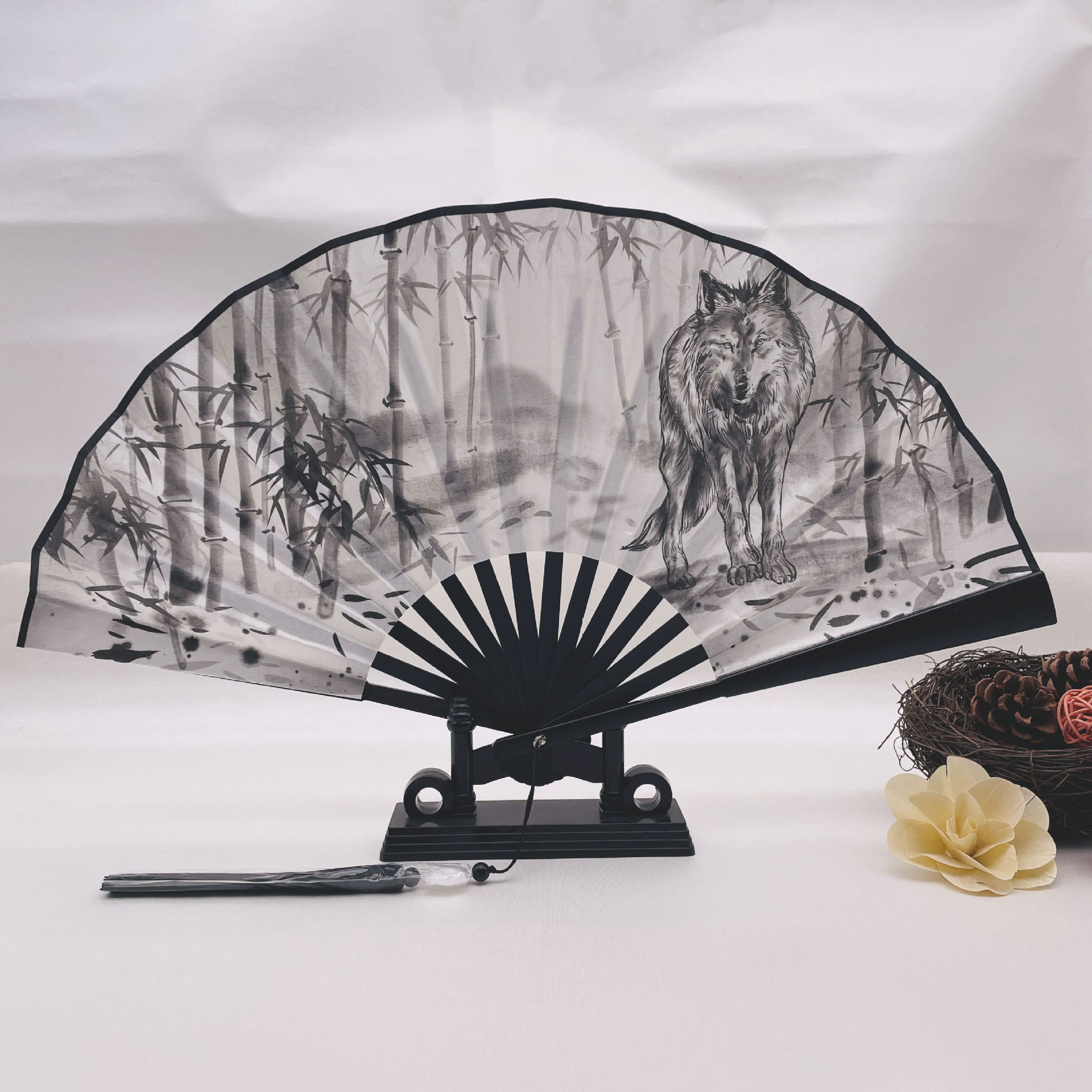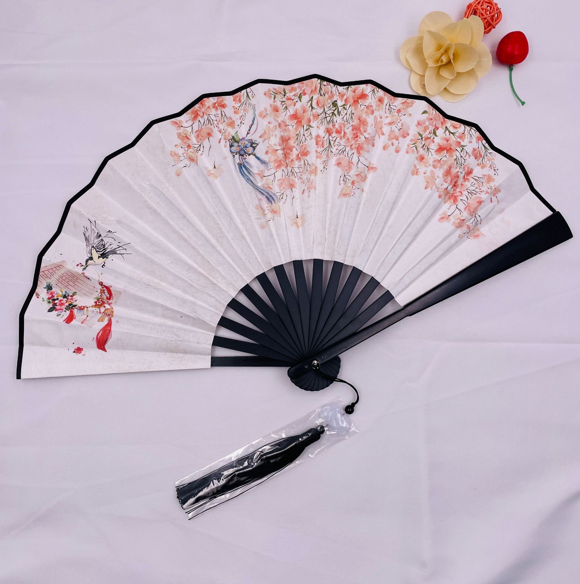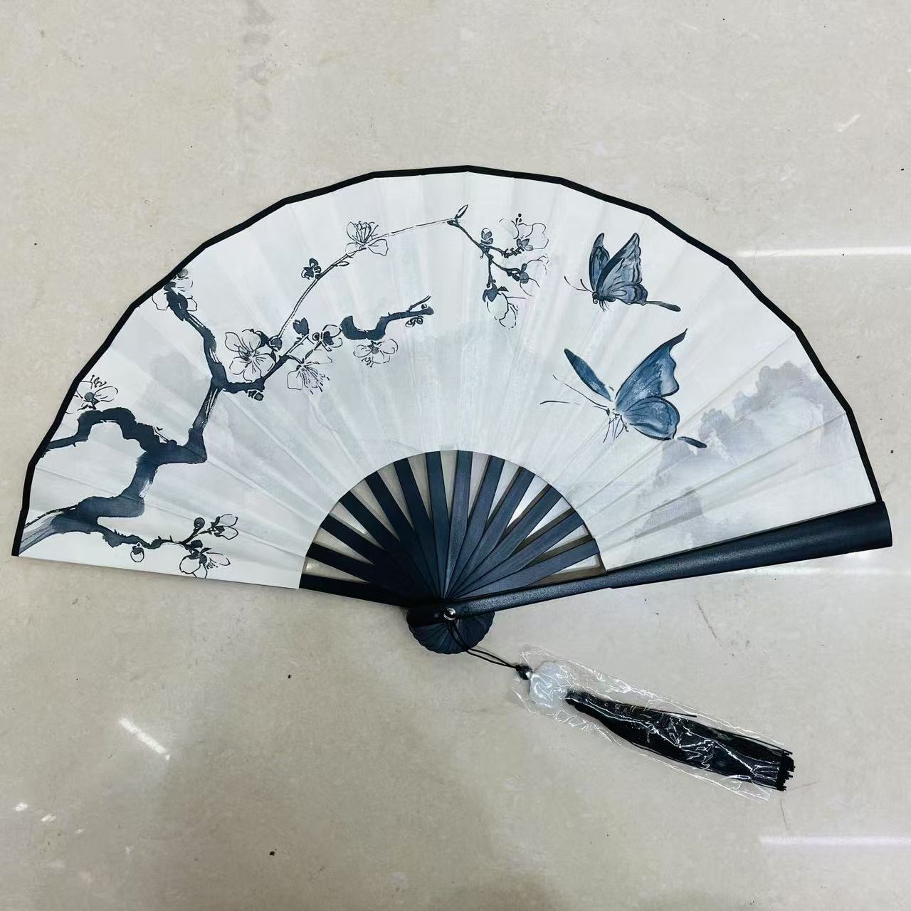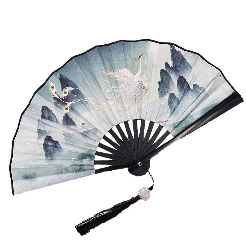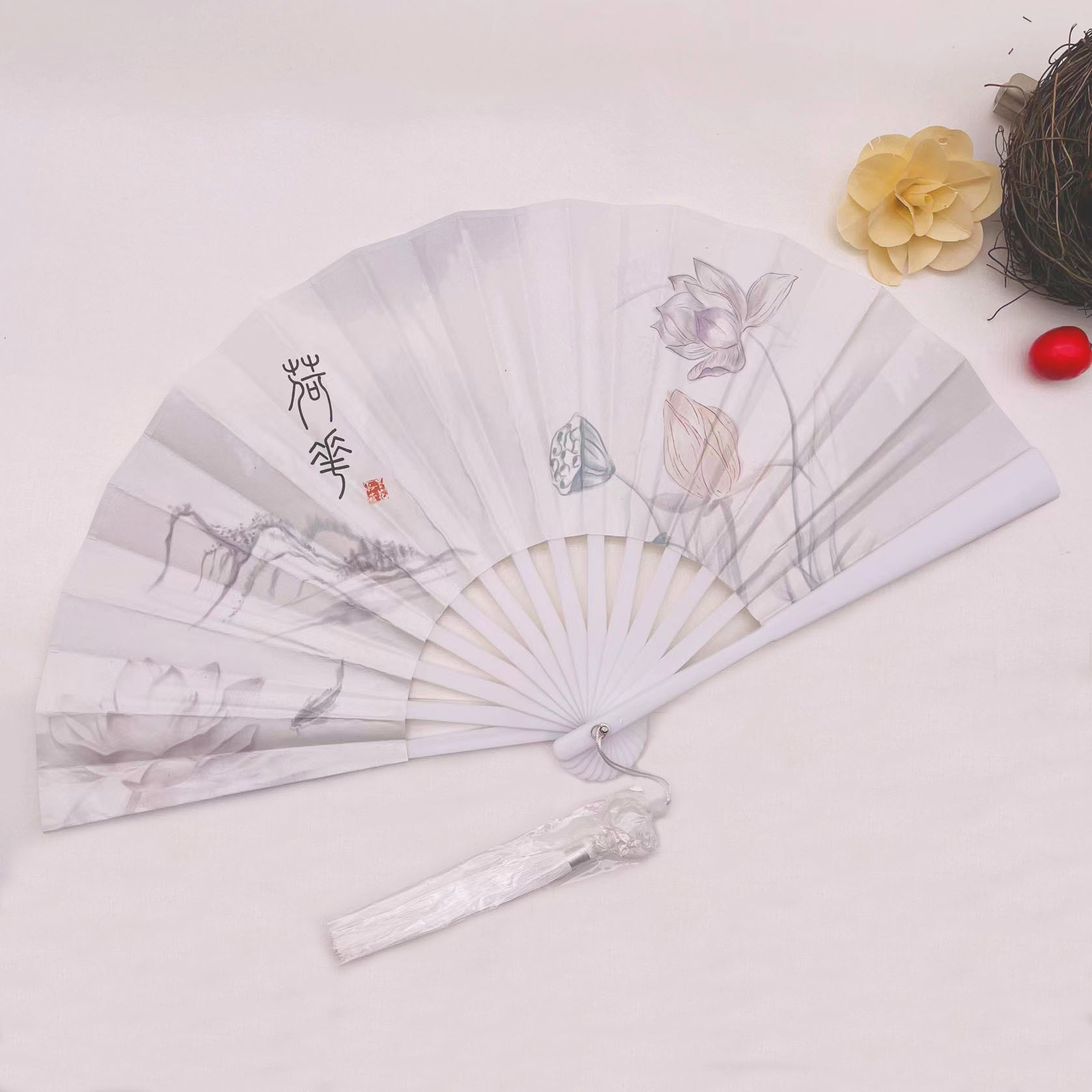 8寸国潮扇国风款中国风扇子双面绢布男扇流苏水墨画扇子古风折扇