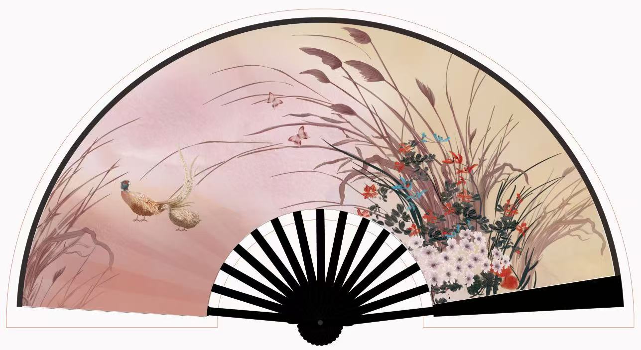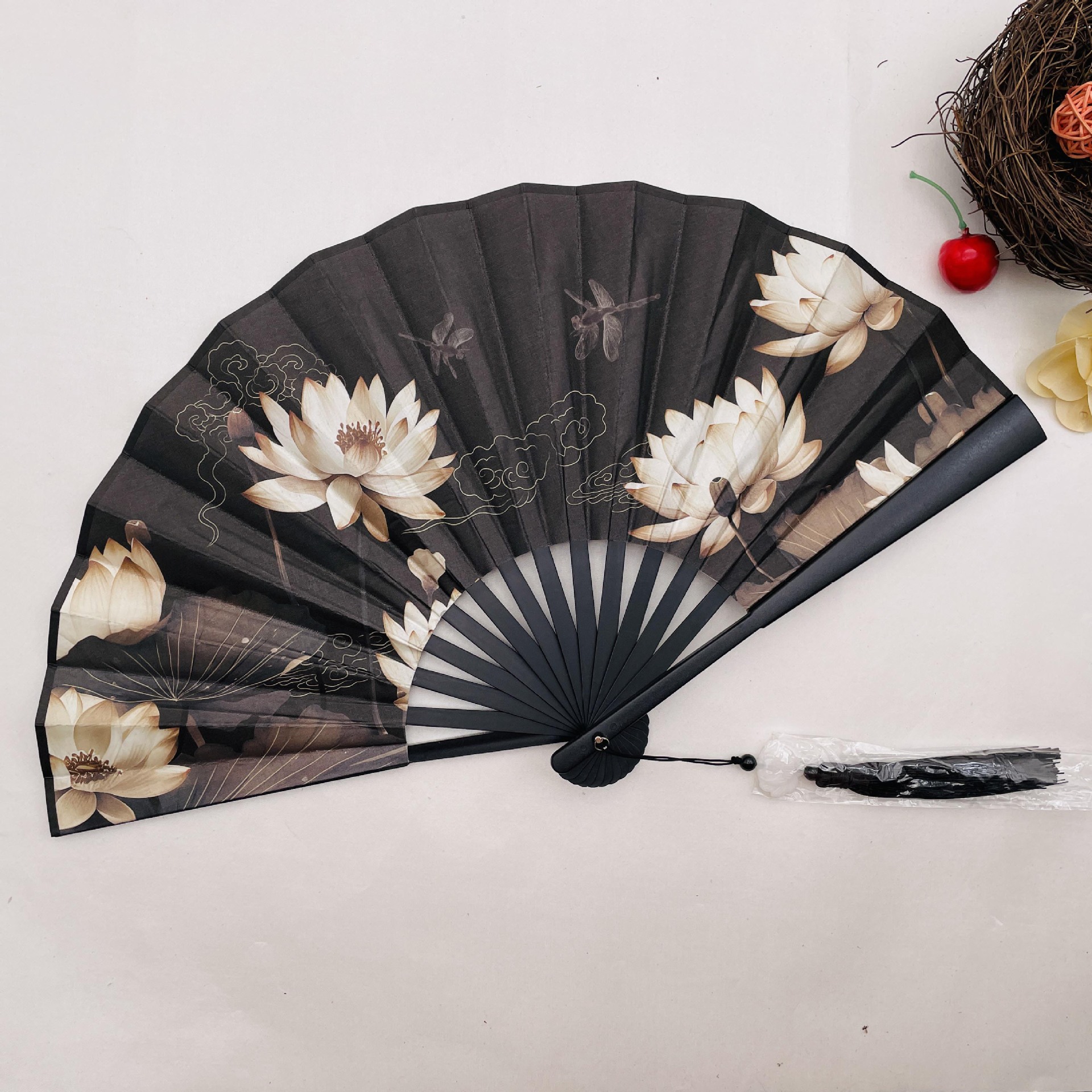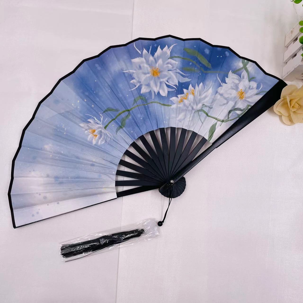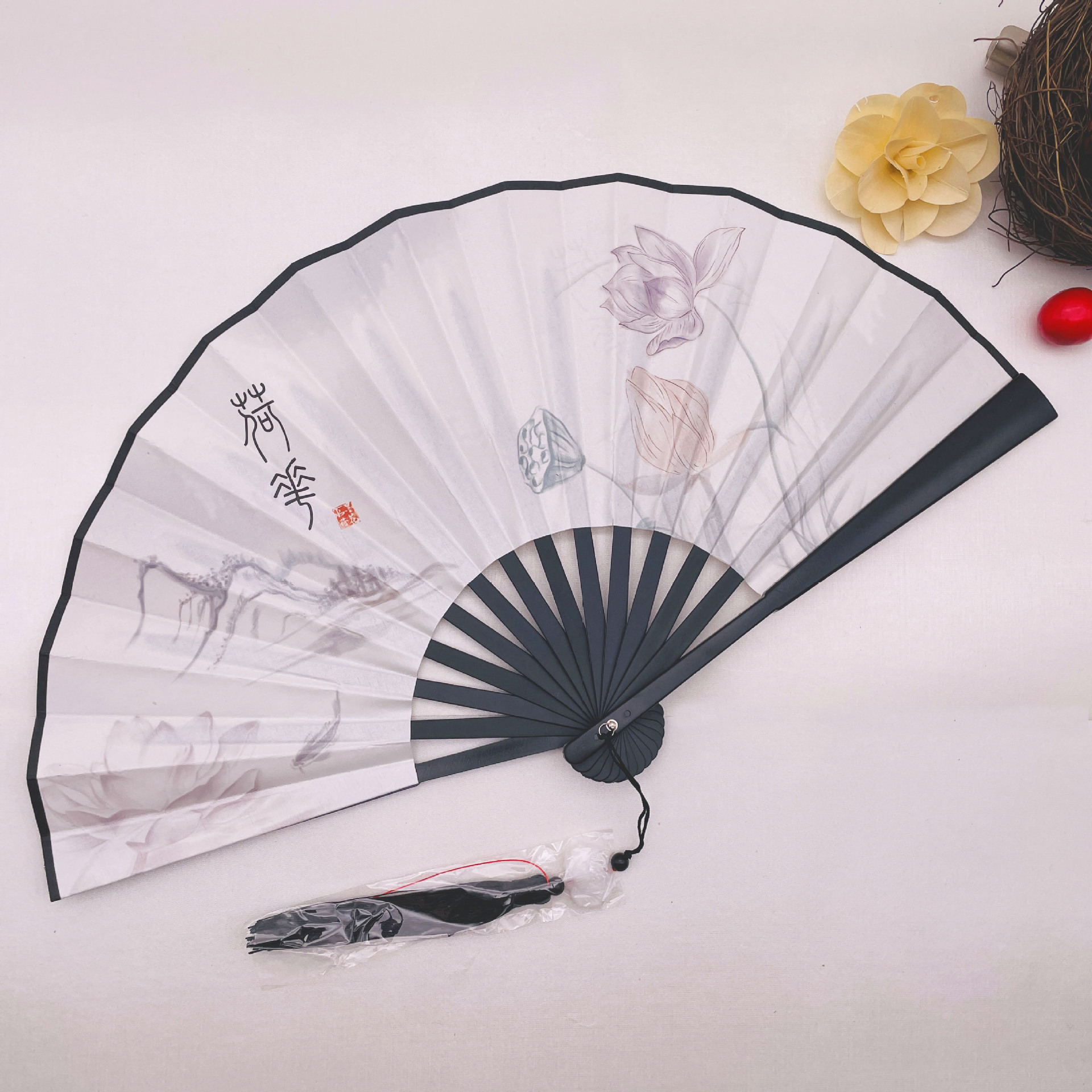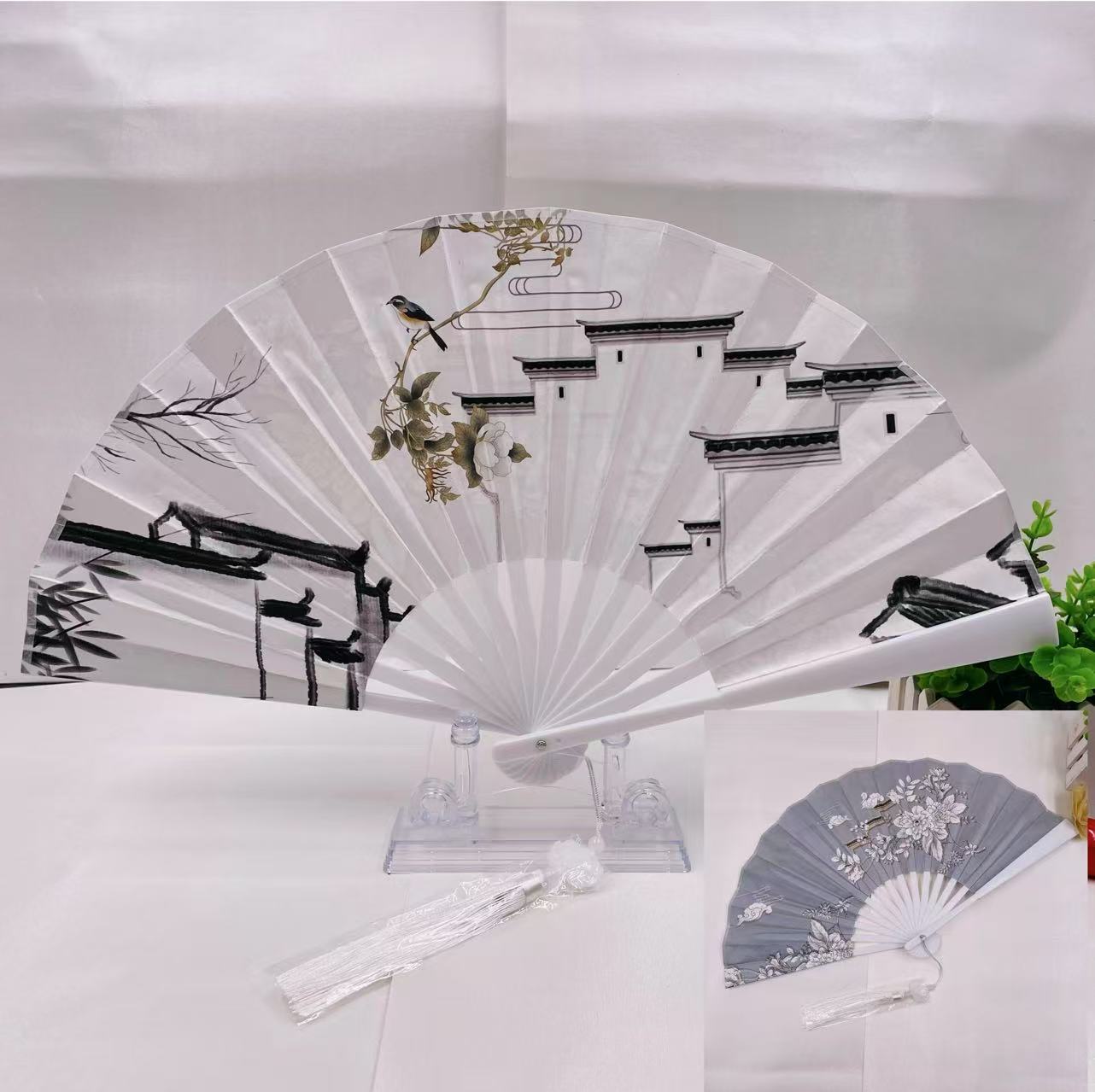 8寸国潮扇国风款中国风扇子双面绢布男扇流苏水墨画扇子古风折扇