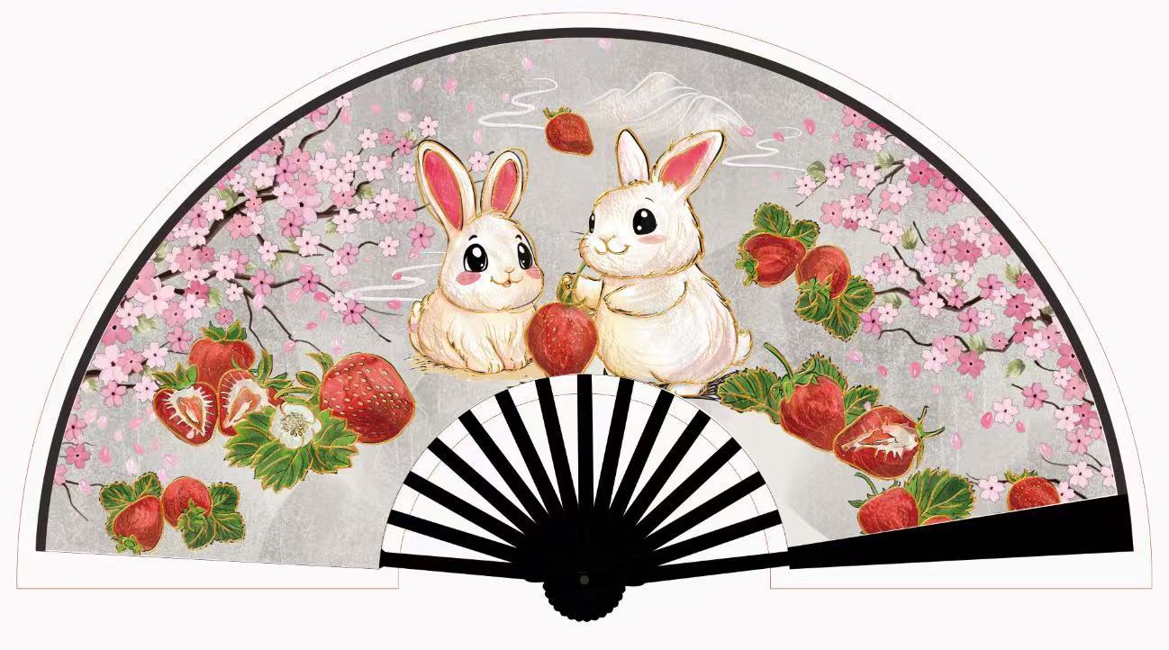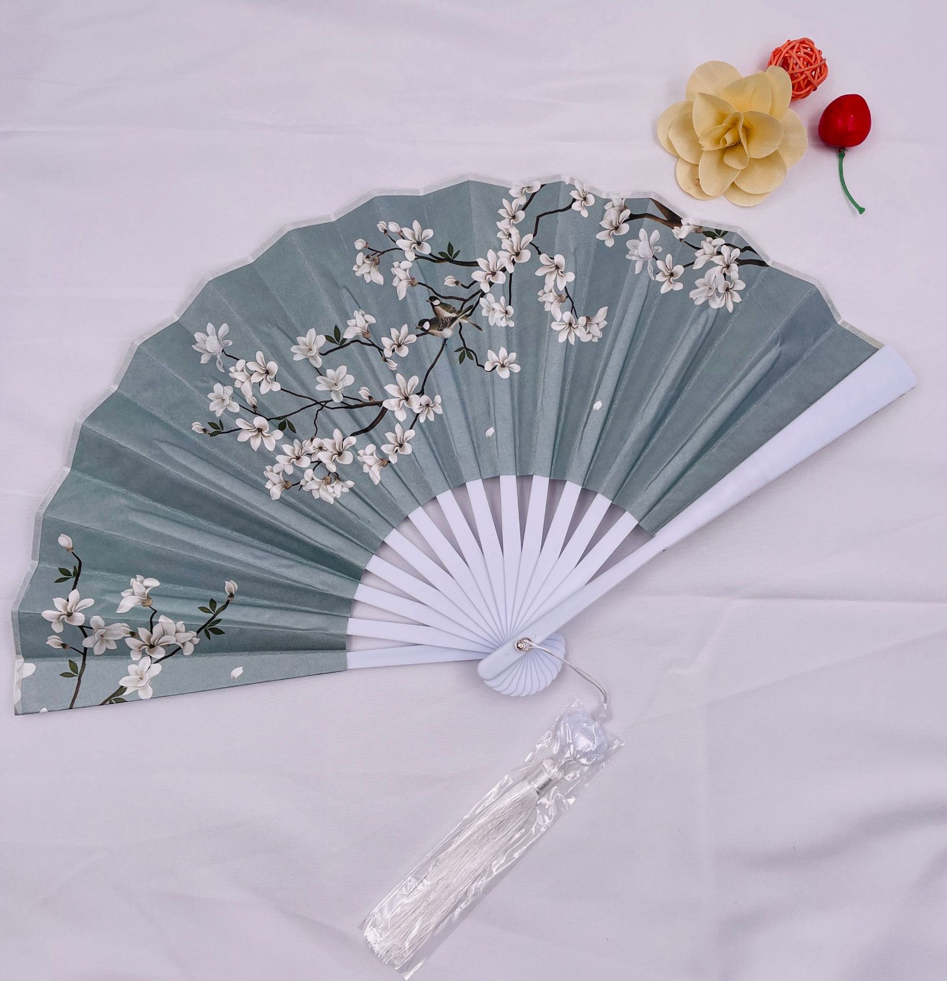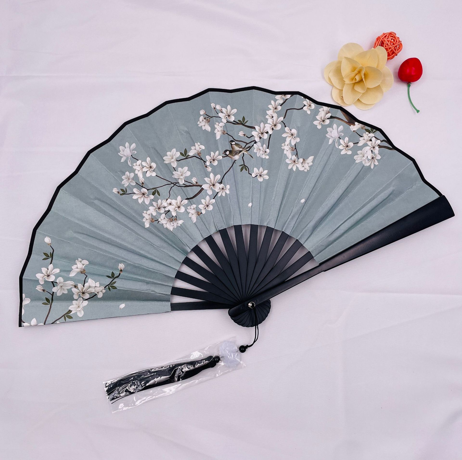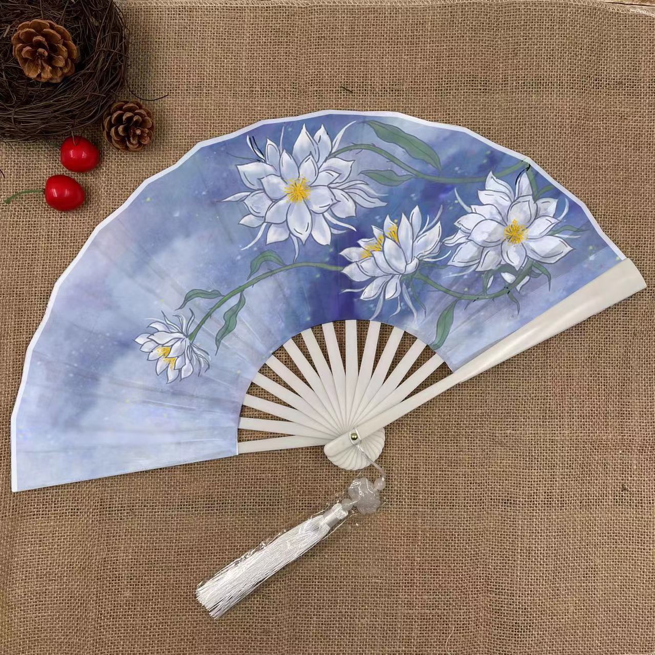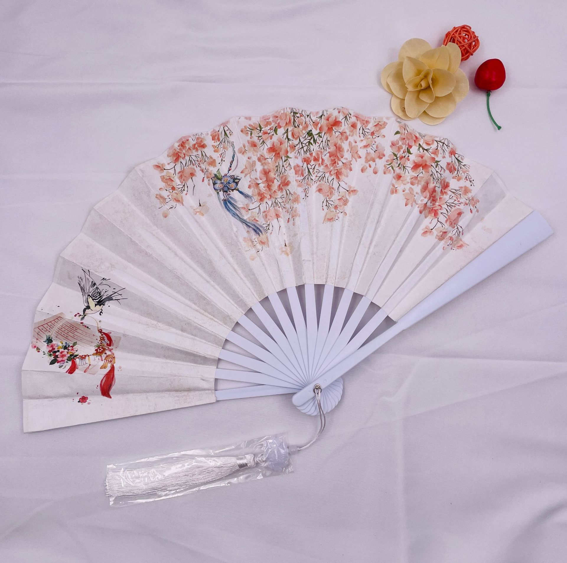8寸国潮扇国风款中国风扇子双面绢布男扇流苏水墨画扇子古风折扇