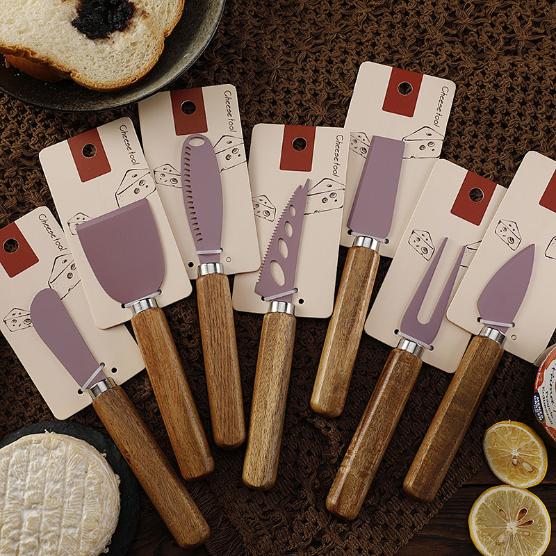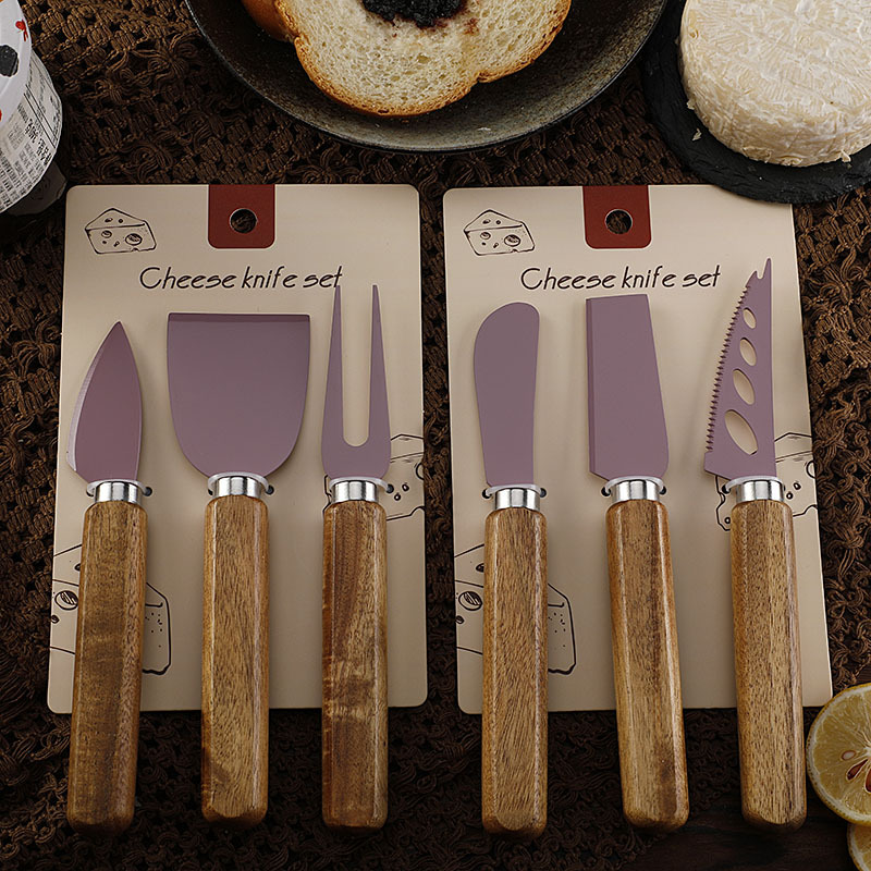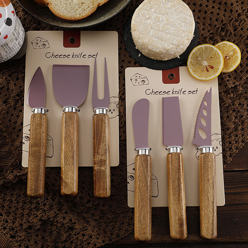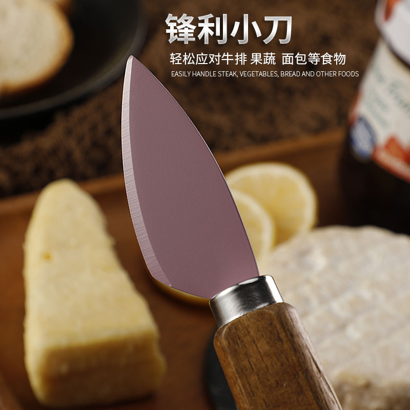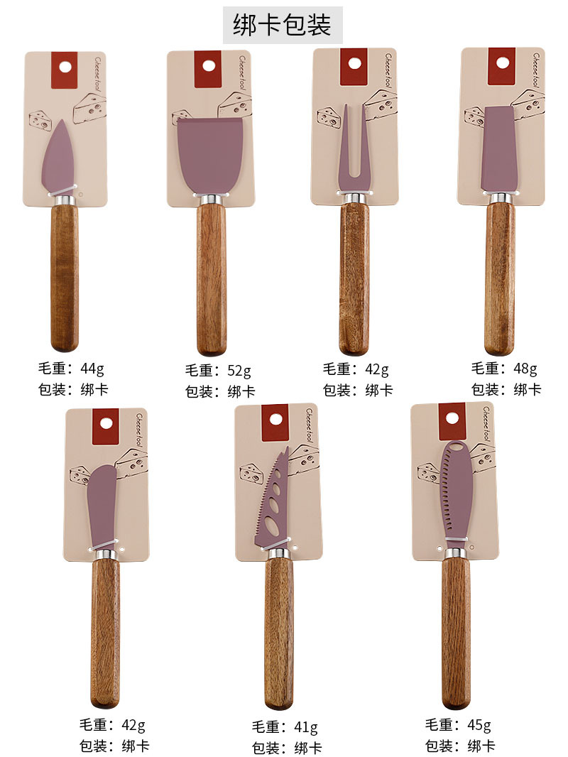 工厂现货绑卡不锈钢芝士刀黄油刮刀套装相思木柄奶酪刀具西餐刀叉