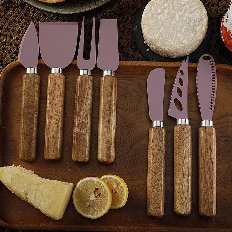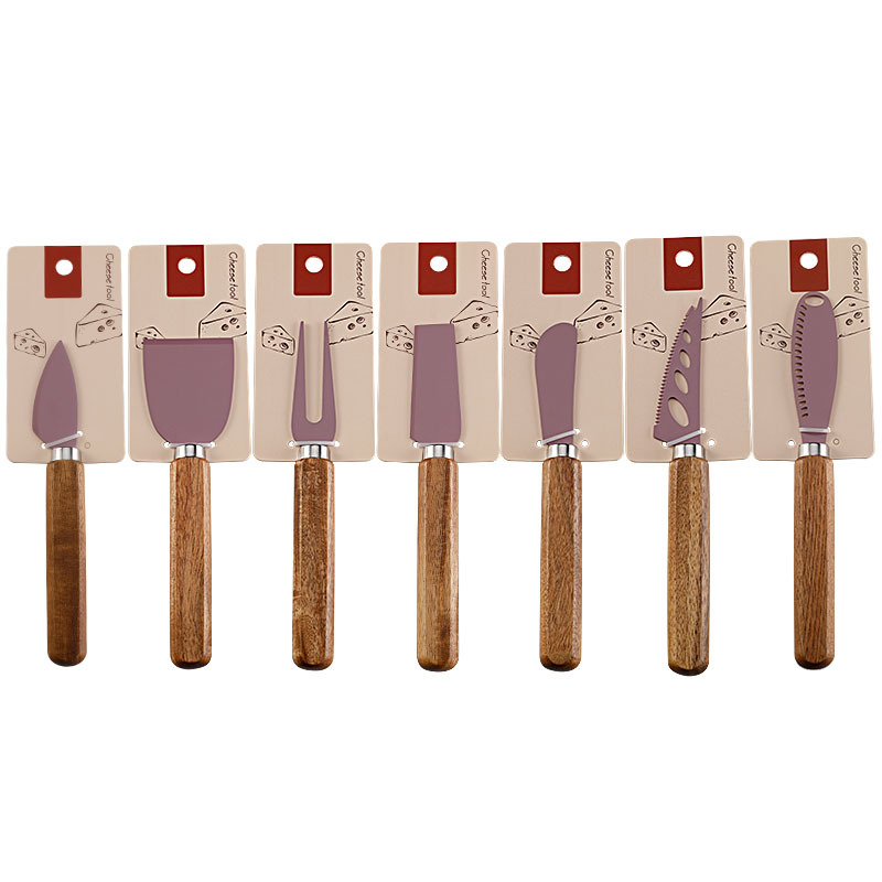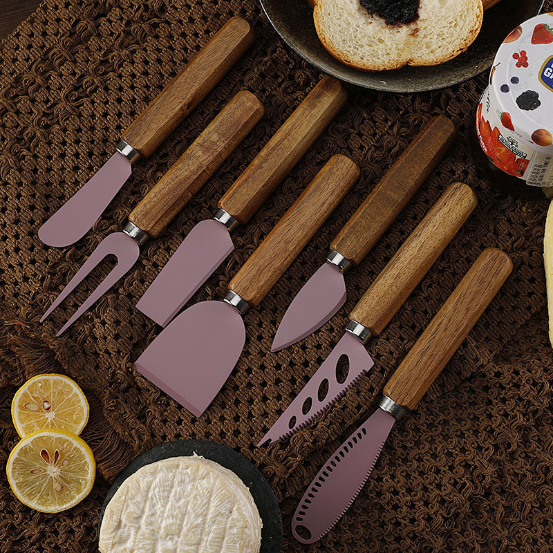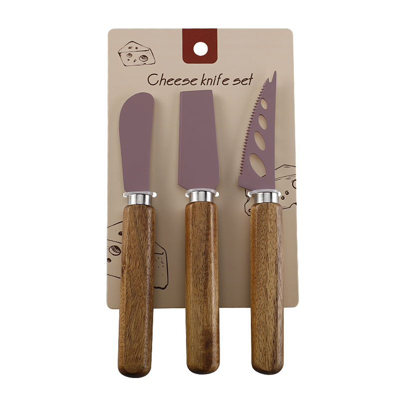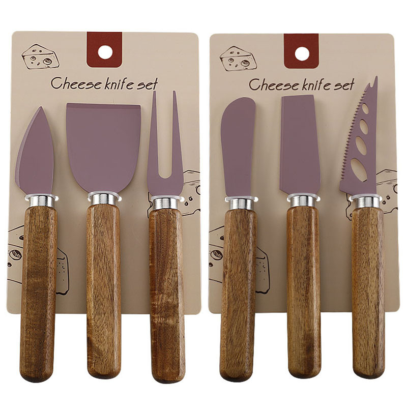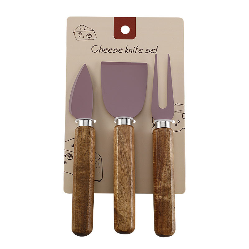 工厂现货绑卡不锈钢芝士刀黄油刮刀套装相思木柄奶酪刀具西餐刀叉