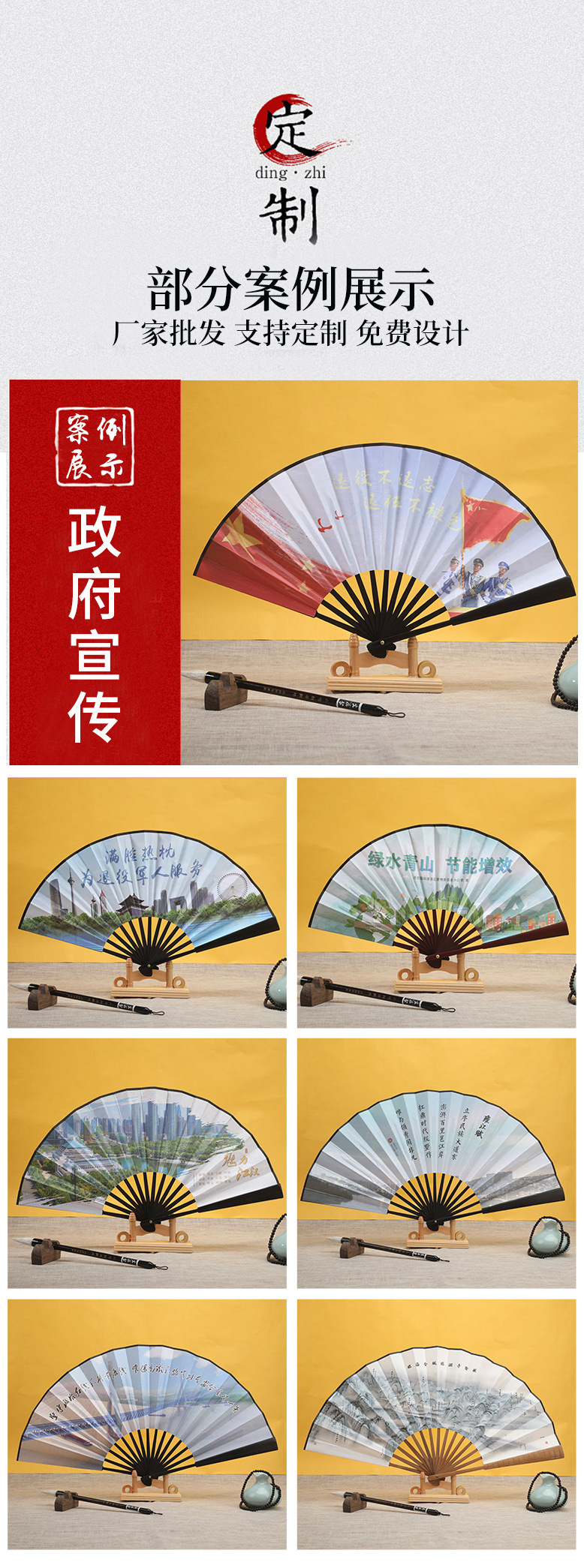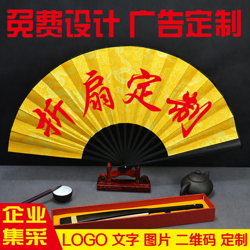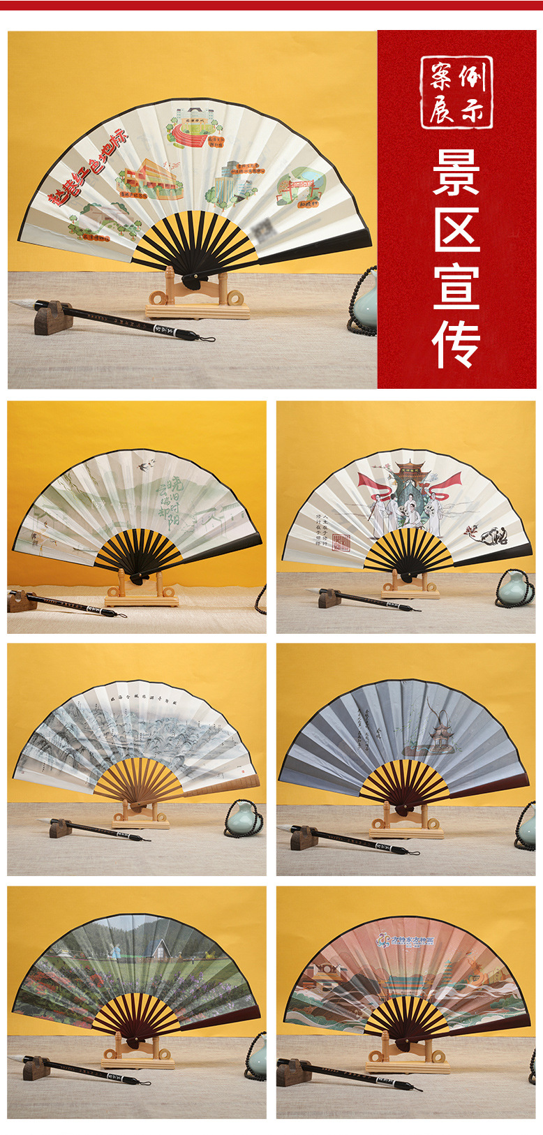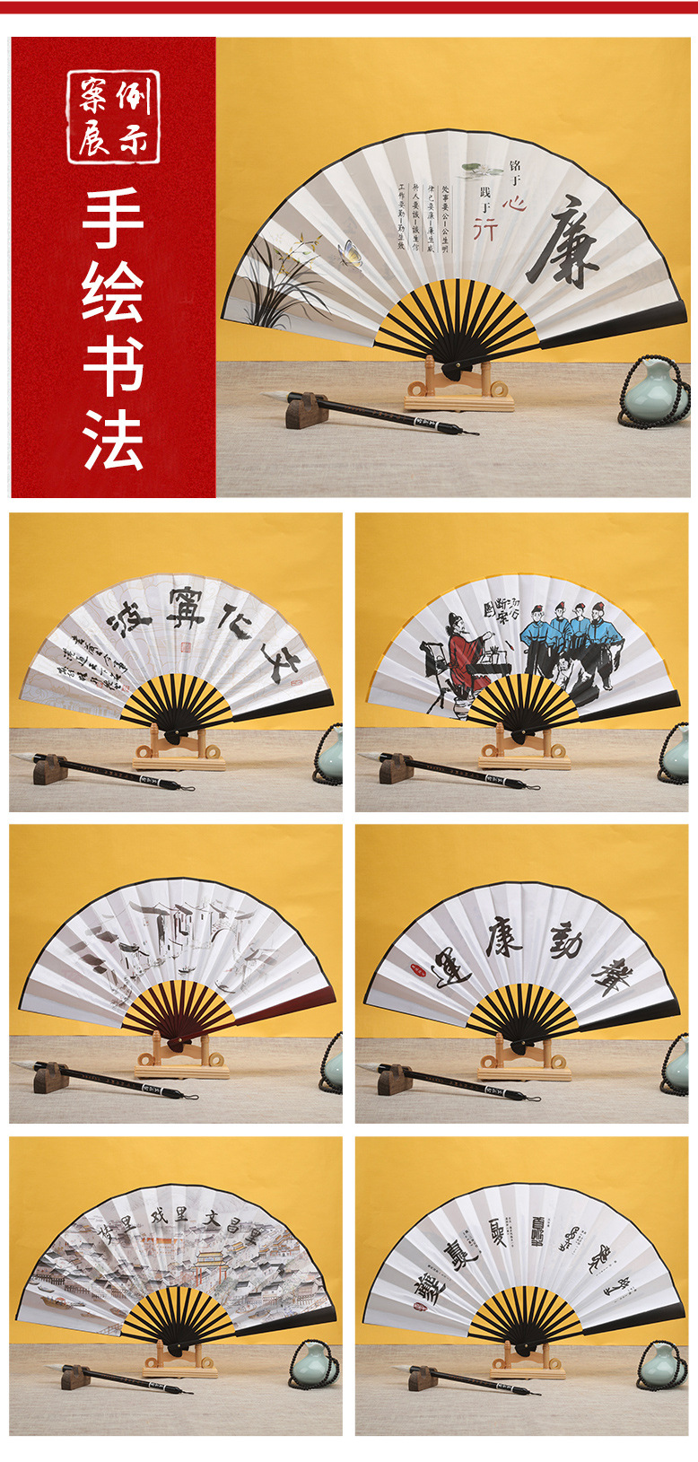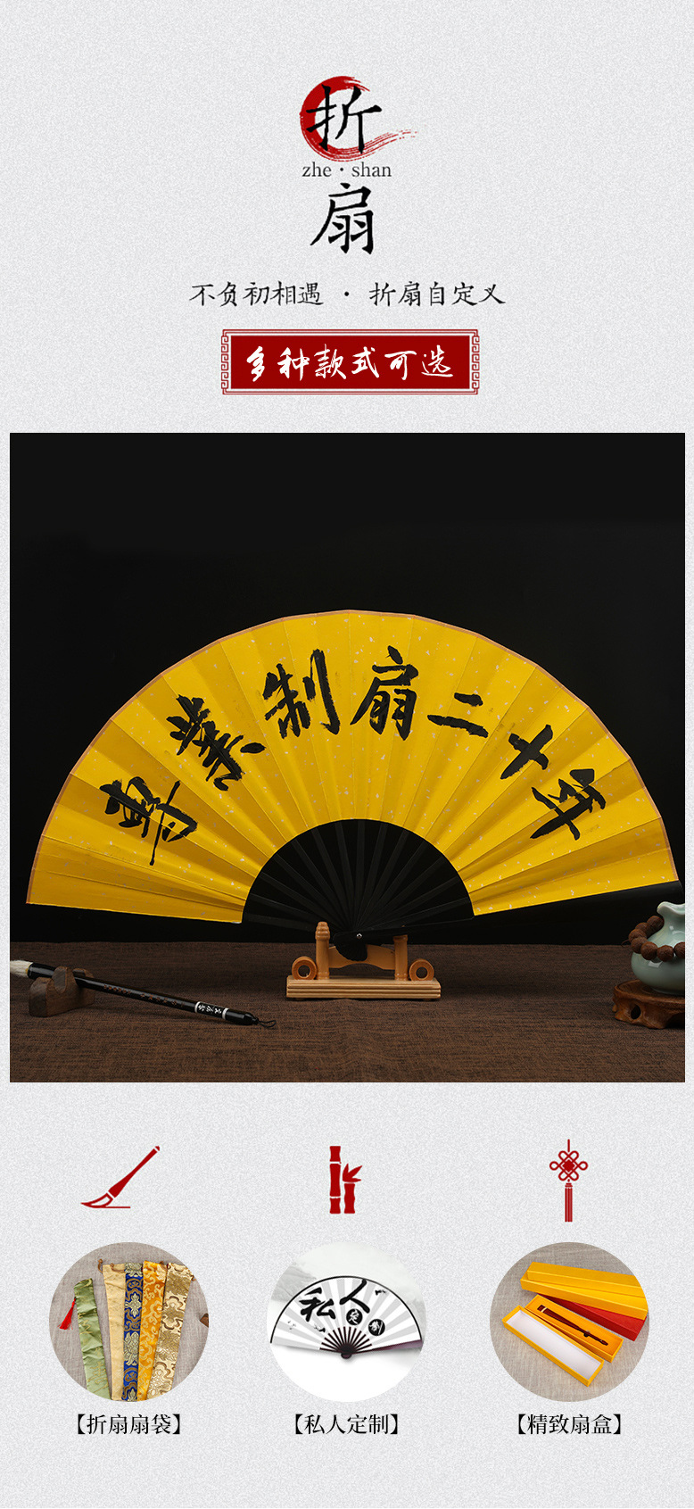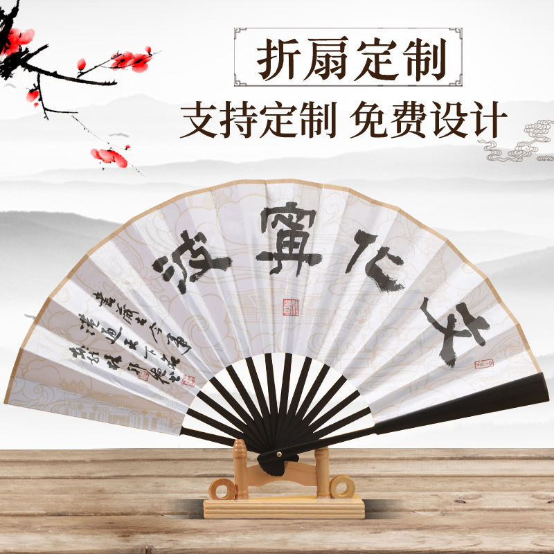 国潮复古折扇定做竹质宣纸折扇题字印刷广告写意婚扇绢布扇子定制