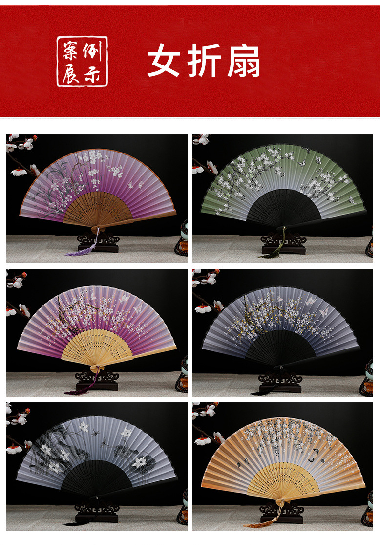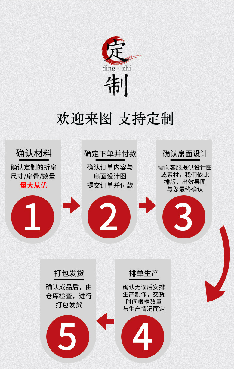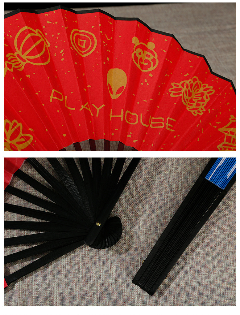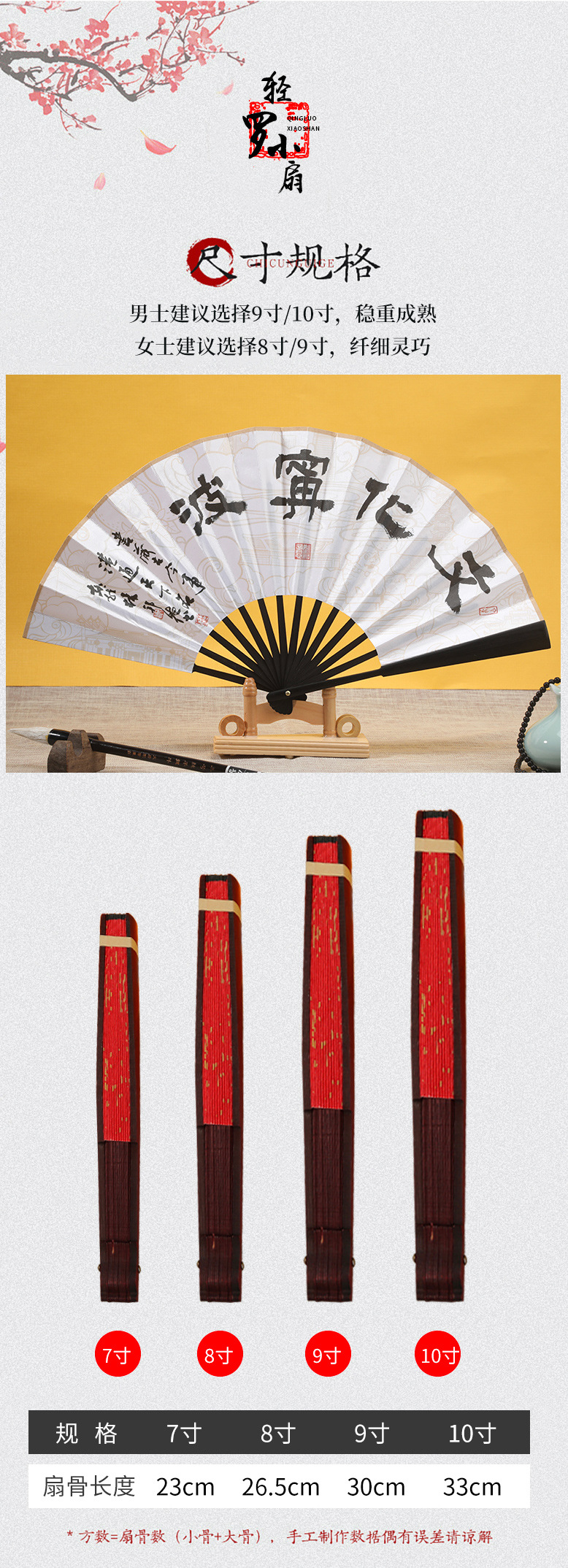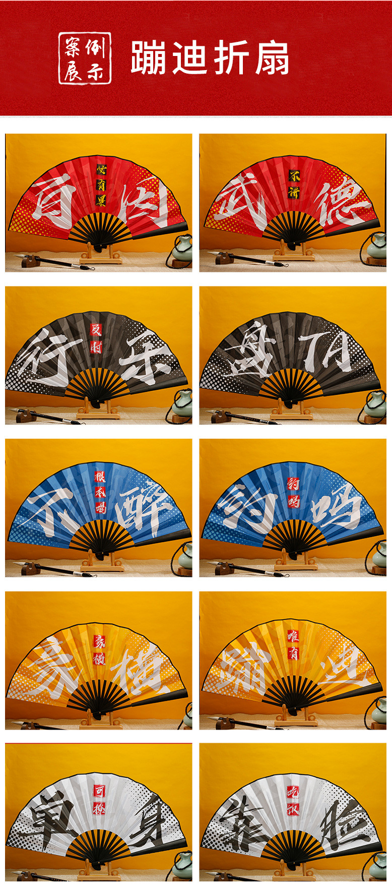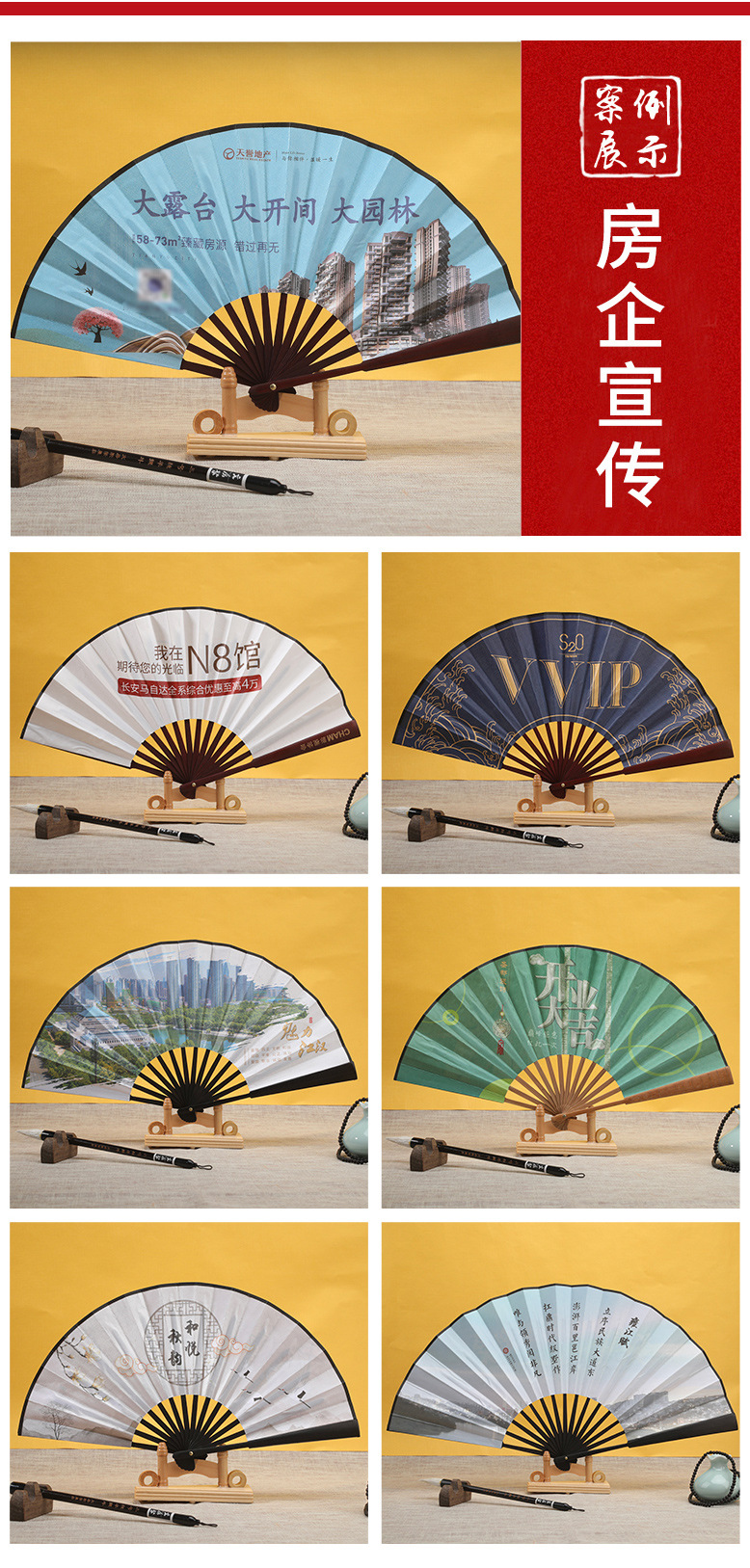 国潮复古折扇定做竹质宣纸折扇题字印刷广告写意婚扇绢布扇子定制