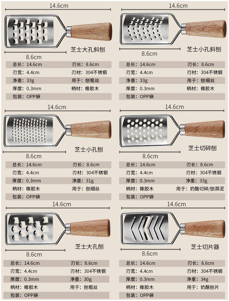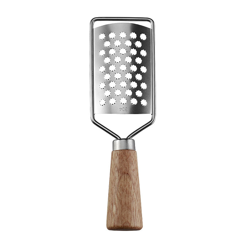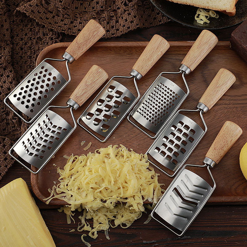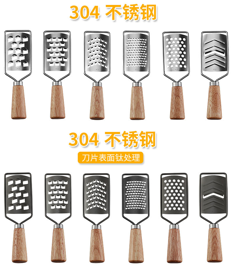 工厂现货340不锈钢迷你芝士刨奶酪刨丝切片器橡胶木柄土豆柠檬刨