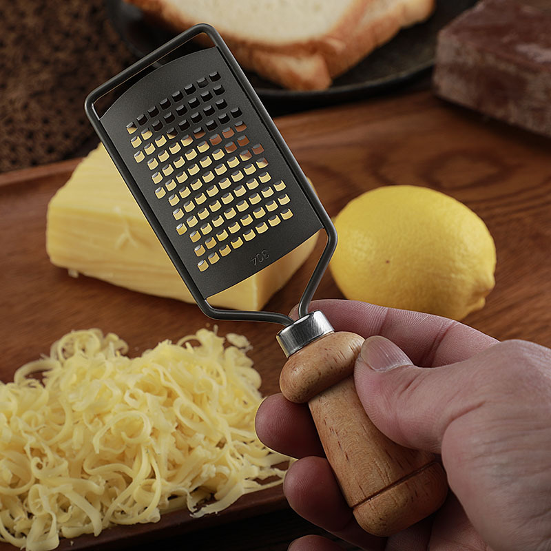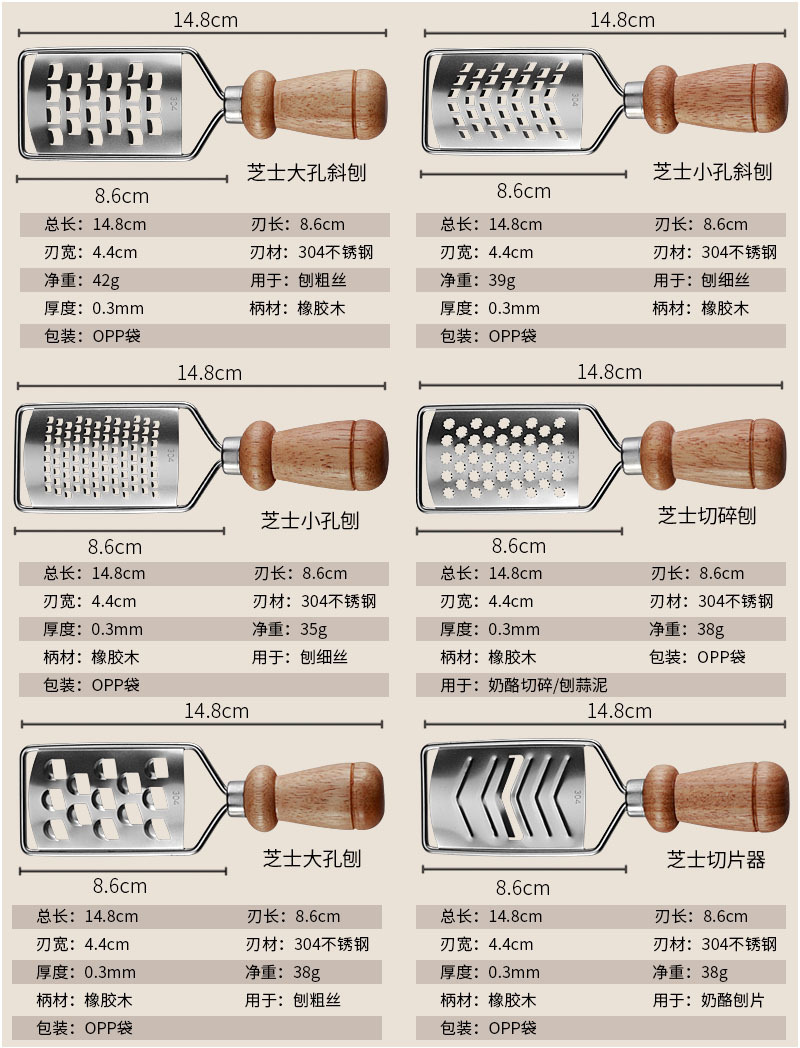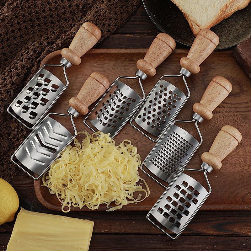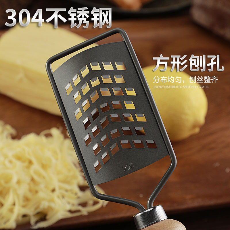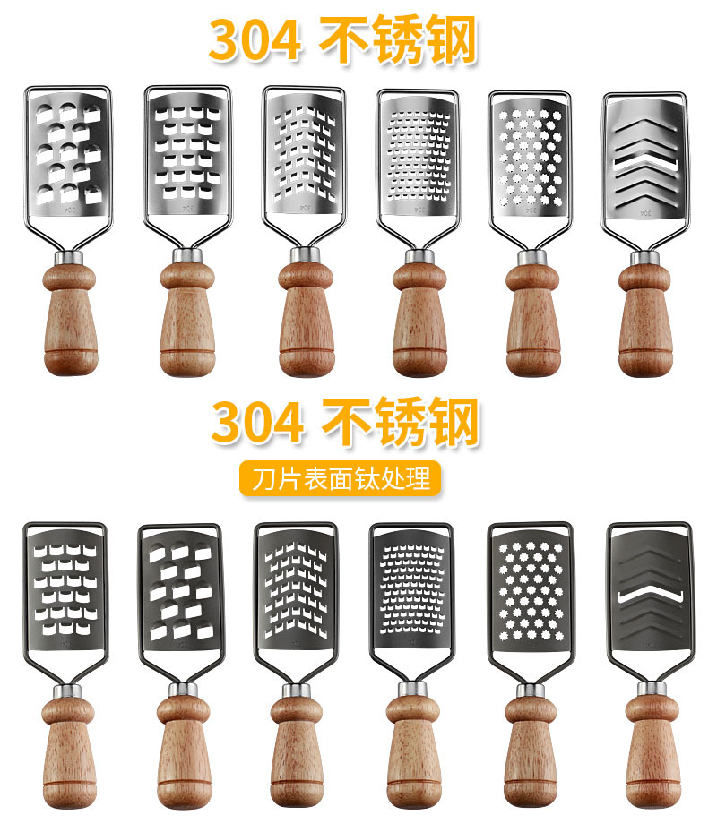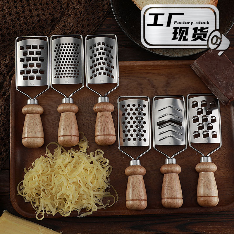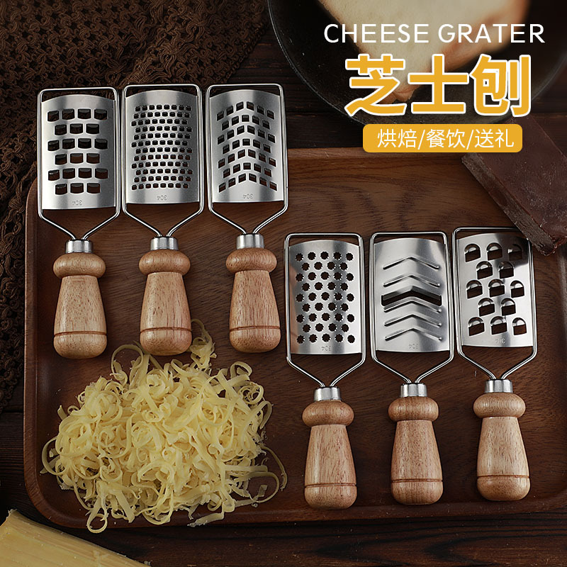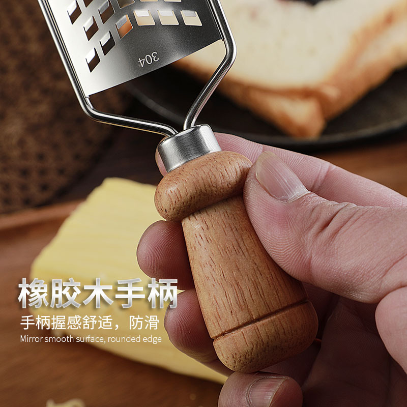跨境现货304不锈钢迷你芝士刨奶酪刨丝切片切菜器橡胶木柄柠檬刨