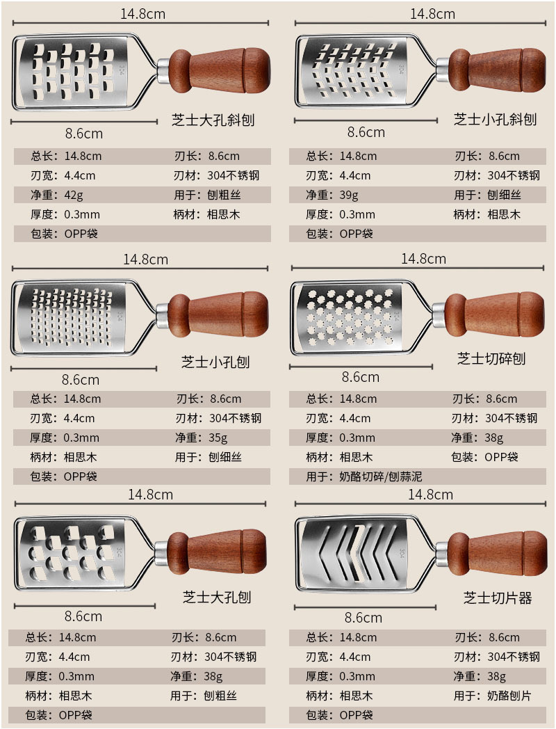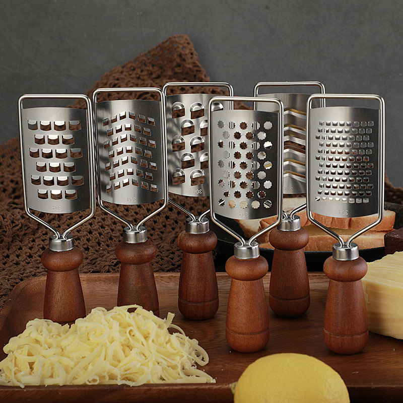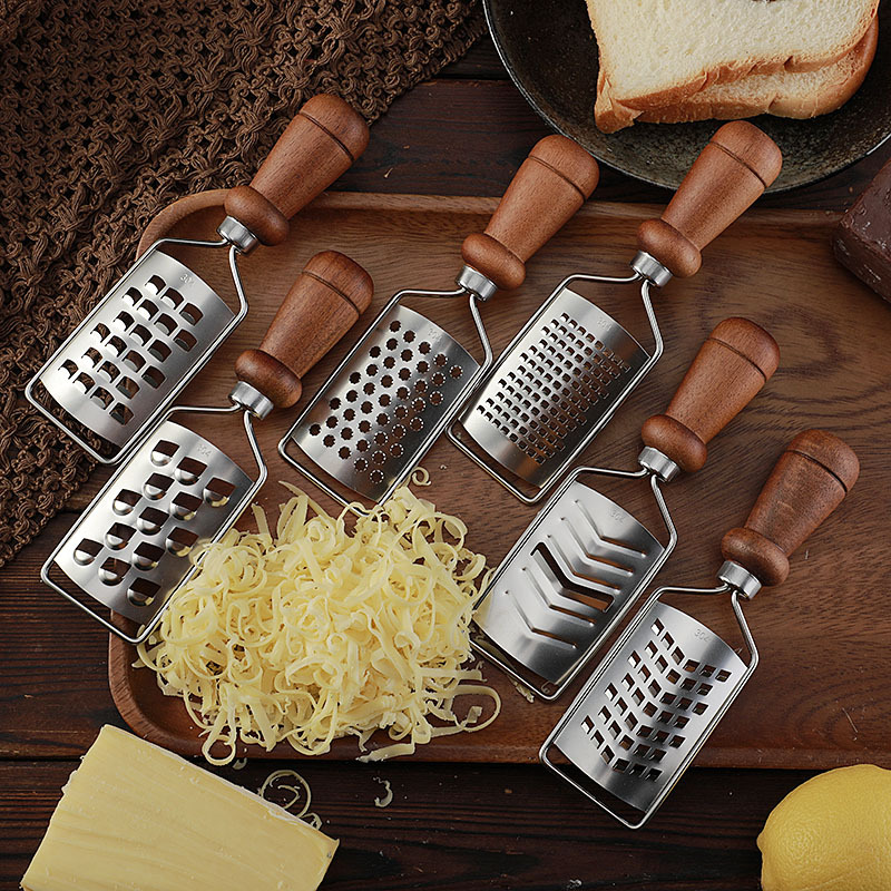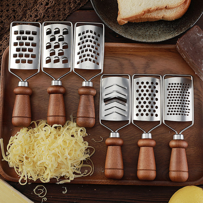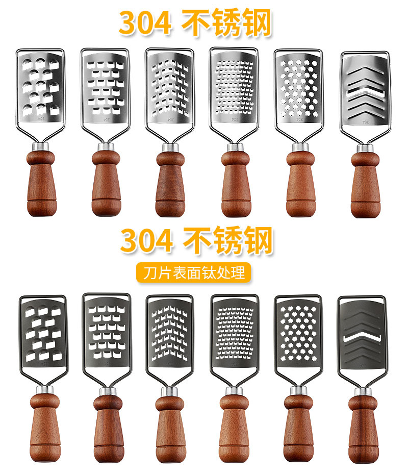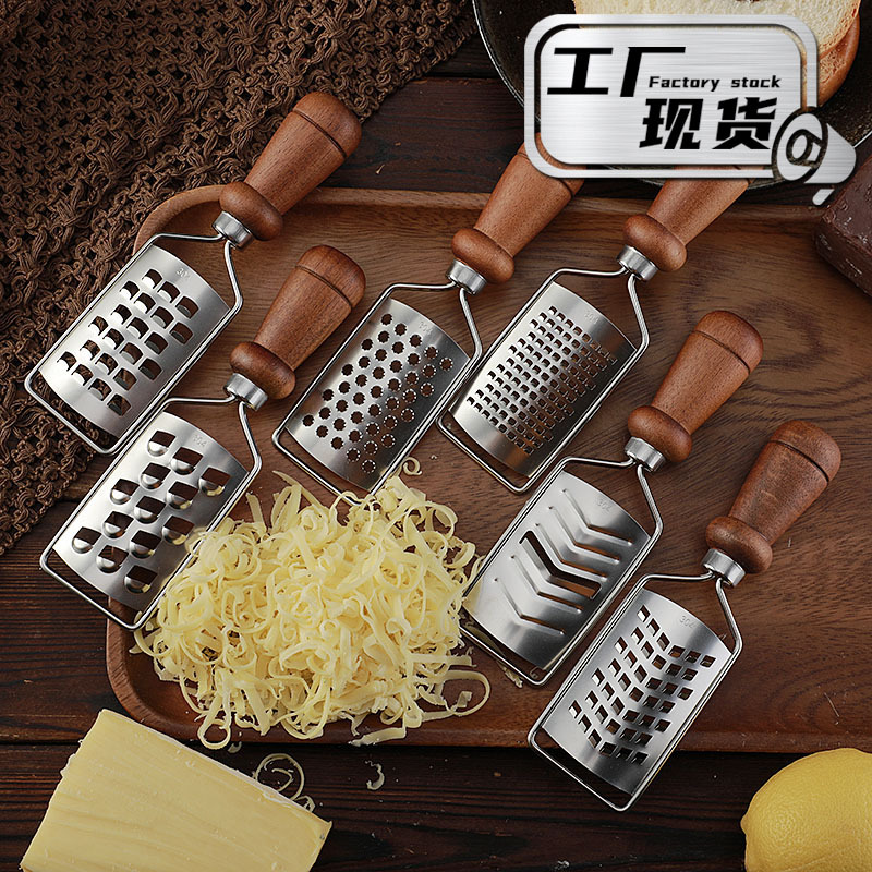 新款304不锈钢多功能切菜器水果柠檬刨擦丝器相思木柄奶酪芝士刨