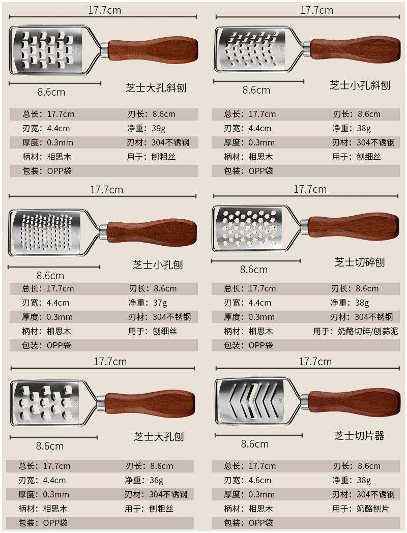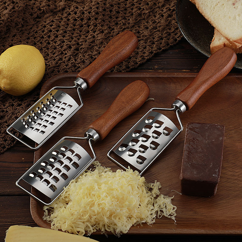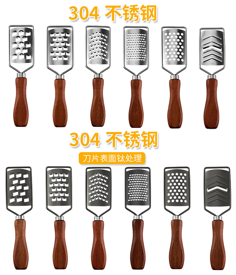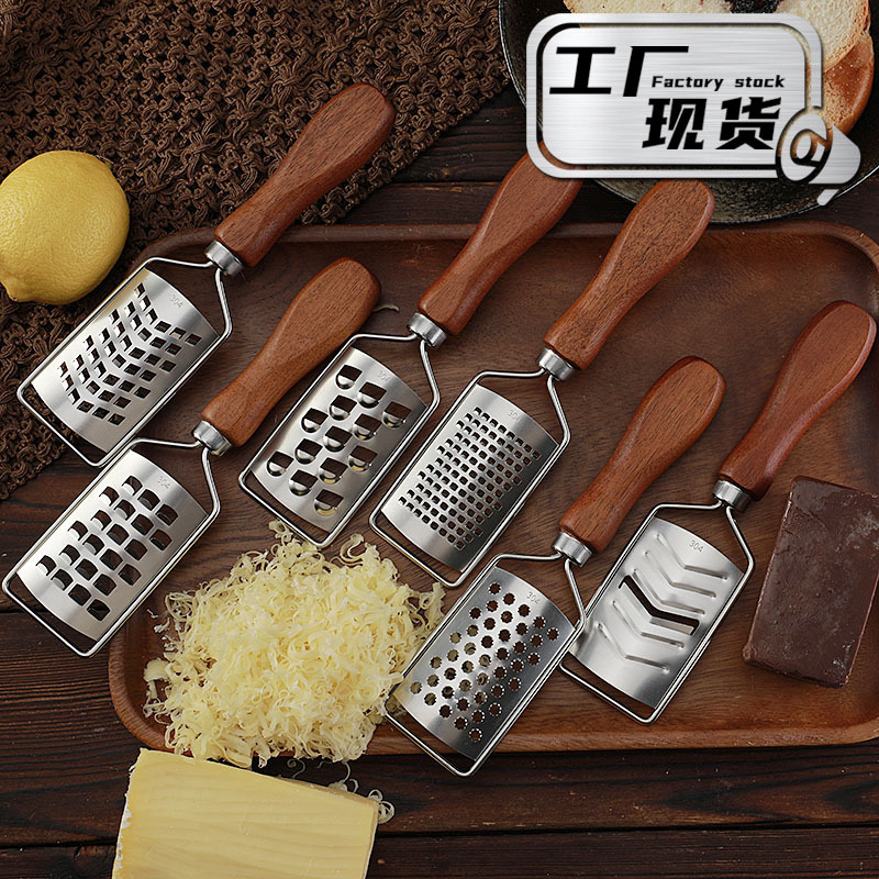 跨境现货多功能304不锈钢柠檬刨土豆刨丝器相思木柄迷你芝士刨