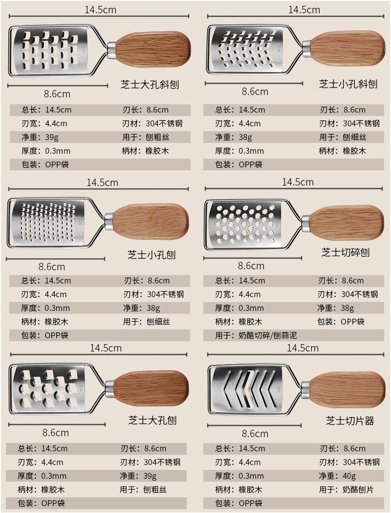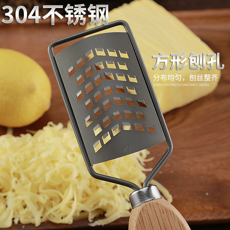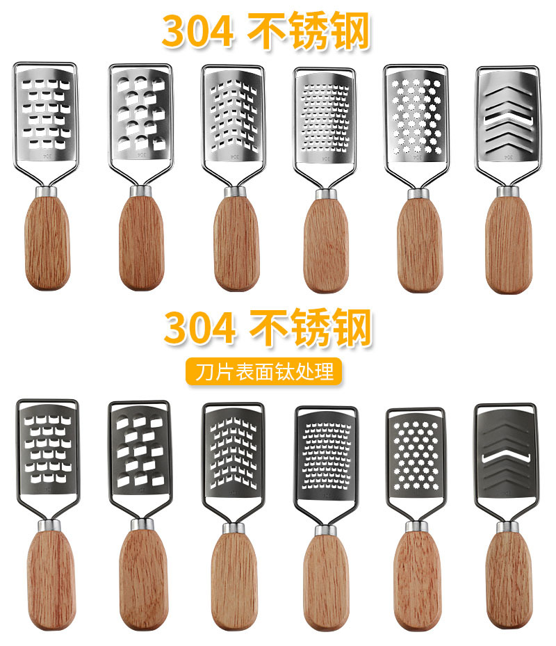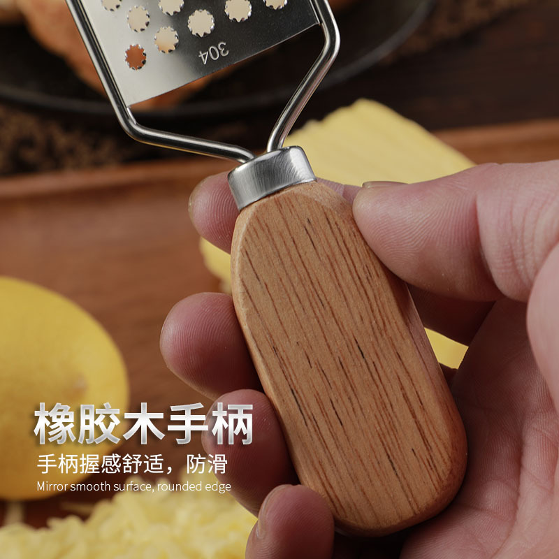 现货304不锈钢迷你芝士刨奶酪巧克力磨粉器橡胶木土豆柠檬刨丝器