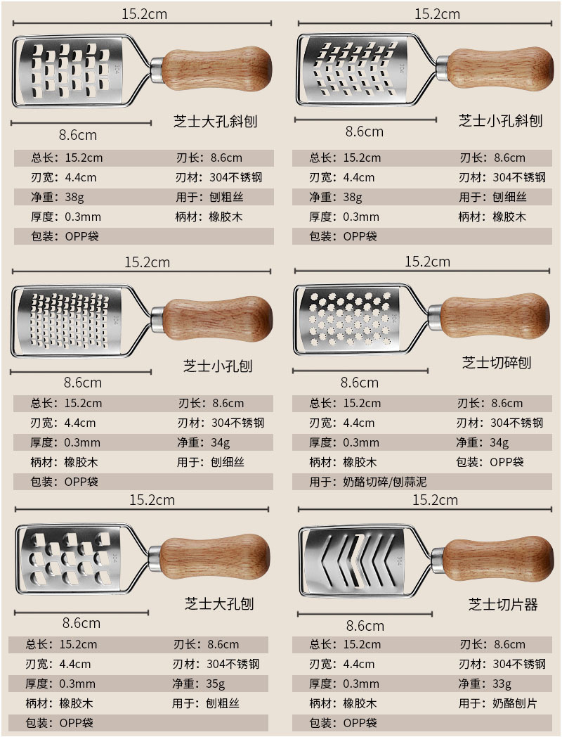 现货304不锈钢迷你奶酪芝士刨橡胶木巧克力柠檬刨厨房刨丝切菜器