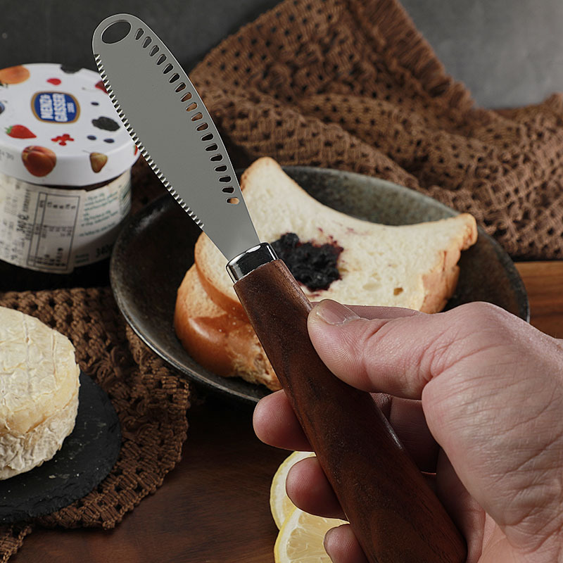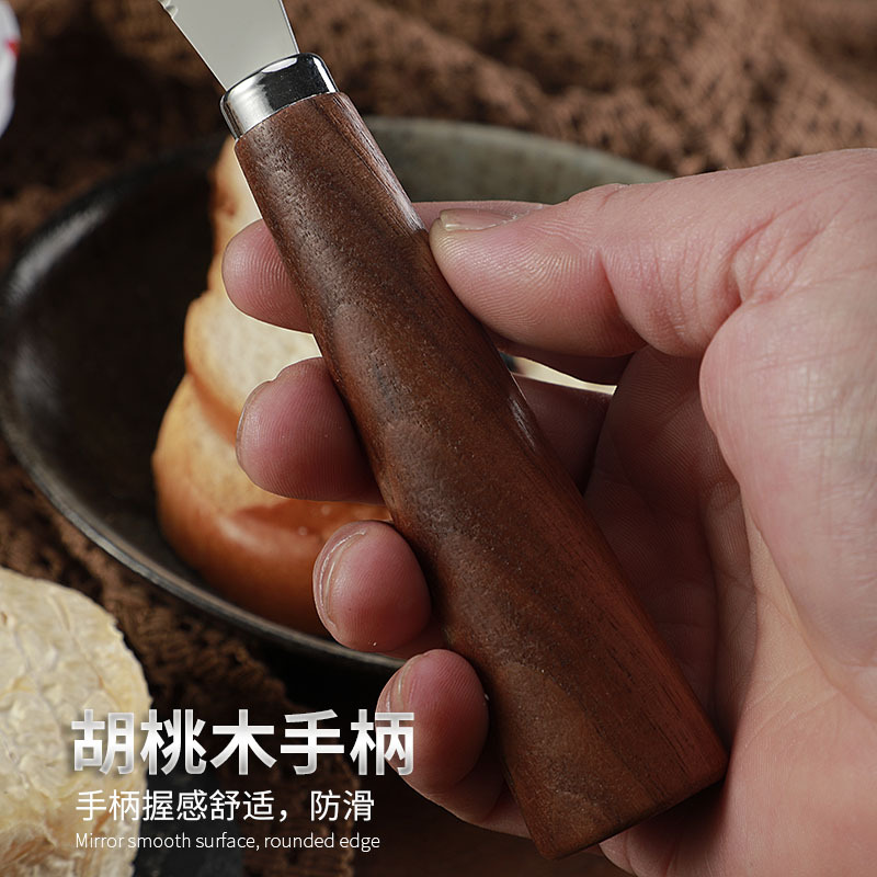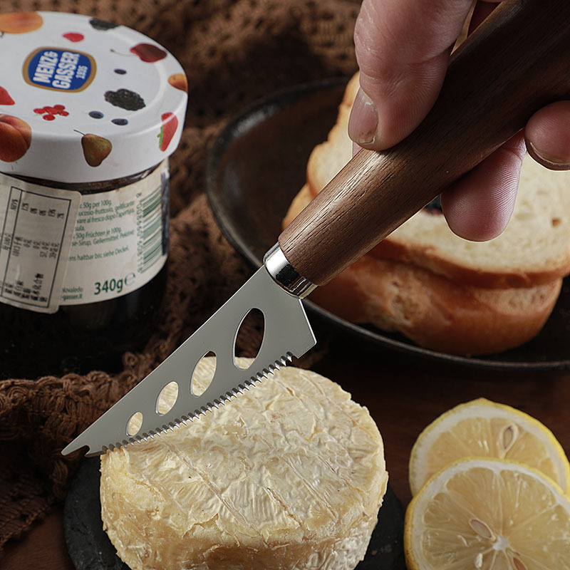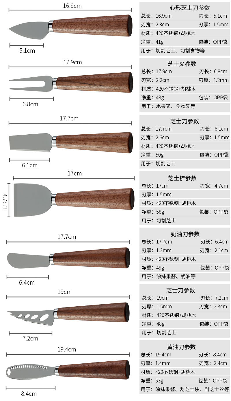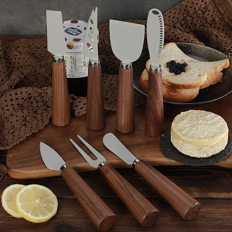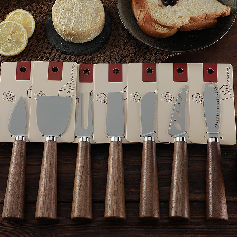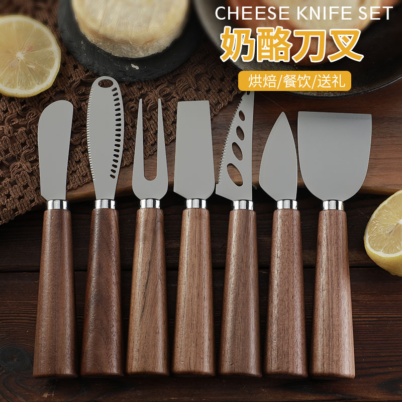 跨境现货不锈钢不沾涂层披萨刀奶酪刀胡桃木柄芝士刀西餐刀叉铲子