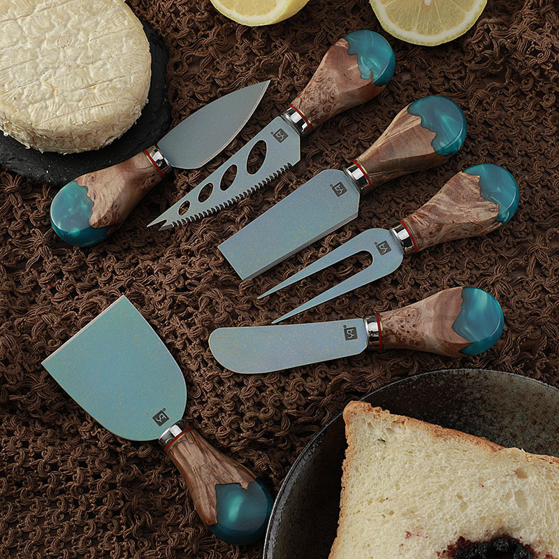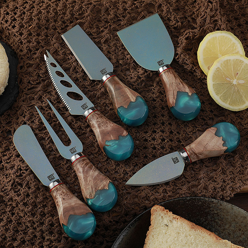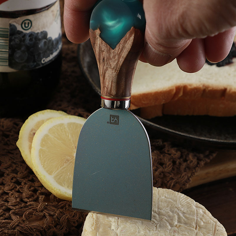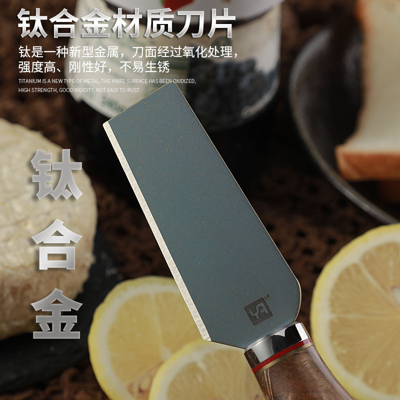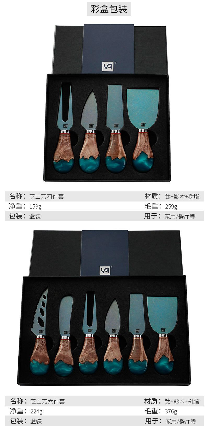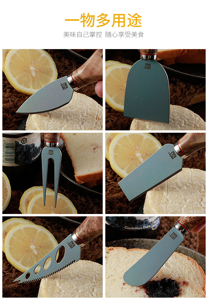 跨境现货高端钛合金芝士刀蓝树脂木柄奶酪刀叉铲子套装黄油奶油刀