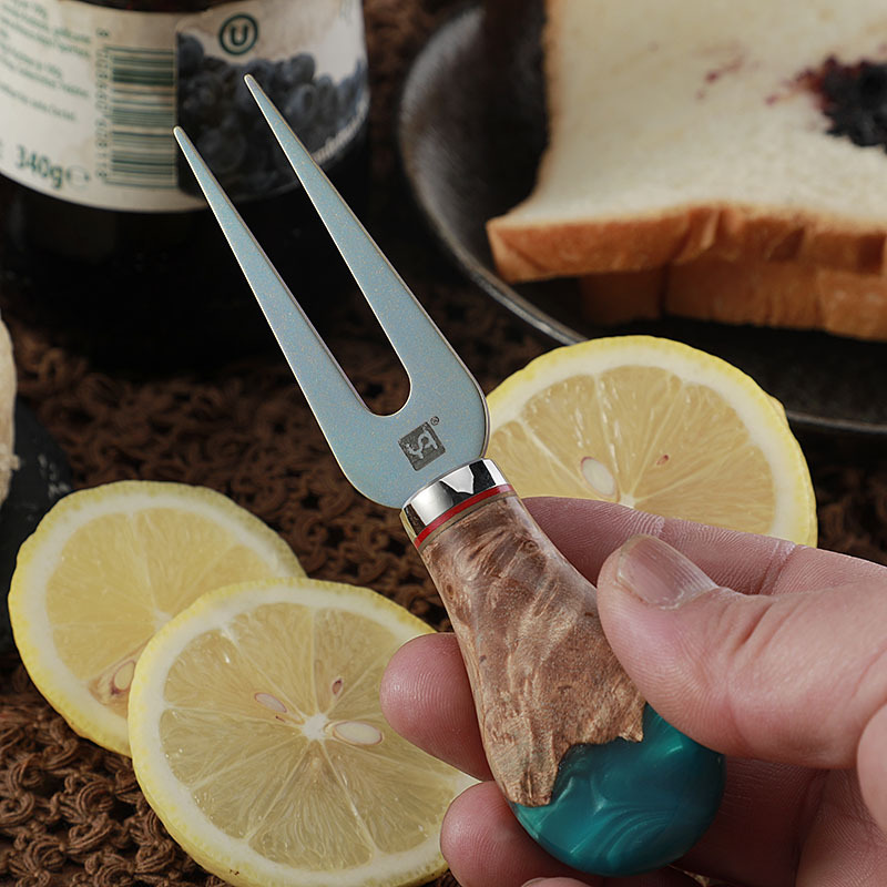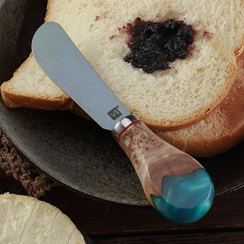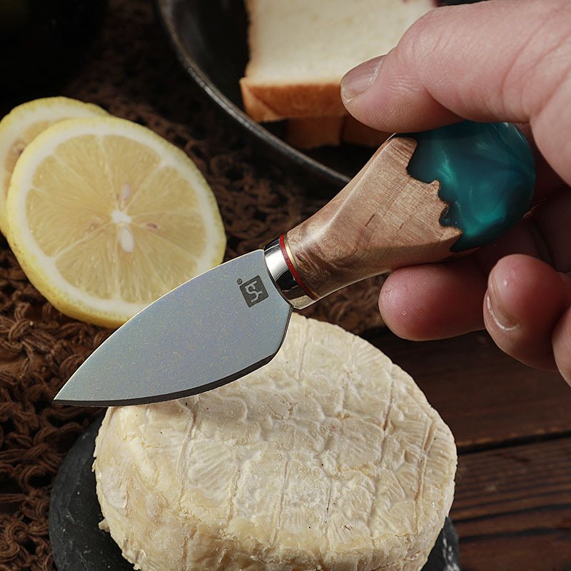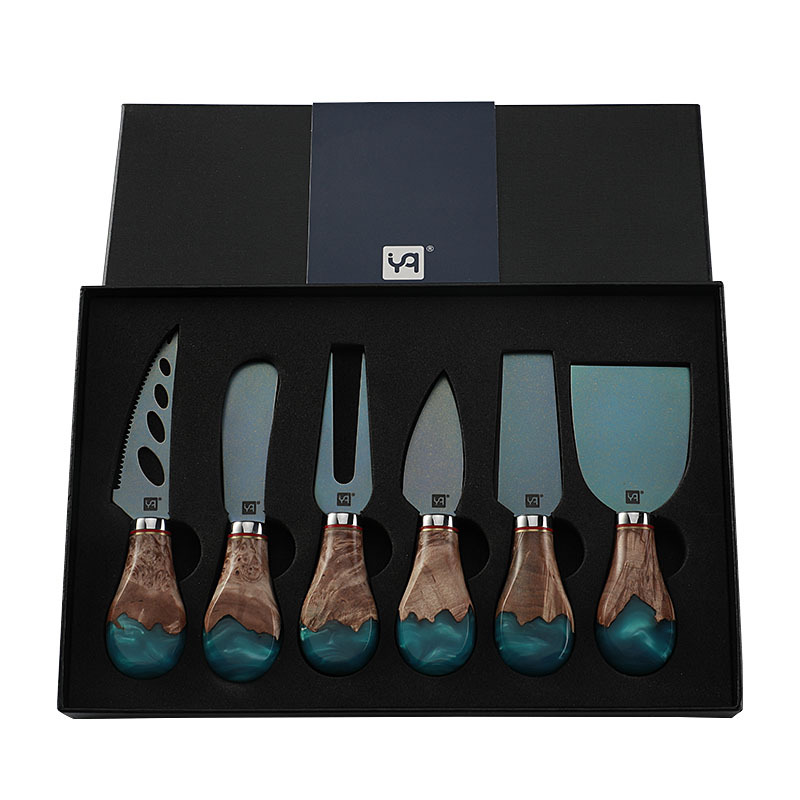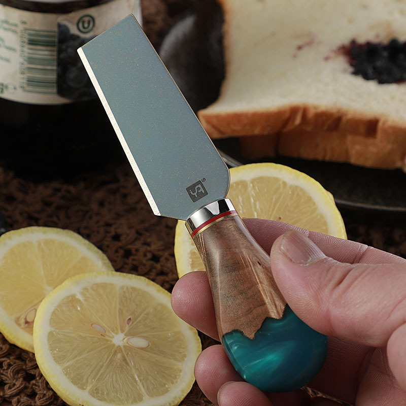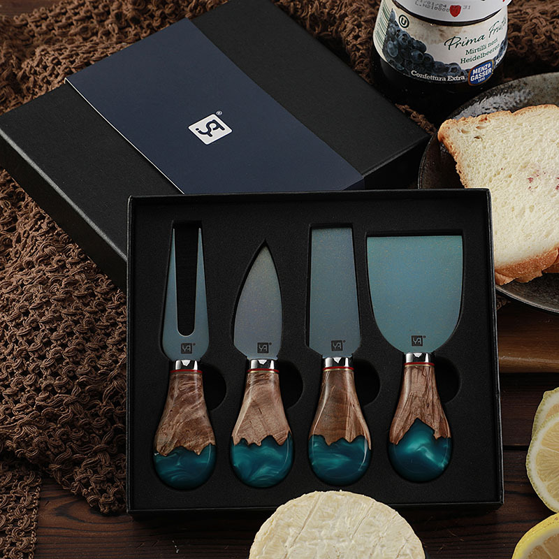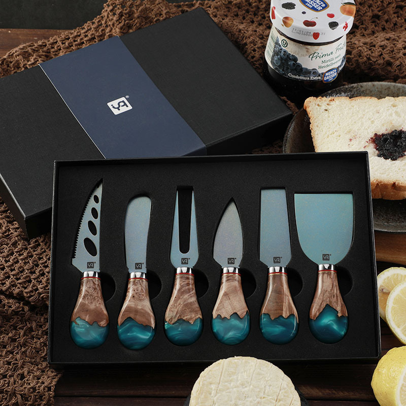 跨境现货高端钛合金芝士刀蓝树脂木柄奶酪刀叉铲子套装黄油奶油刀