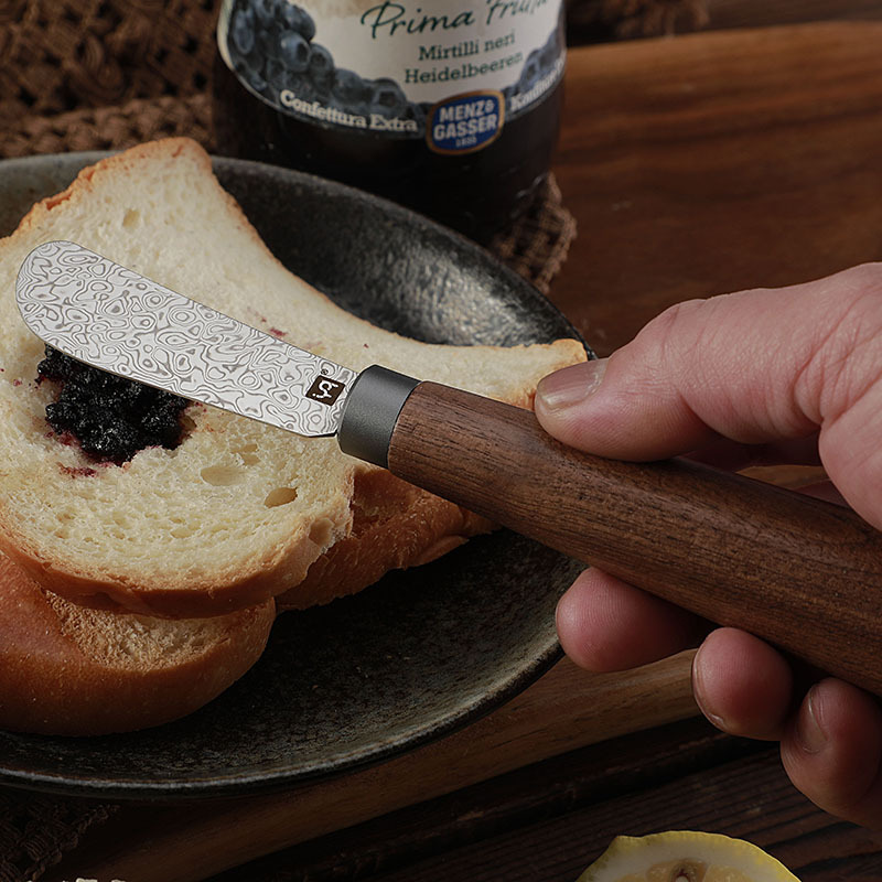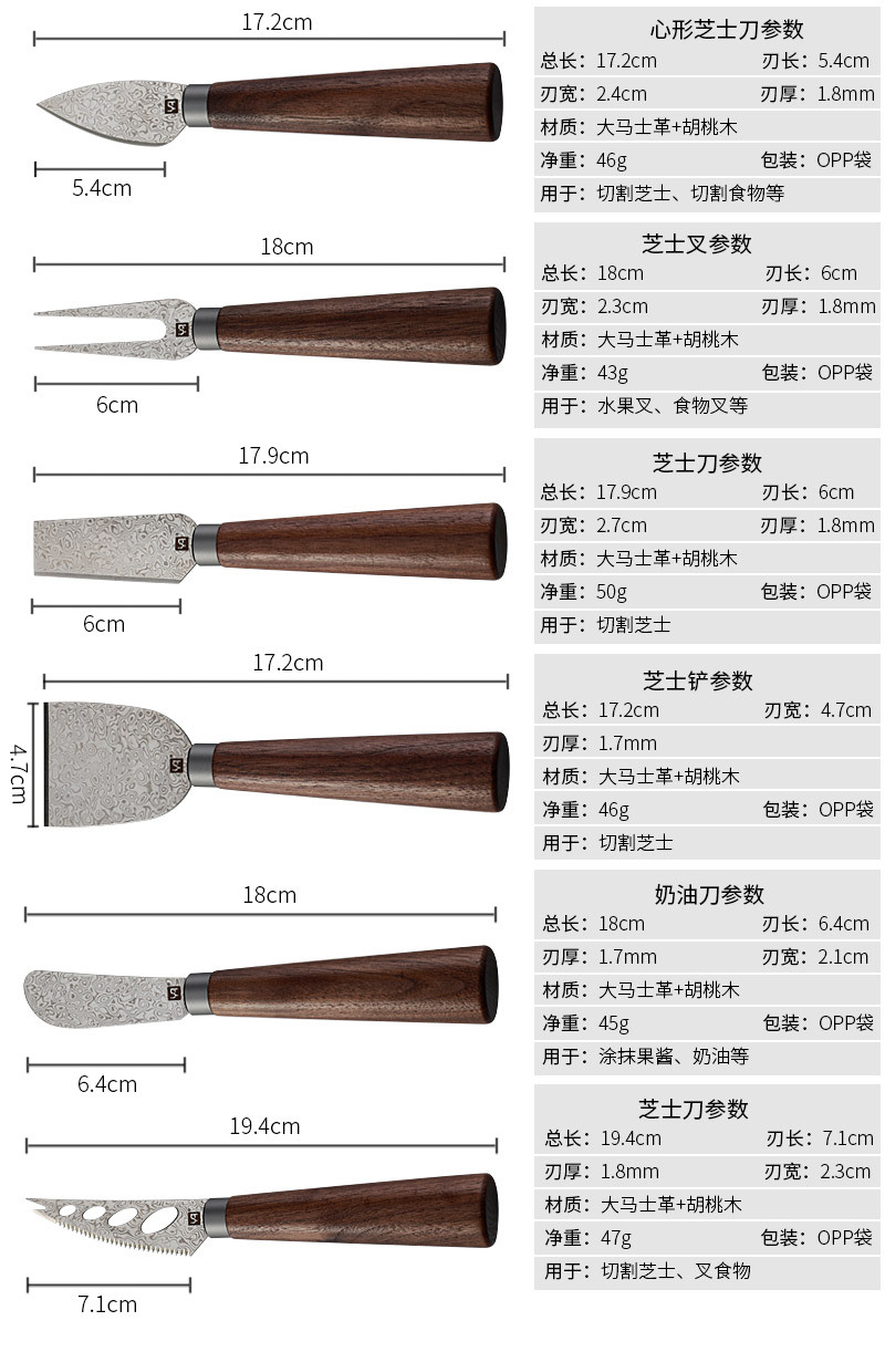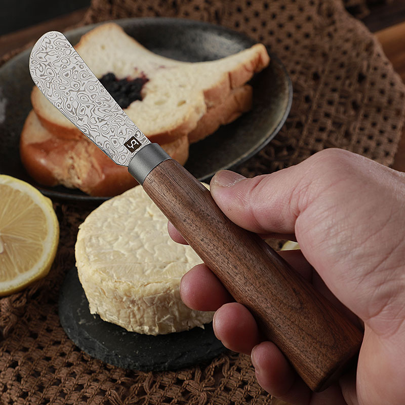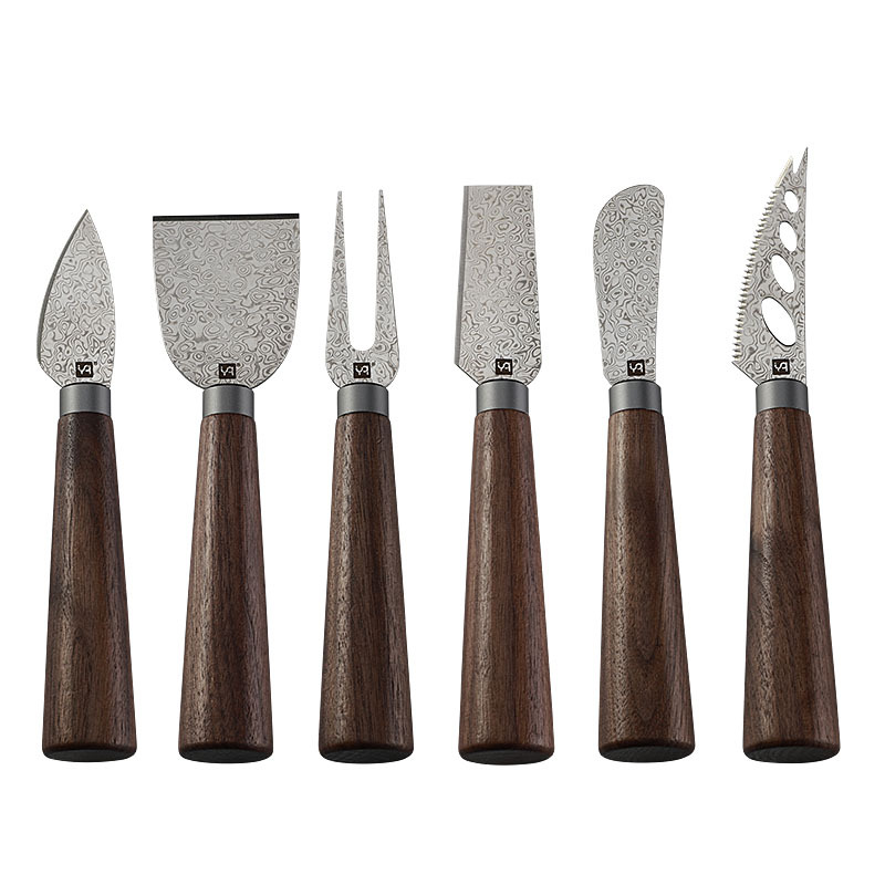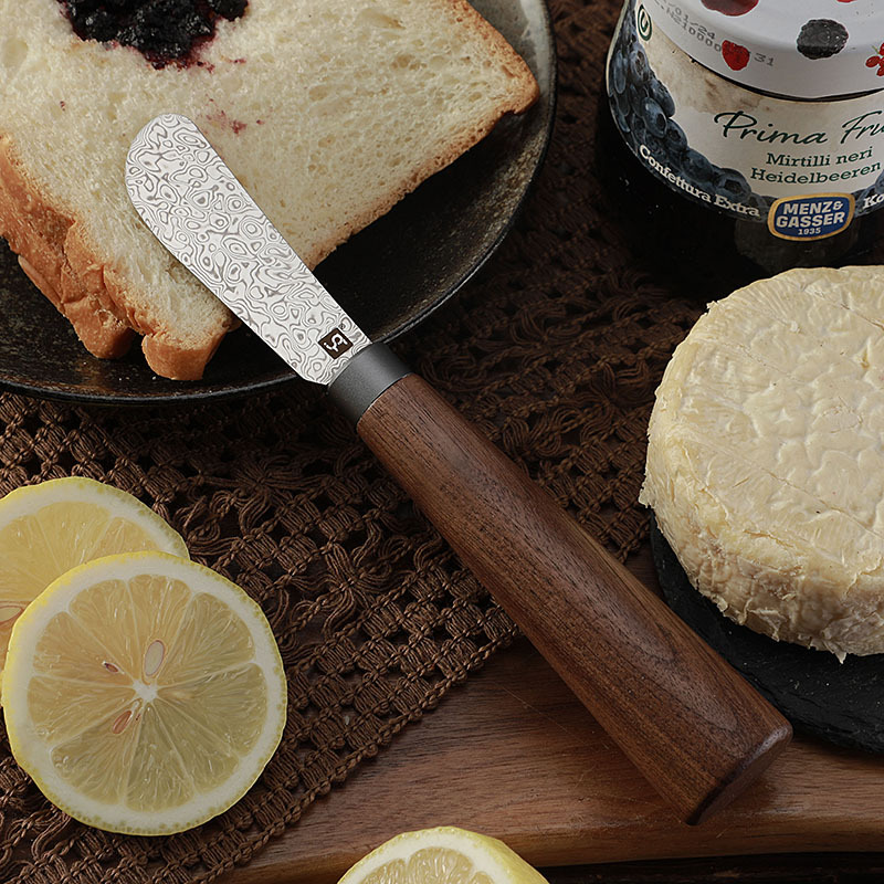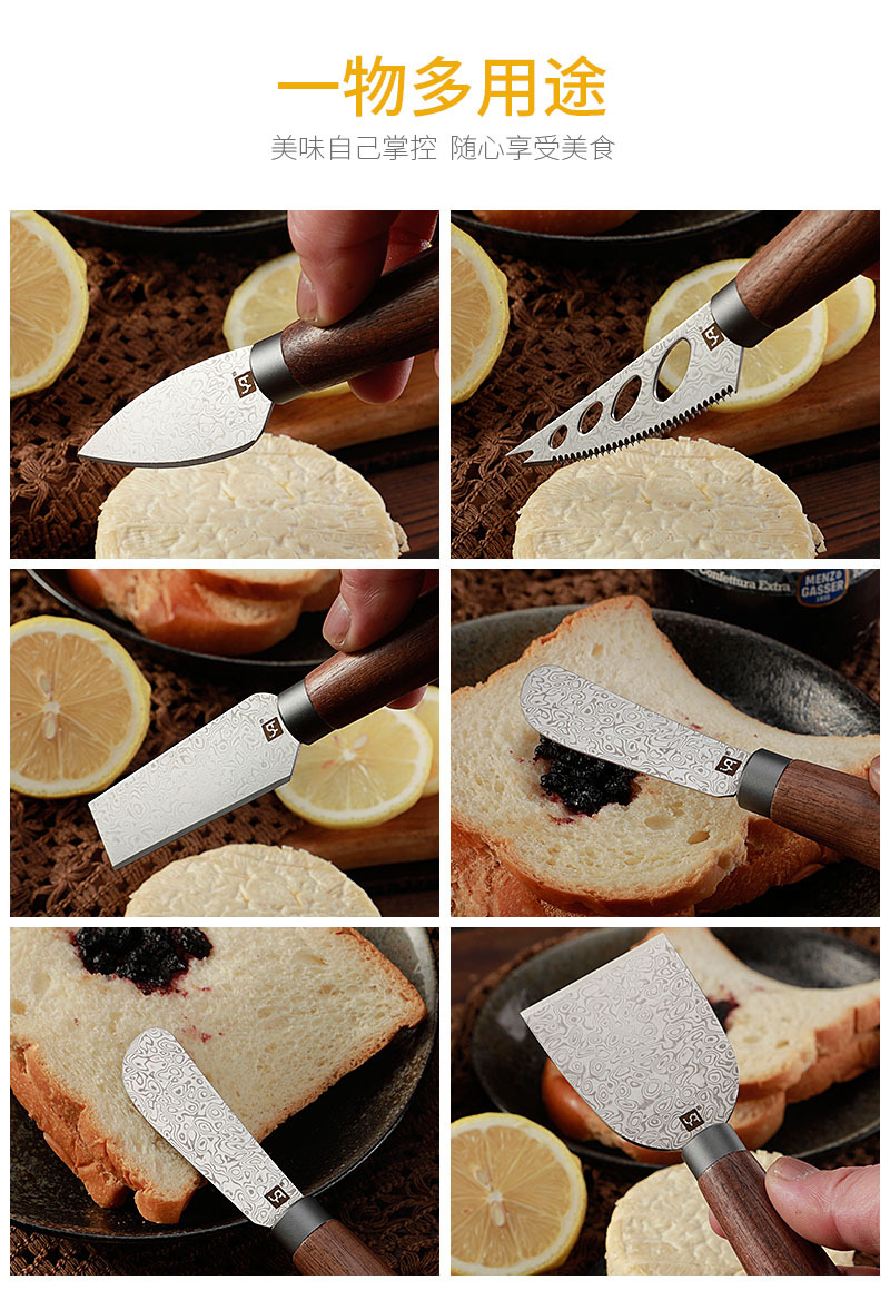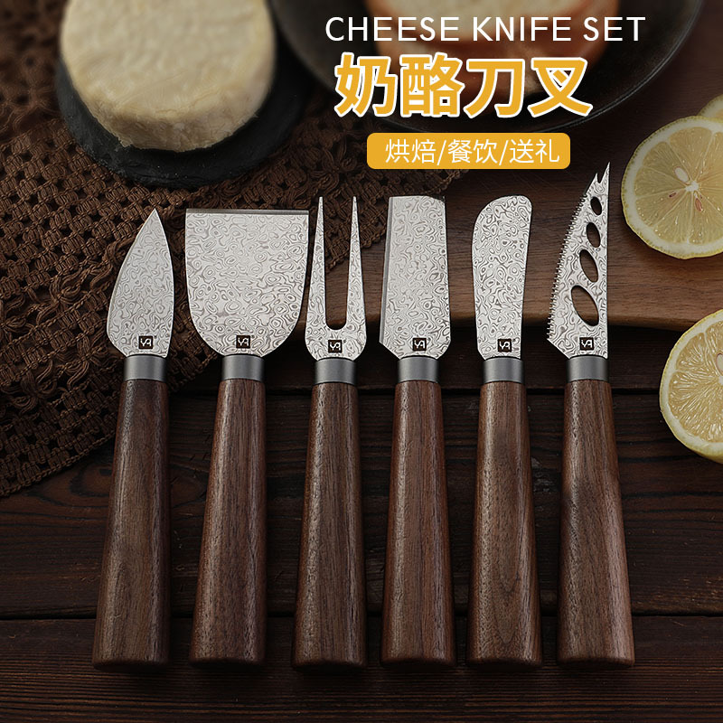 工厂现货高端大马士革芝士刀胡桃木柄西餐刀叉奶酪刀面包刀黄油刀