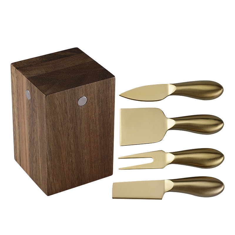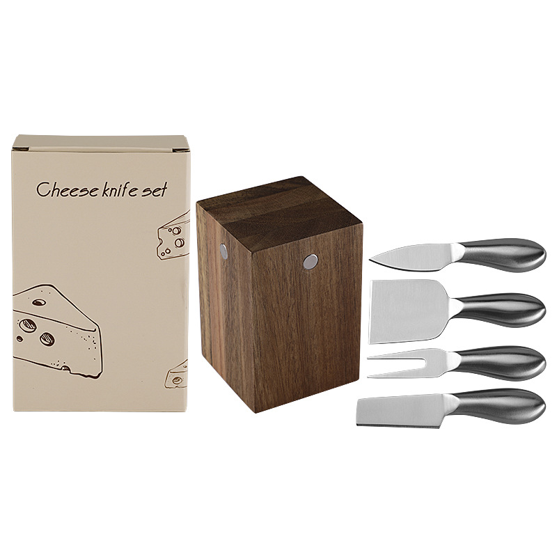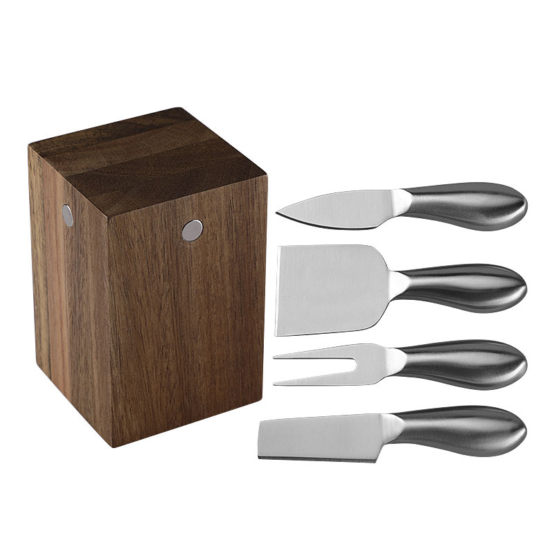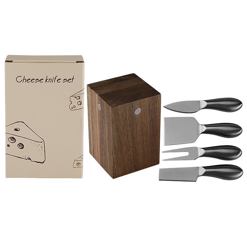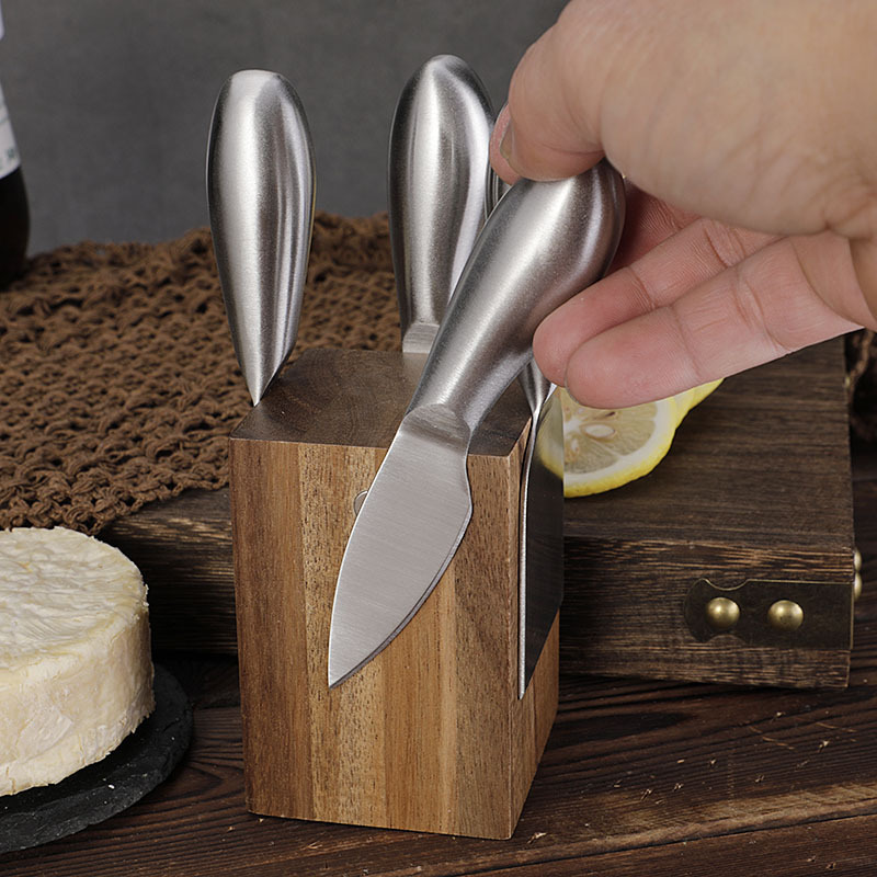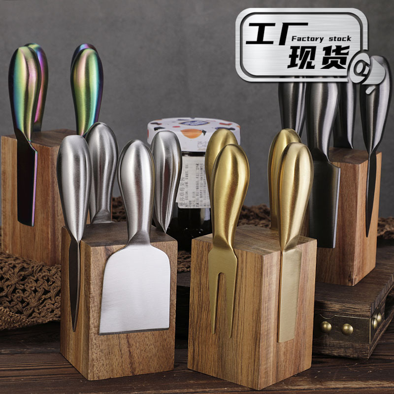 跨境现货磁吸相思木座芝士刀空心柄不锈钢奶酪刀叉铲芝士刀5件套