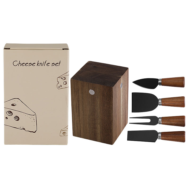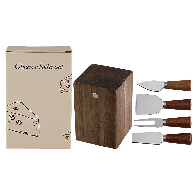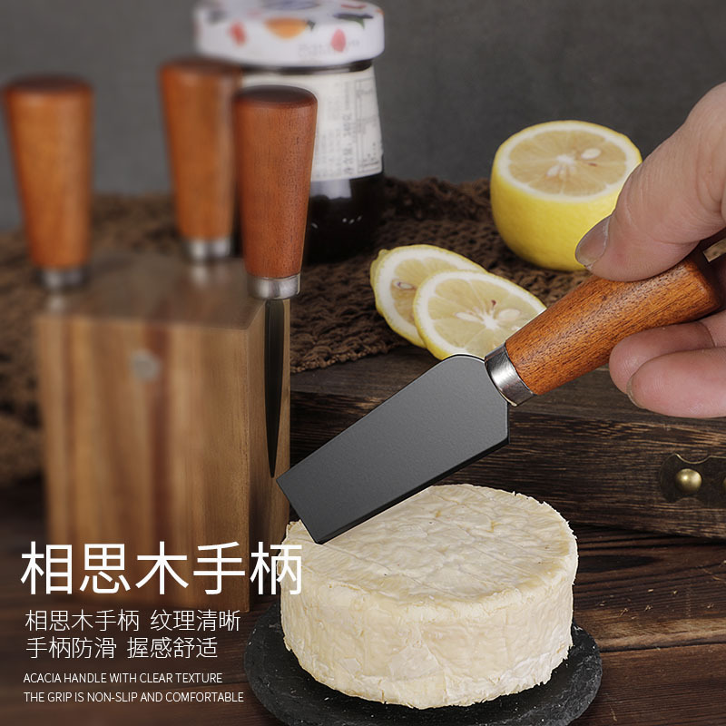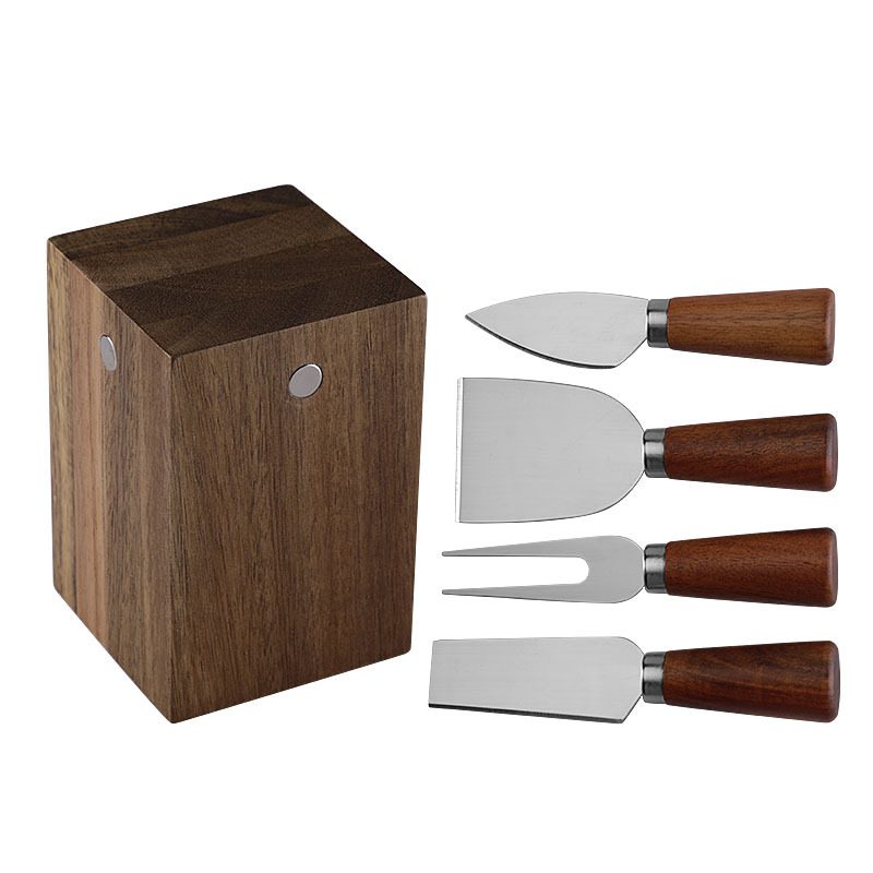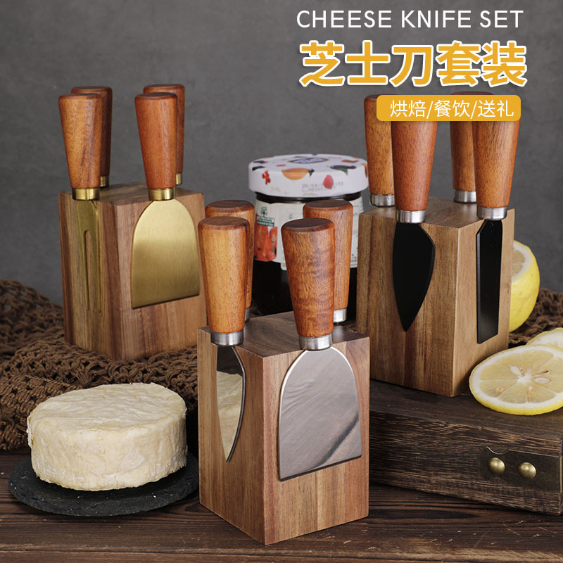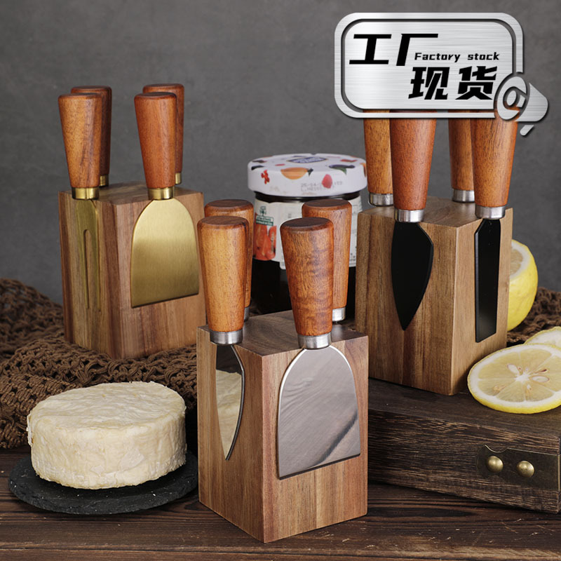 工厂现货磁吸相思木芝士座5件套不锈钢奶酪芝士刀铲套装西餐刀具