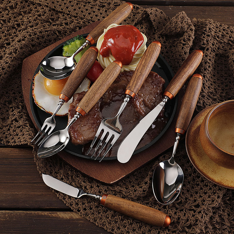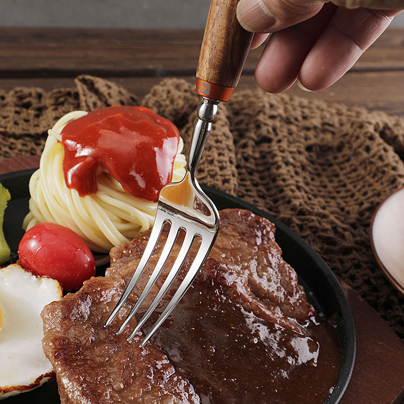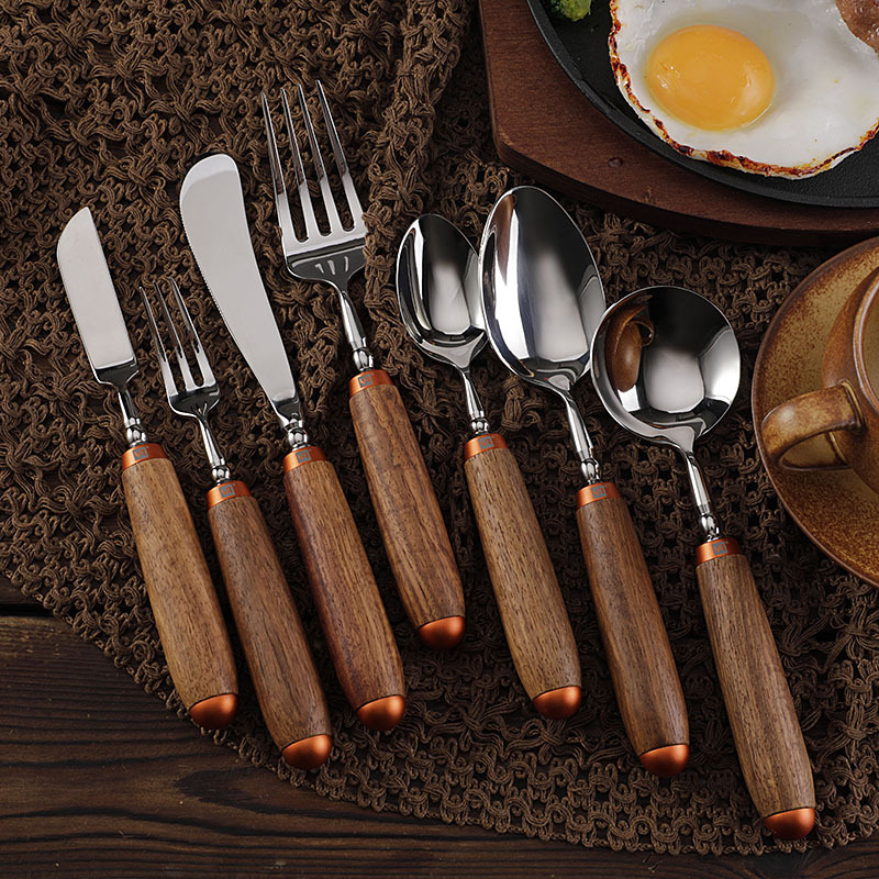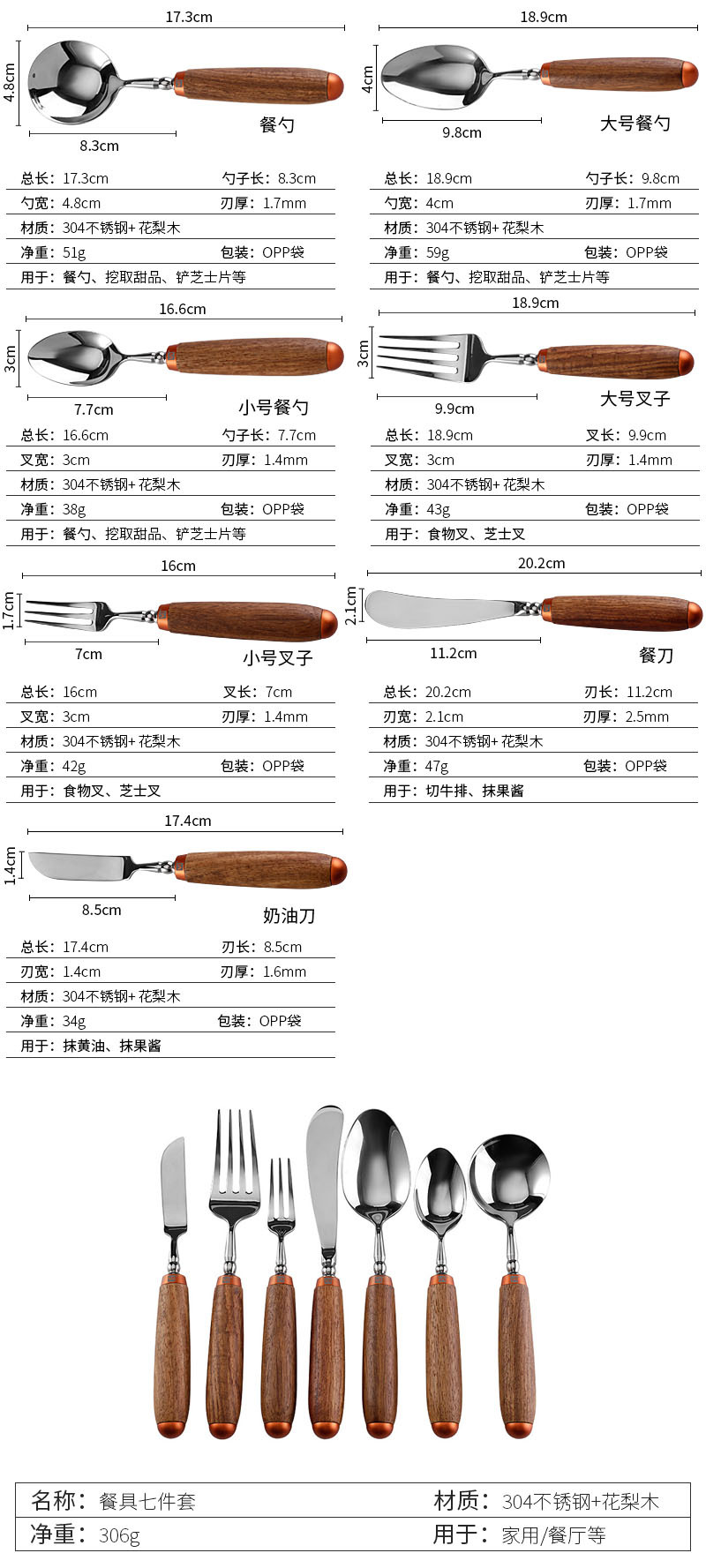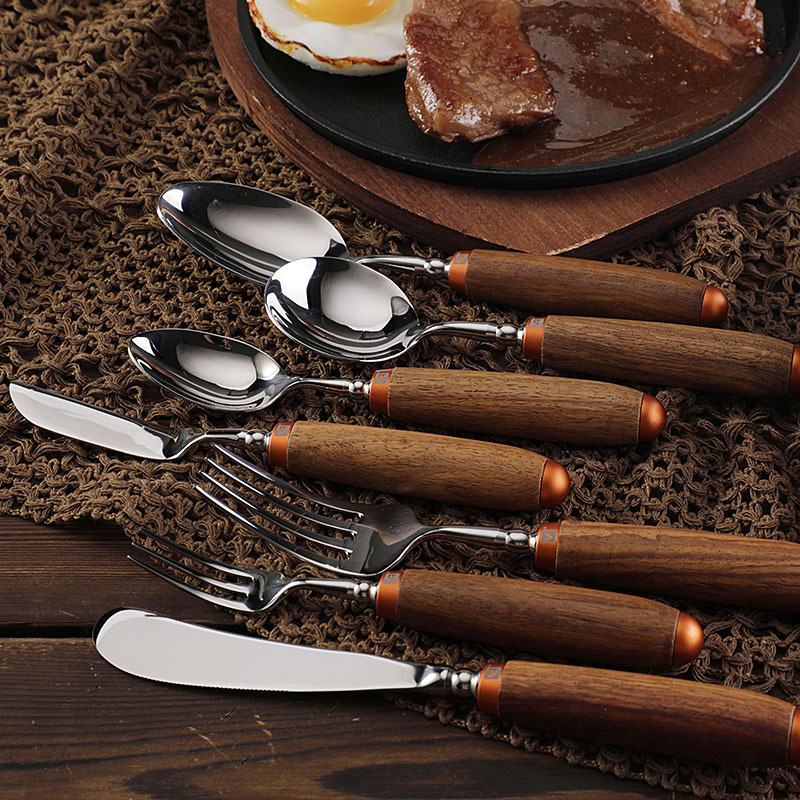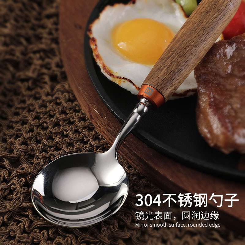 现货高端304不锈钢餐具刀叉勺花梨木柄餐勺新款酒店西餐牛排刀叉