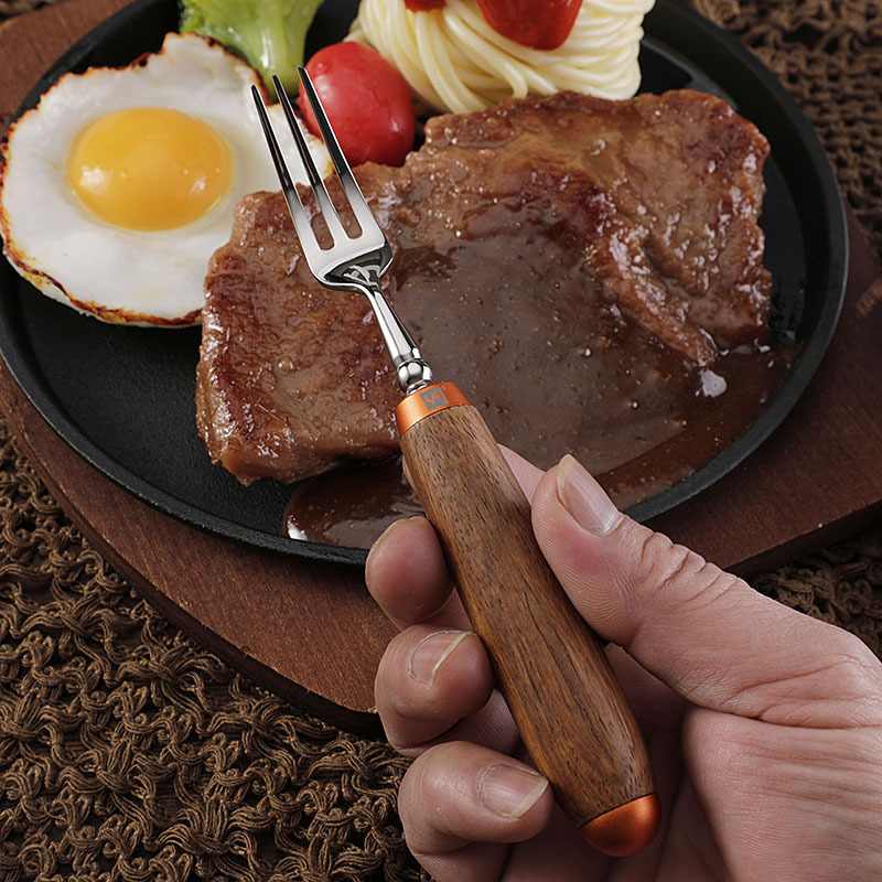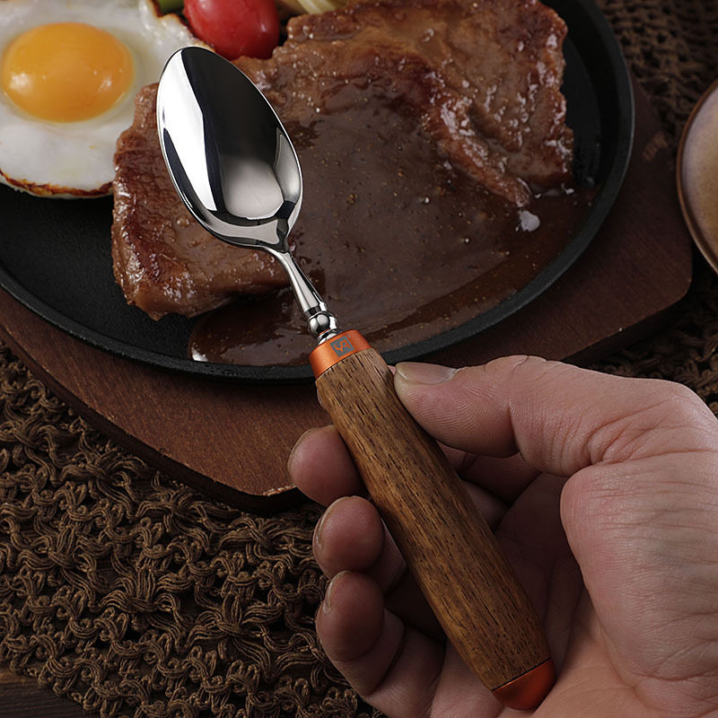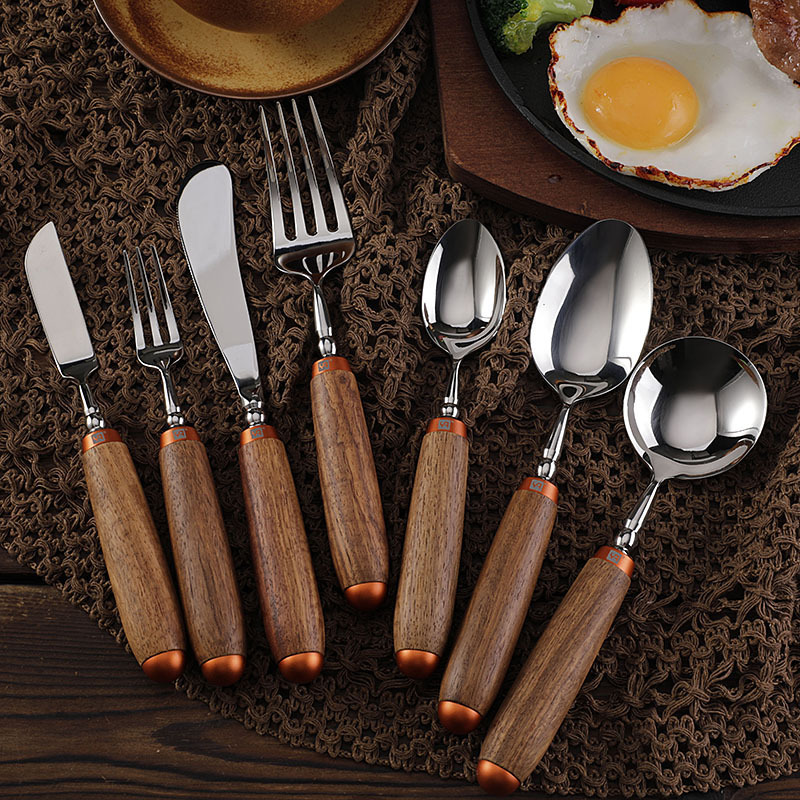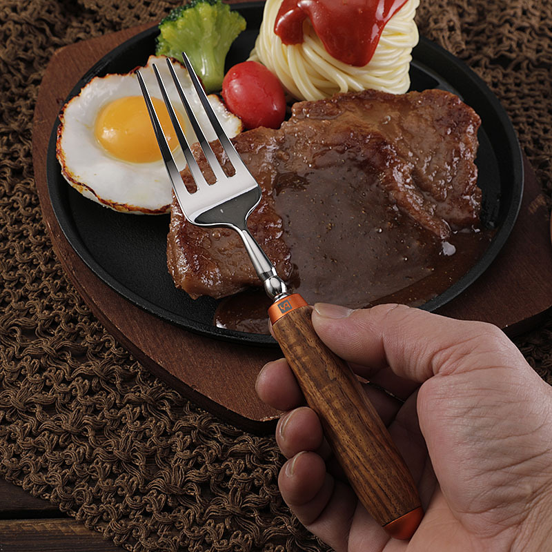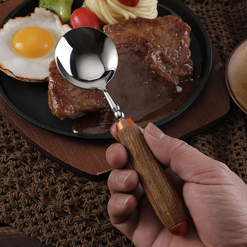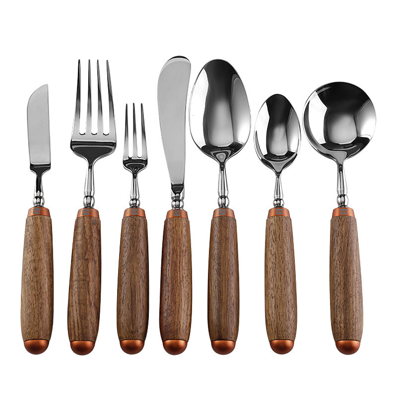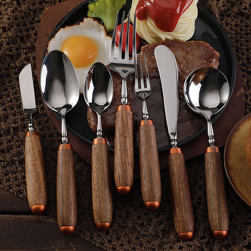 现货高端304不锈钢餐具刀叉勺花梨木柄餐勺新款酒店西餐牛排刀叉