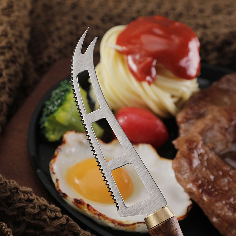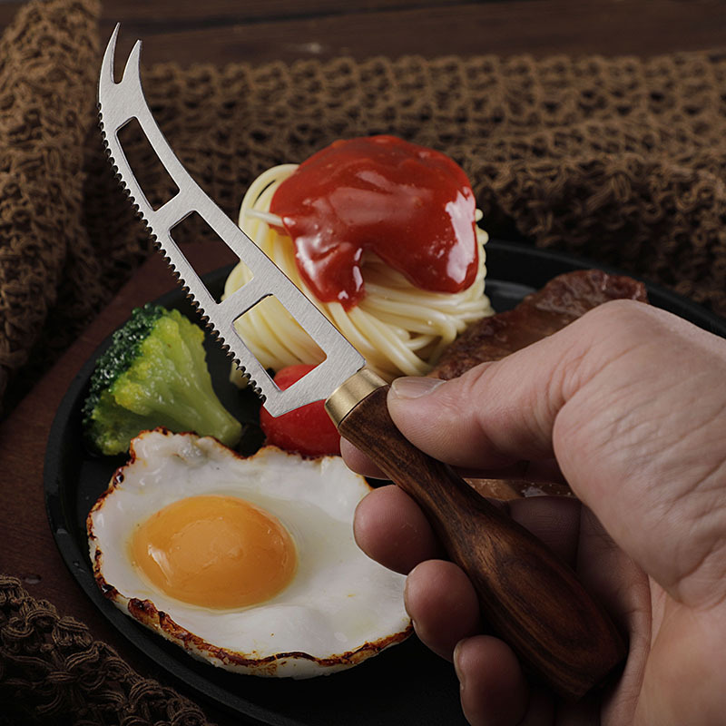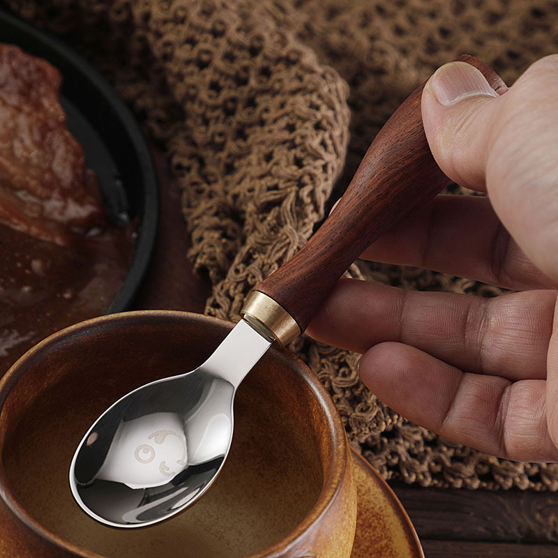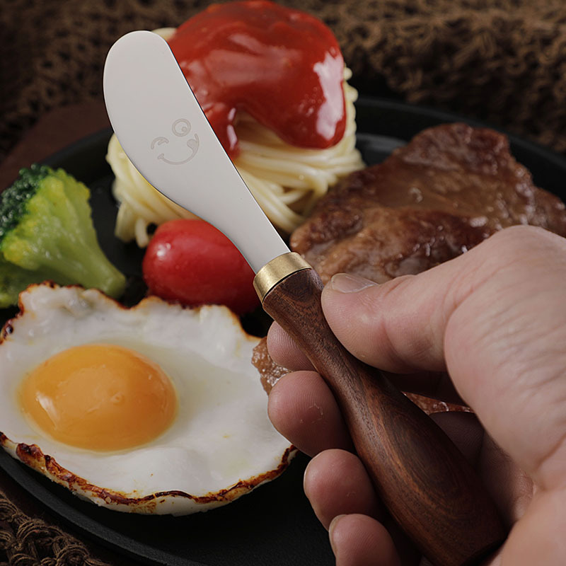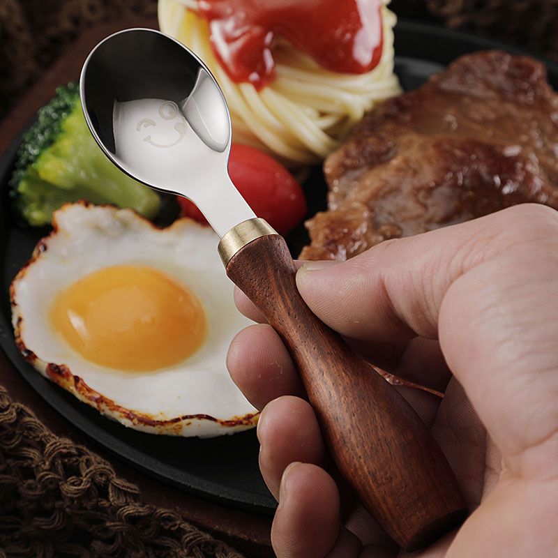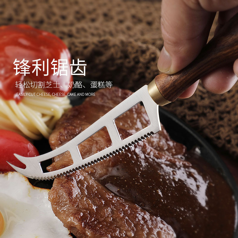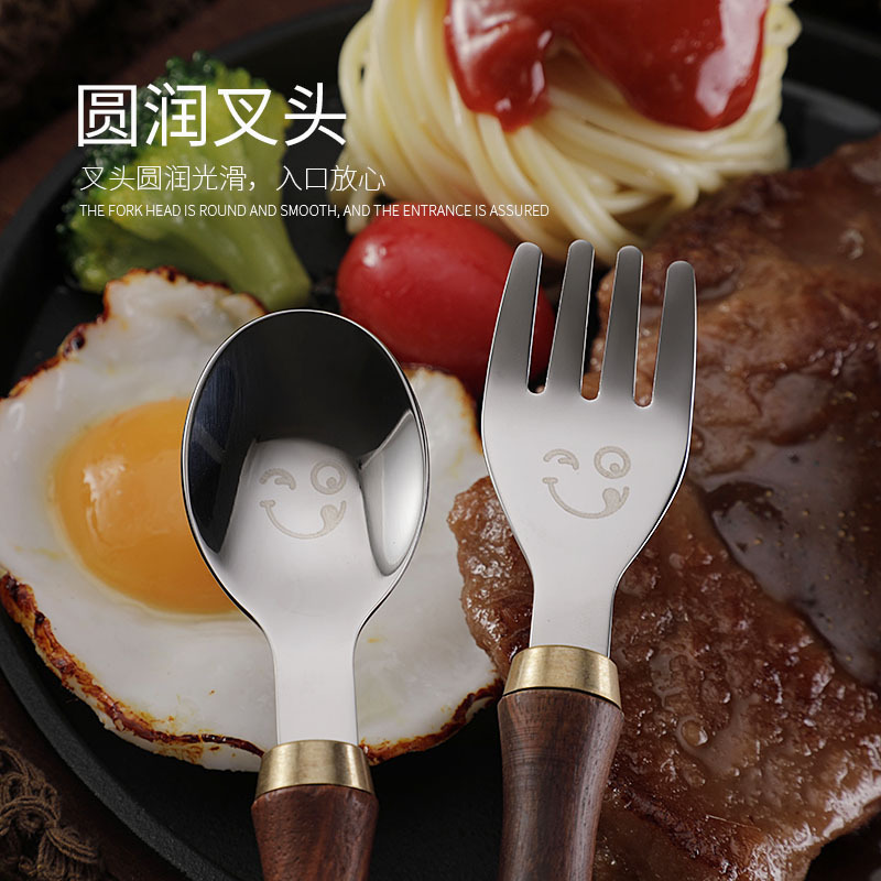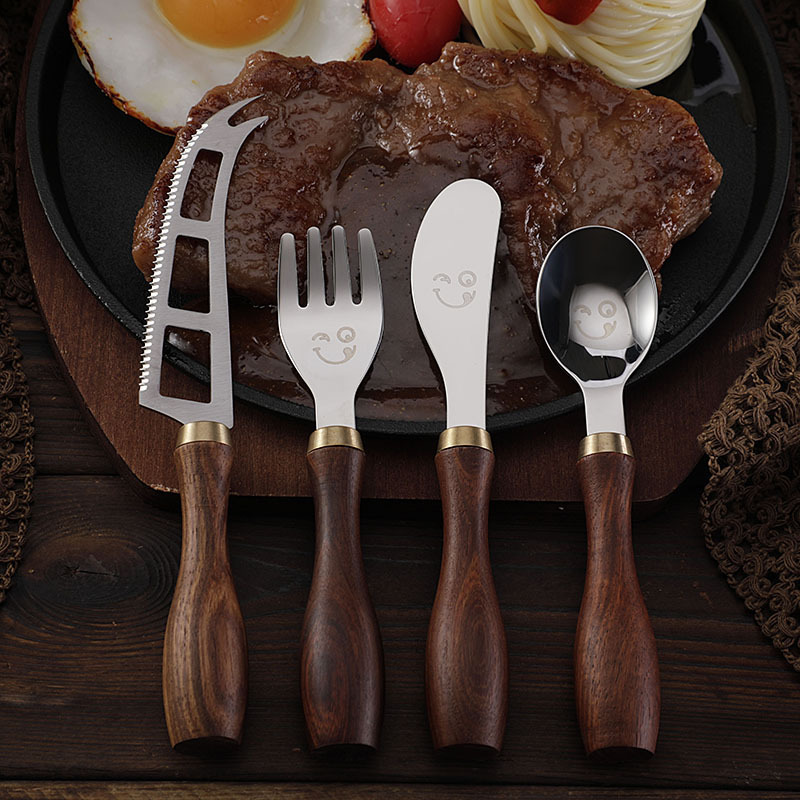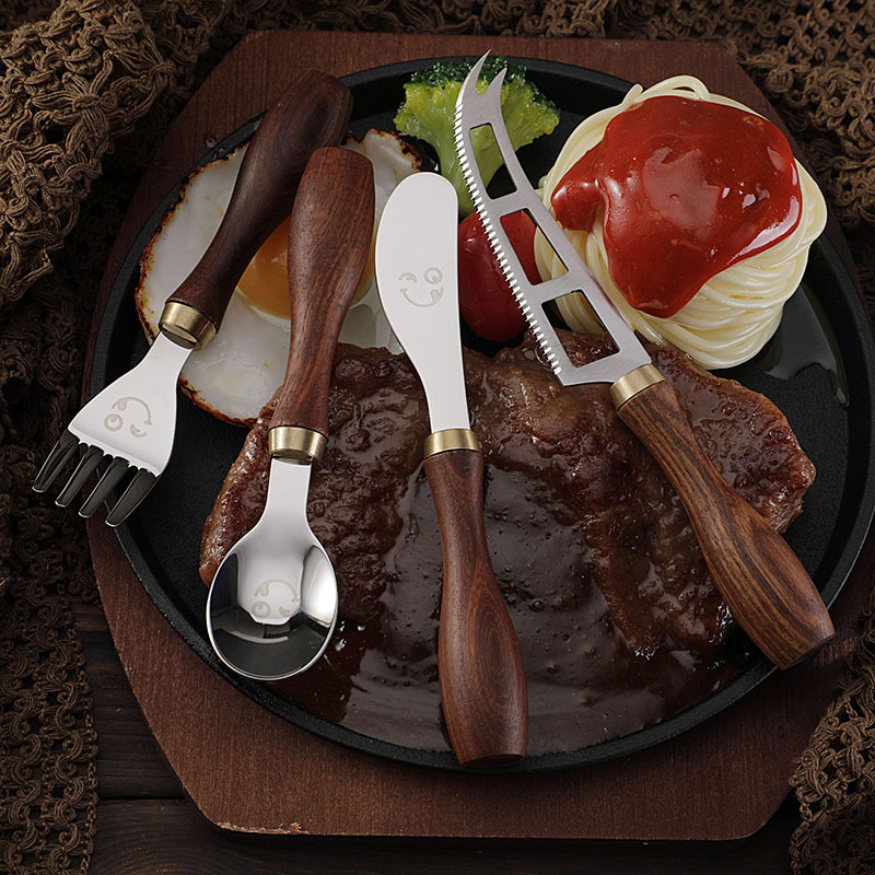 现货304不锈钢西餐刀叉勺四件套酸枝木柄 餐厅笑脸牛排刀叉芝士刀